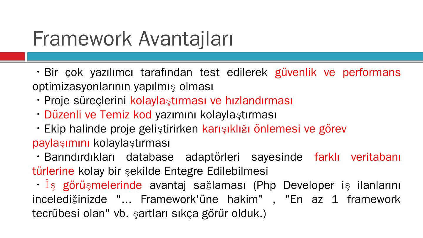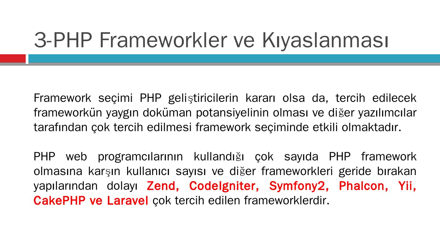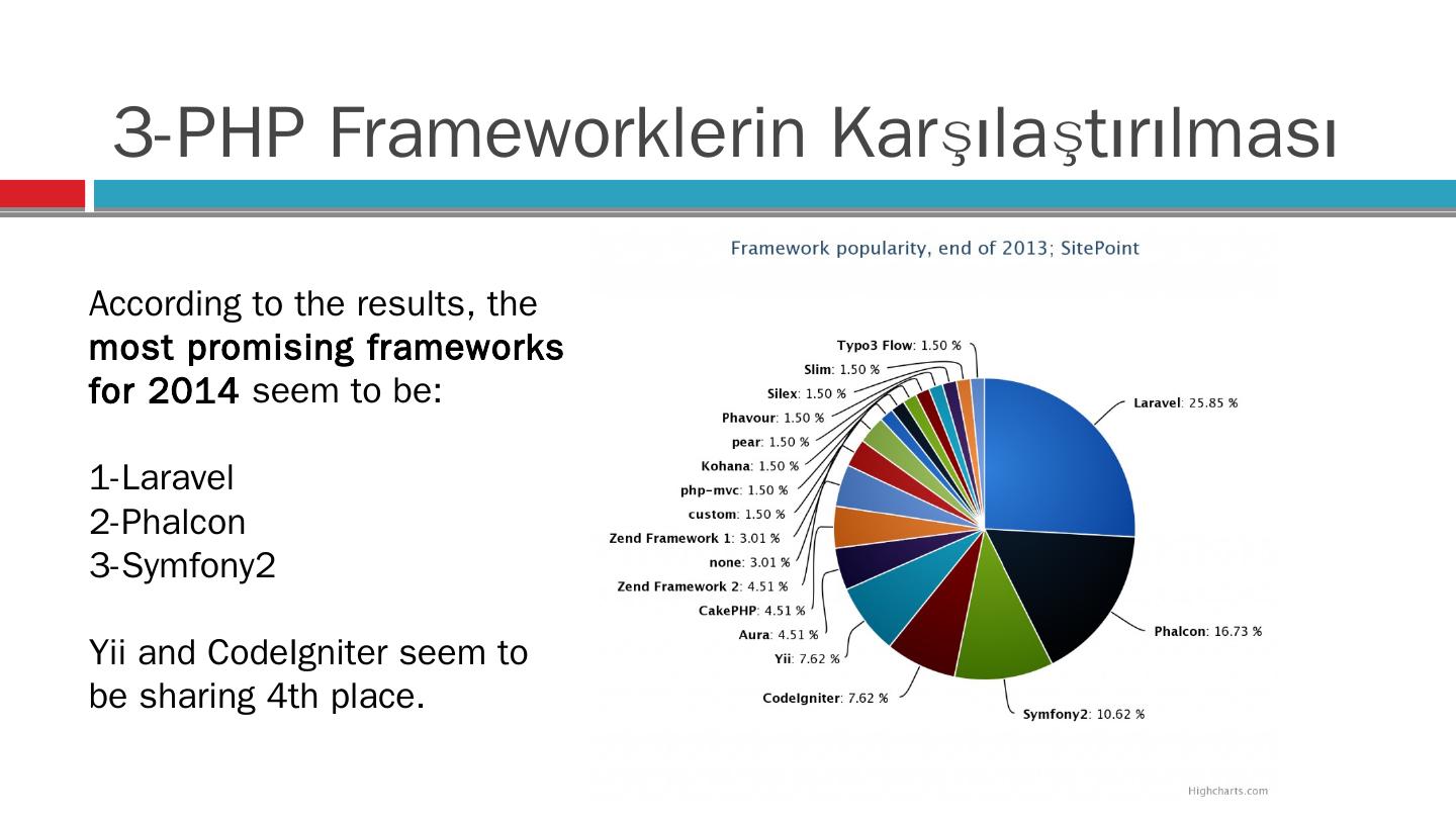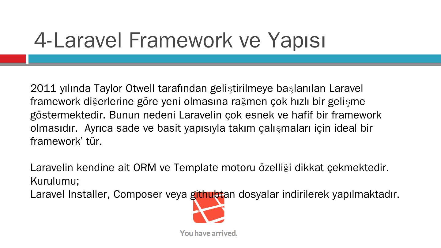 Yii and CodeIgniter seem to be sharing 4th place. 4-Laravel Framework ve Yapısı. 2011 yılında Taylor Otwell tarafından geliştirilmeye başlanılan Laravel ...