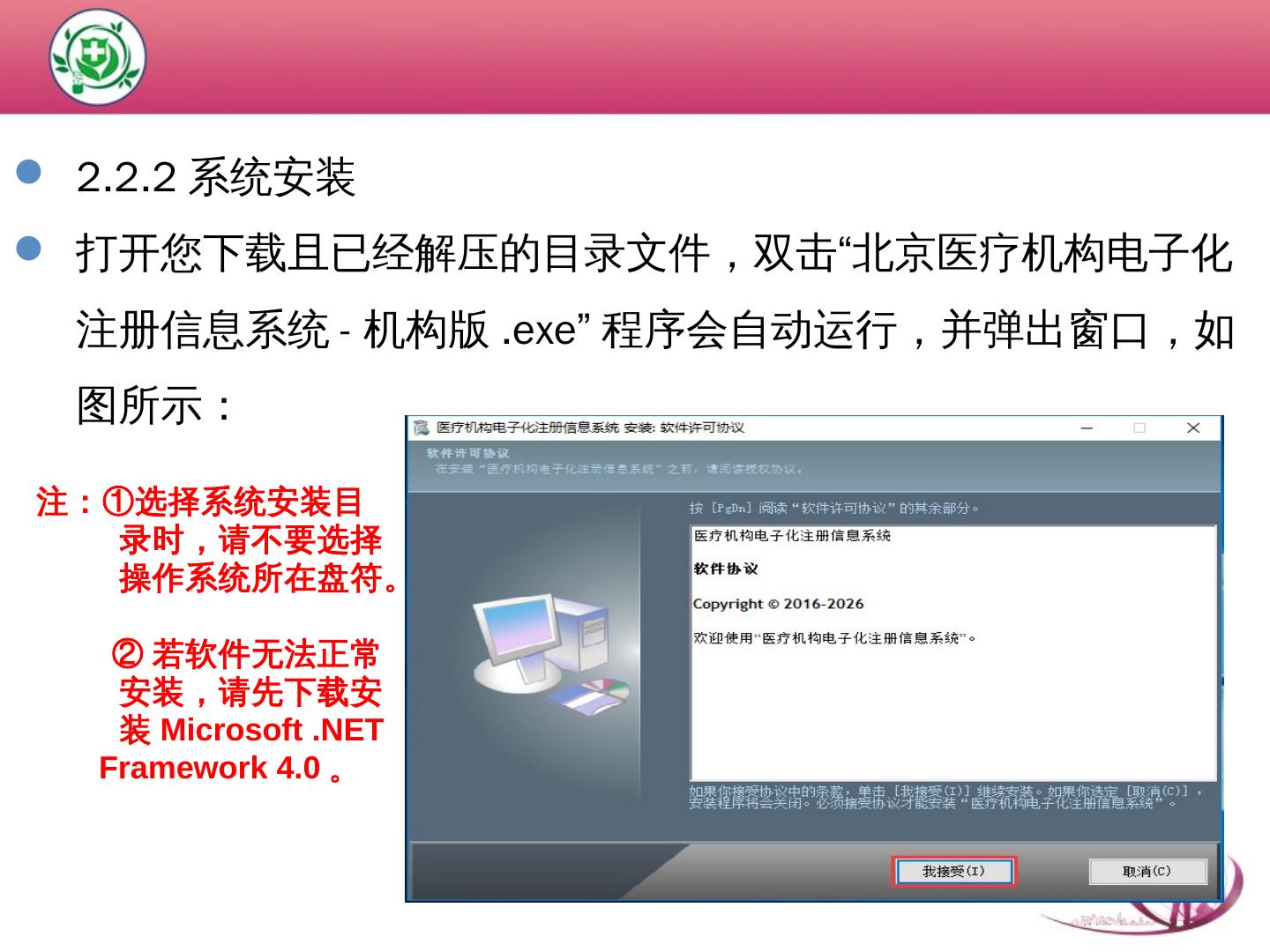 第二章 医疗机构电子化注册系统(机构端). 功能介绍 ... 运行此系统的电脑操作系统推荐使用WIN7及以上版本的操作系统,不建议使用WIN XP操作系统。 请确保运行 ...