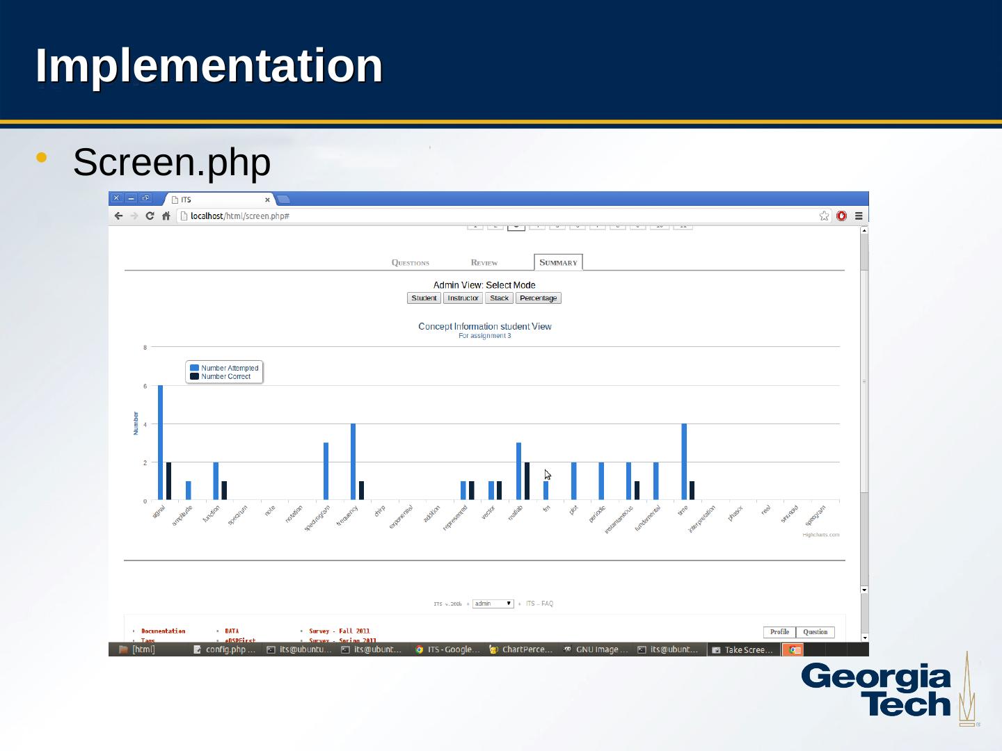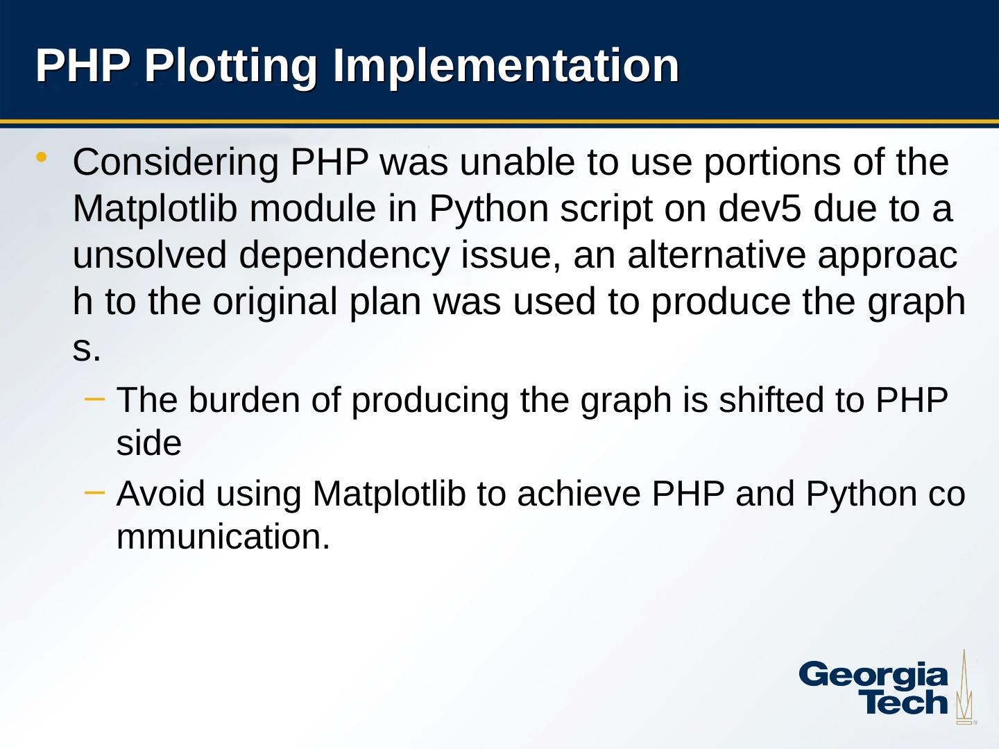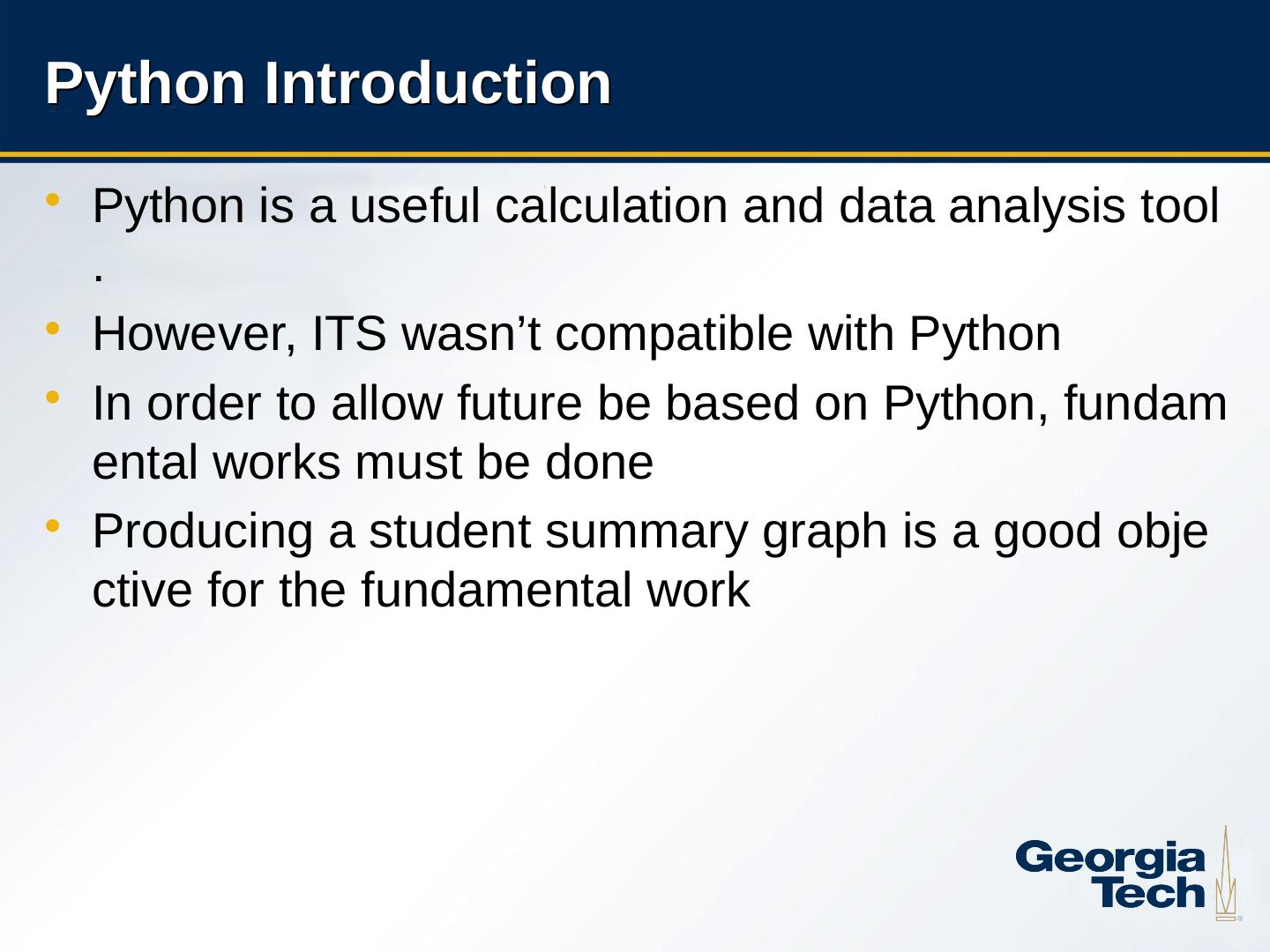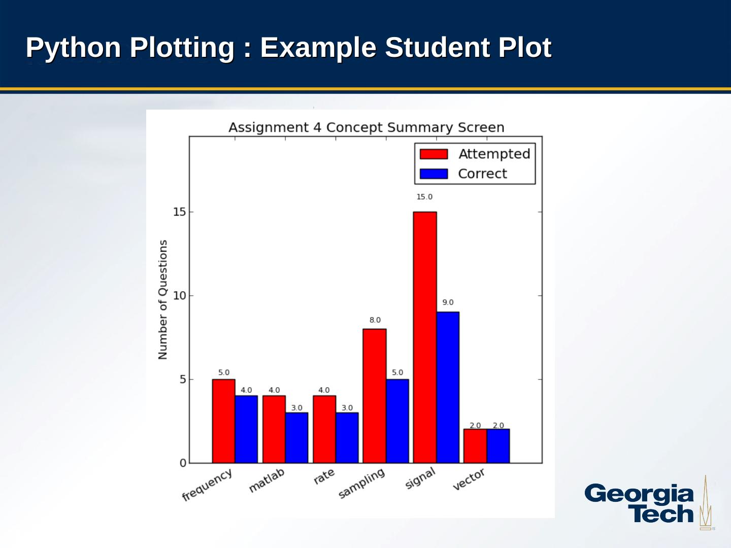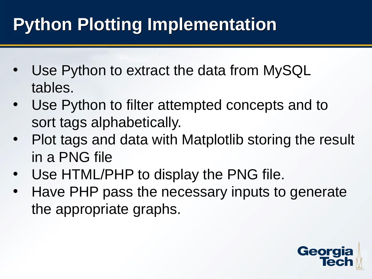 Matplotlib; MySQLdb. Successful communication between PHP and Python. jpgraph. Successful production of student summary graph using real student data ...