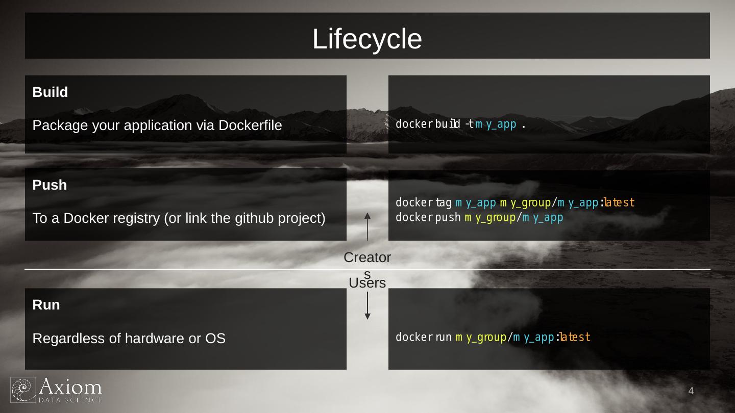 Docker containers wrap up a piece of software in a complete filesystem that contains everything it needs to run: code, runtime, system tools, system libraries ...