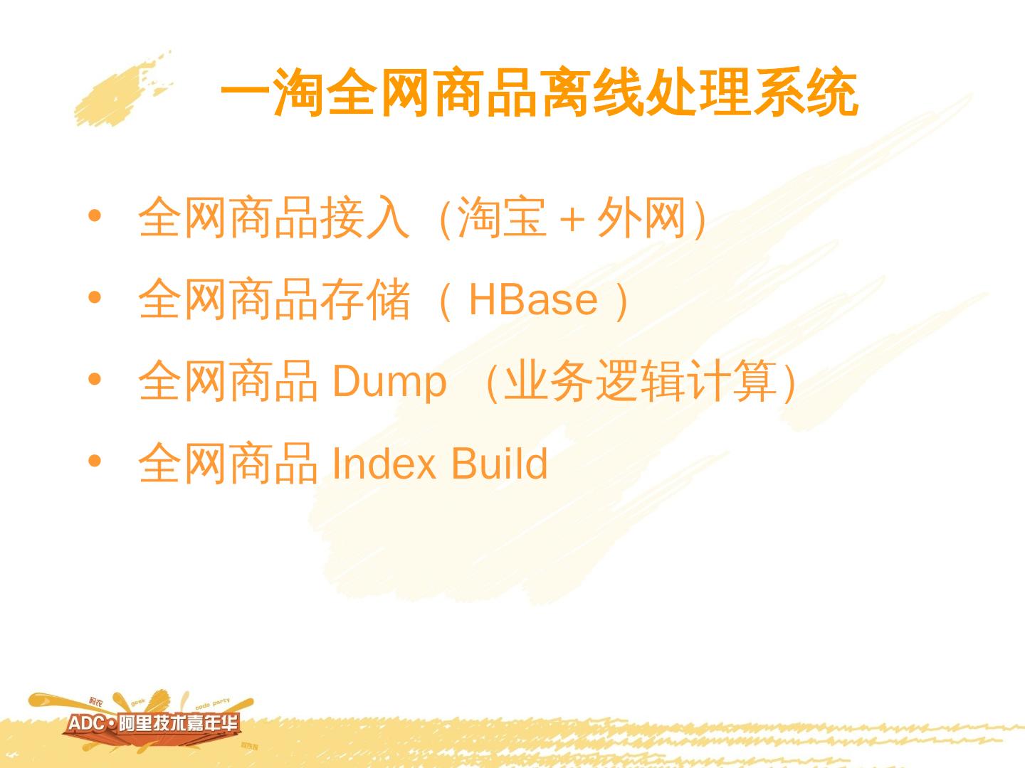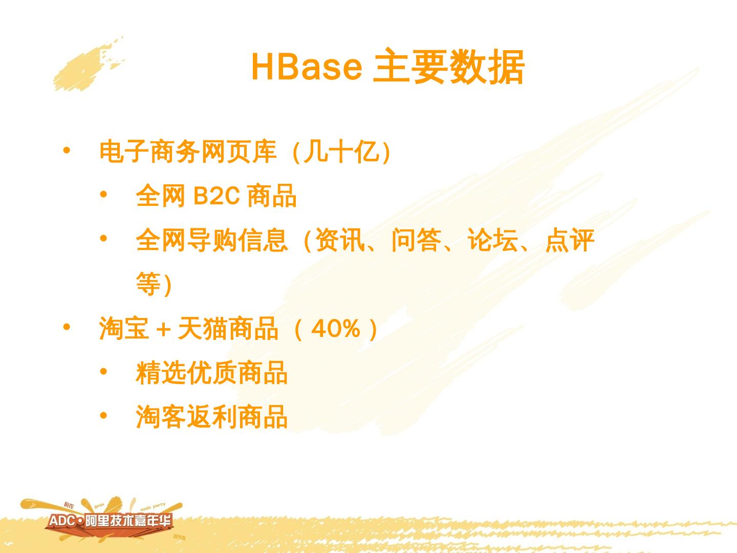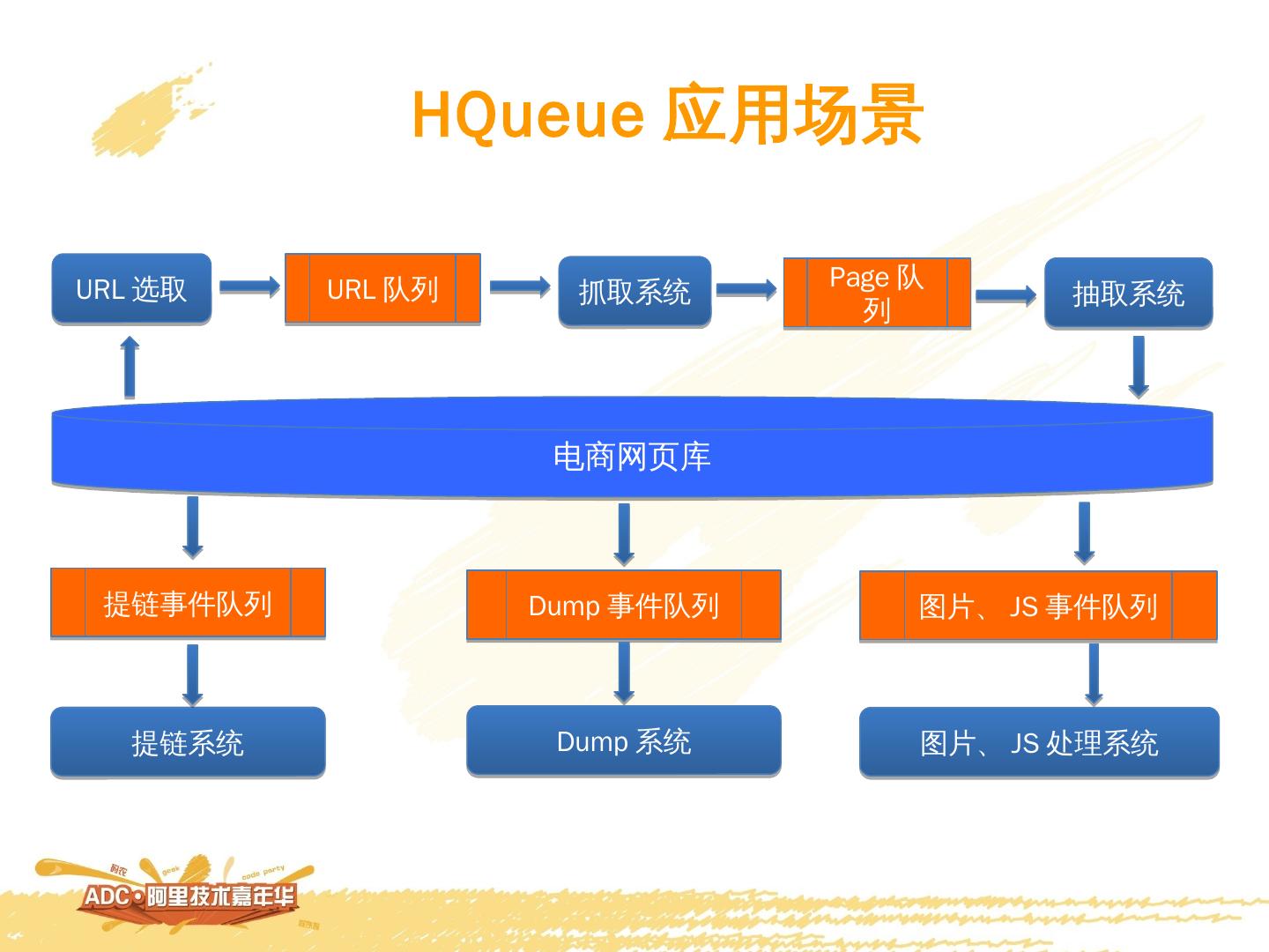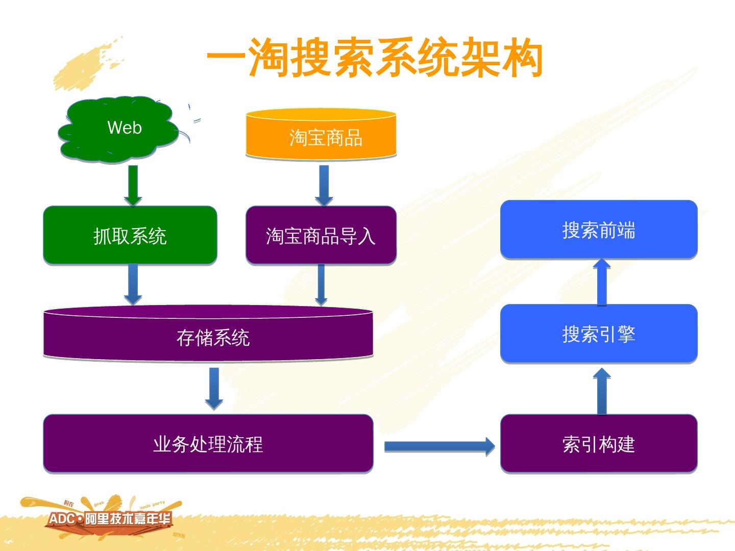 搜索引擎. Web. 搜索前端. 淘宝商品. 一淘搜索系统架构. 淘宝商品导入. 基于HBase的分布式存储系统 .... 图片、JS处理系统. HQueue应用场景. 基于Hadoop的分布式 ...