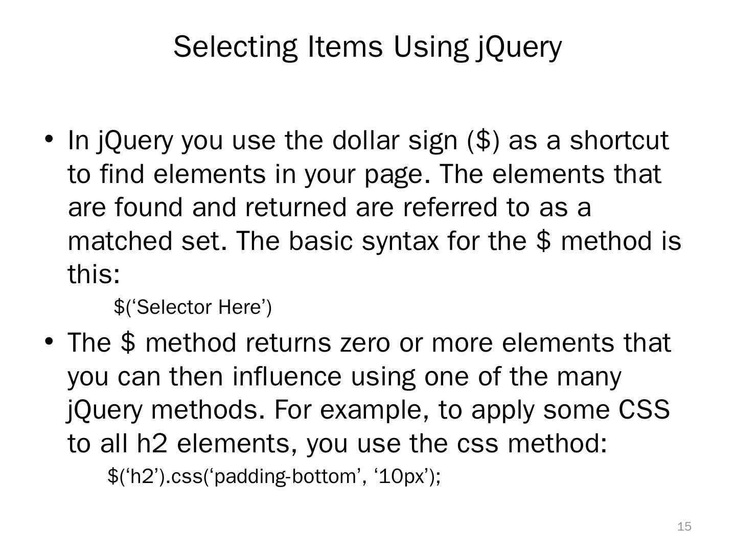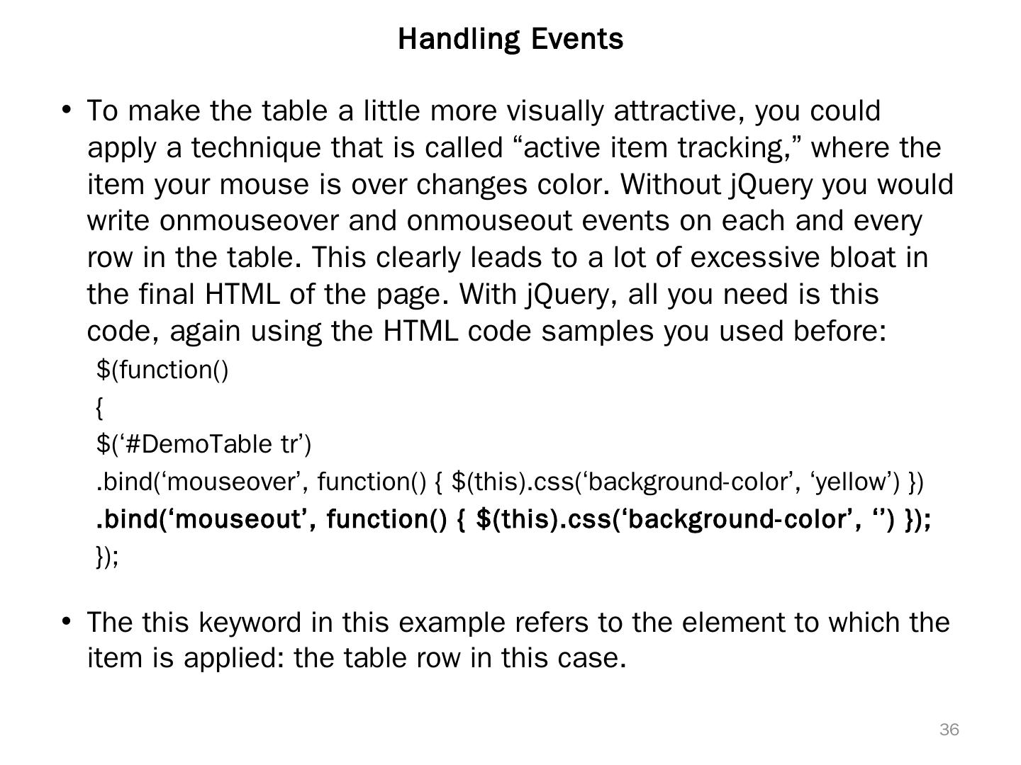 jQuery library has always been to simplify the way you access the elements in your web pages, provide help in working with client-side events, enable visual ...