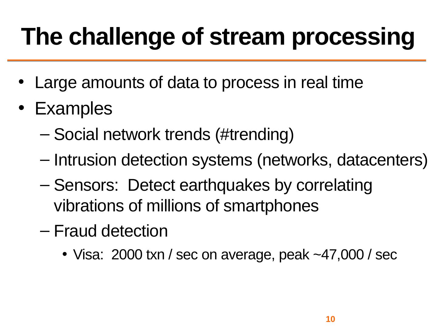 Big Data II: Stream Processing and Coordination. CS 240: Computing Systems and Concurrency. Lecture 22. Marco Canini. Credits: Michael Freedman and ...