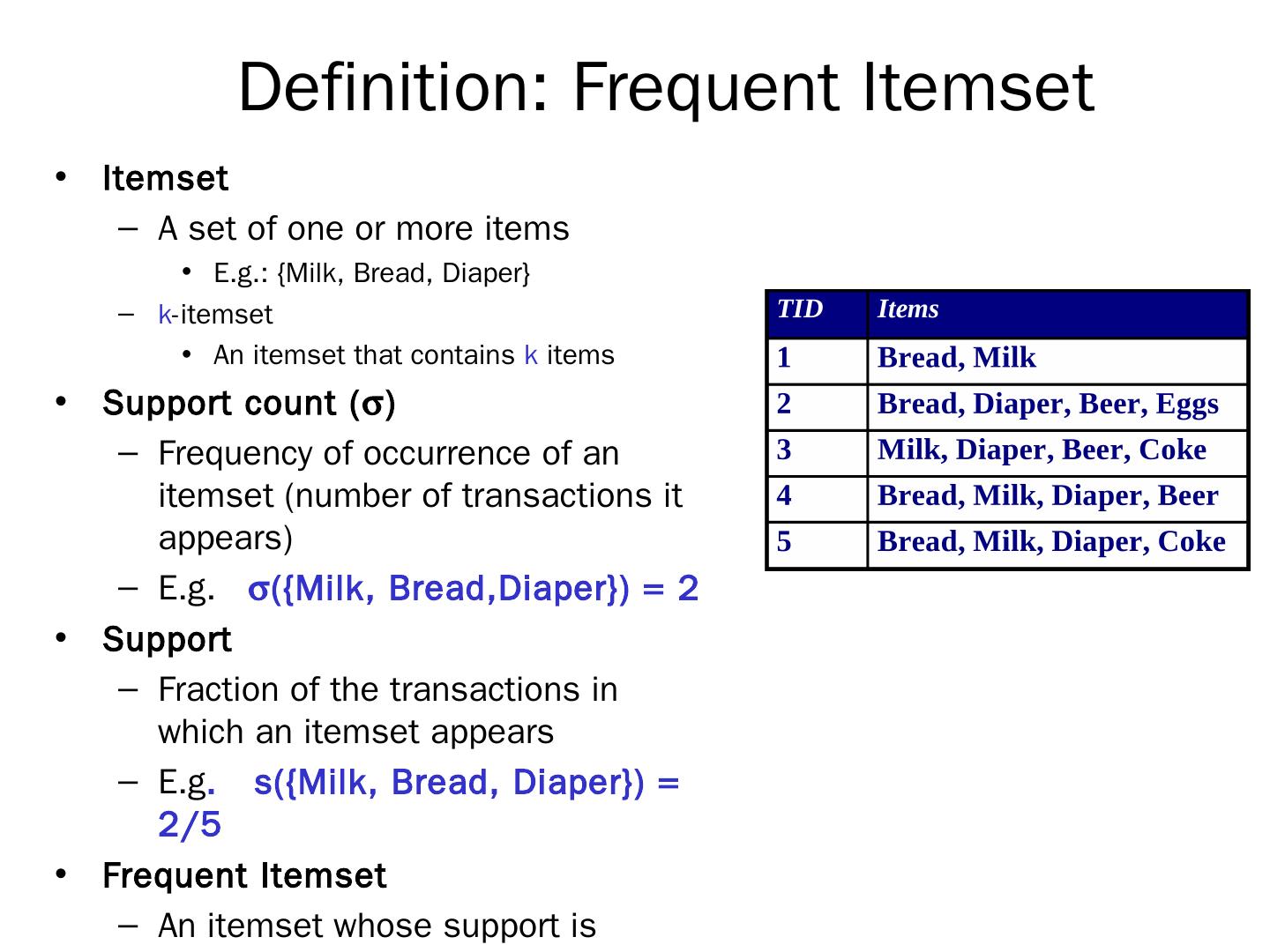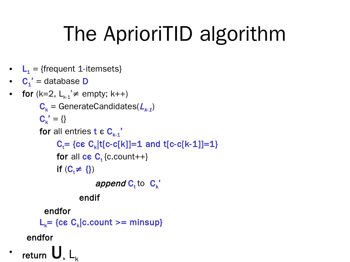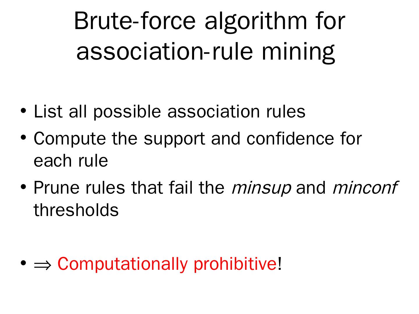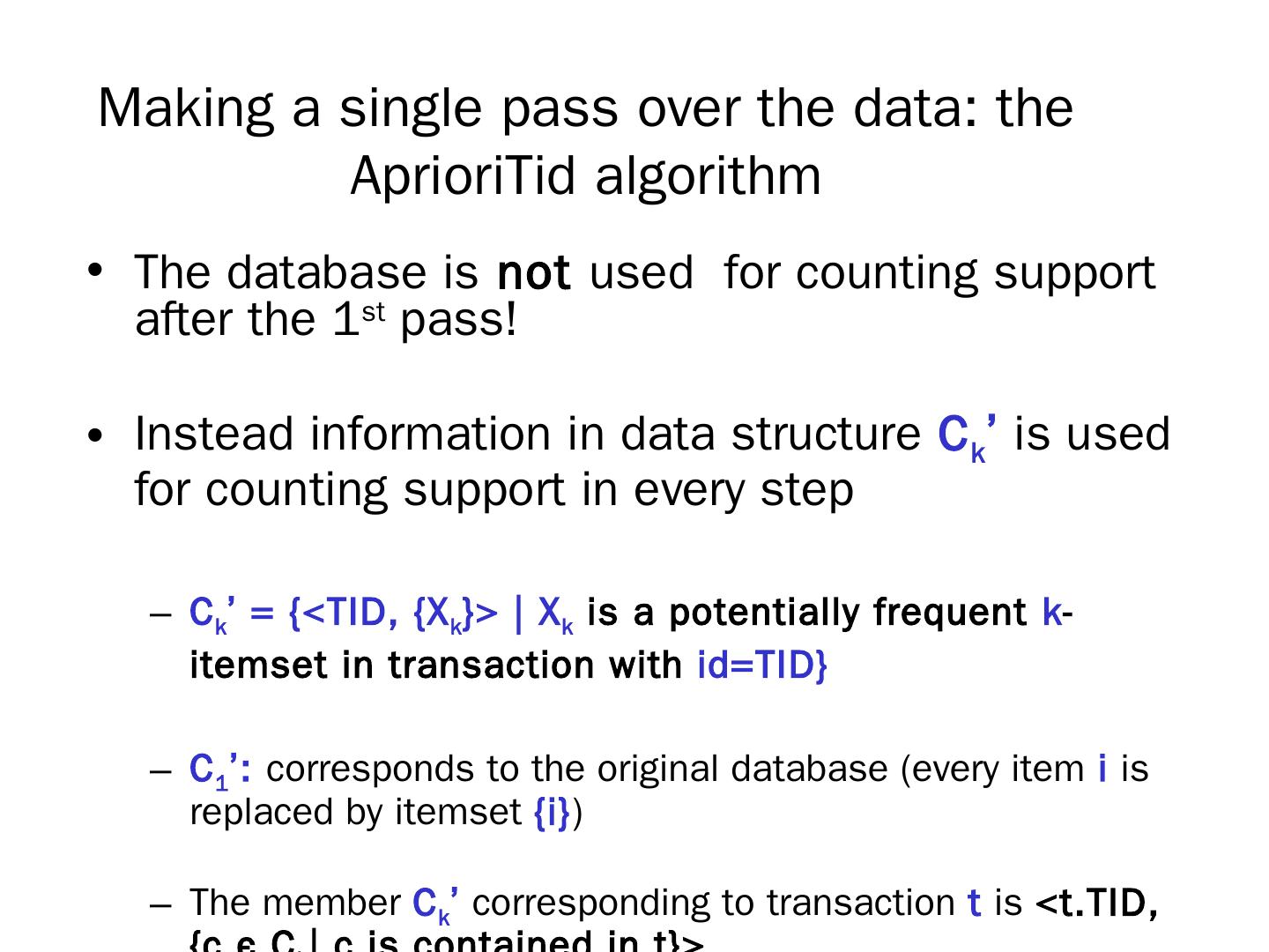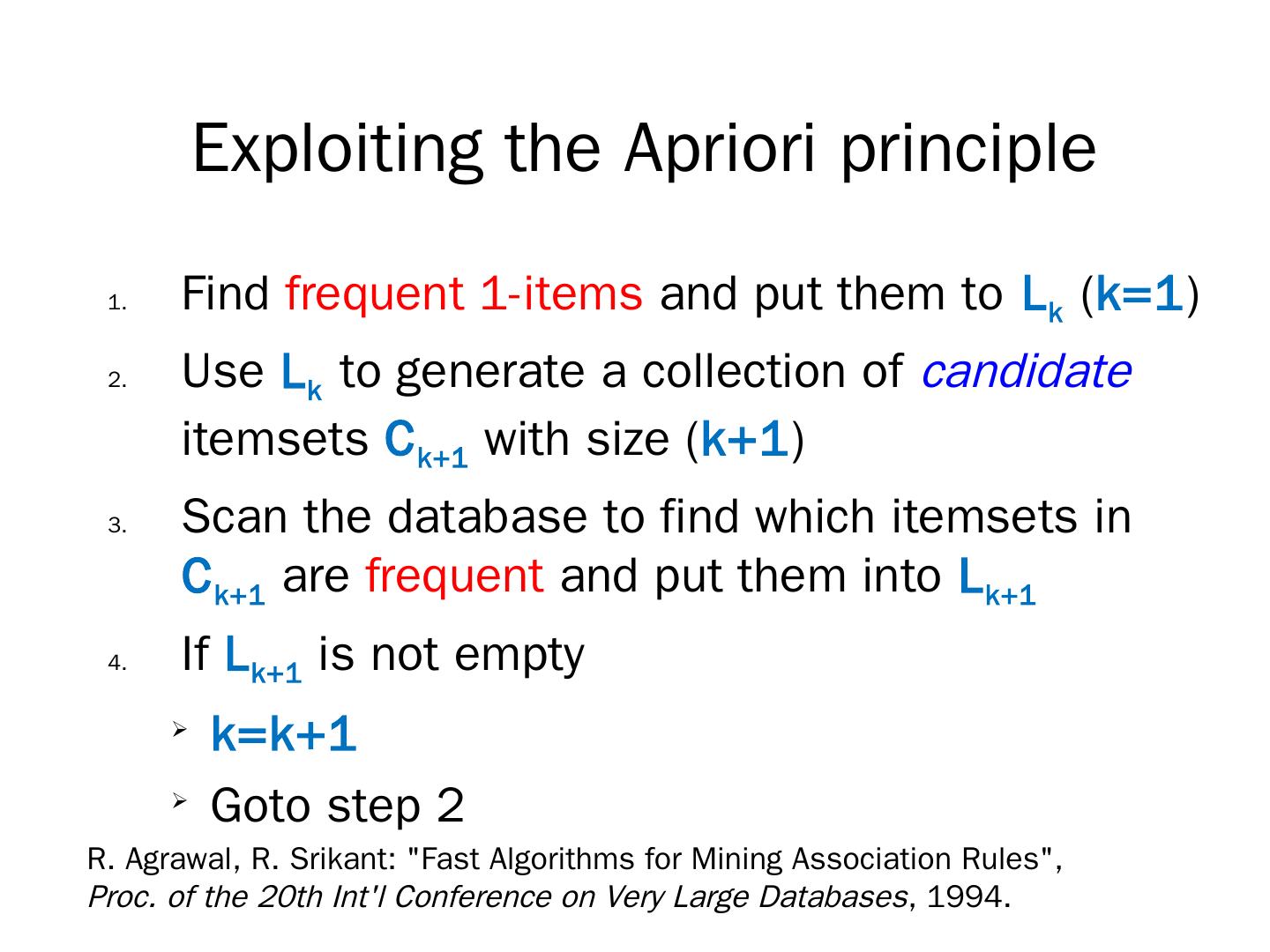 R. Agrawal, R. Srikant: "Fast Algorithms for Mining Association Rules",. Proc. of the 20th Int'l Conference on Very Large Databases, 1994. The Apriori algorithm.