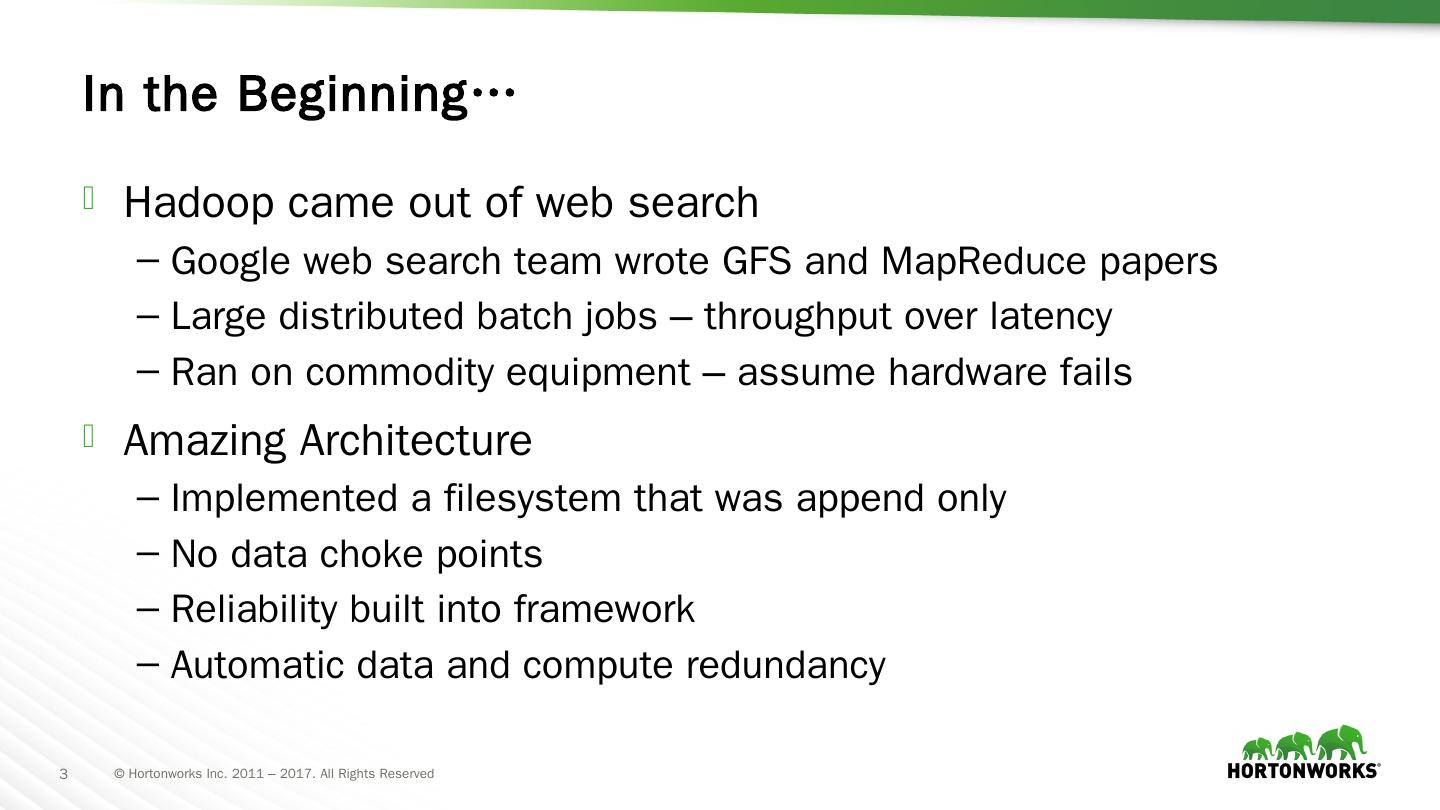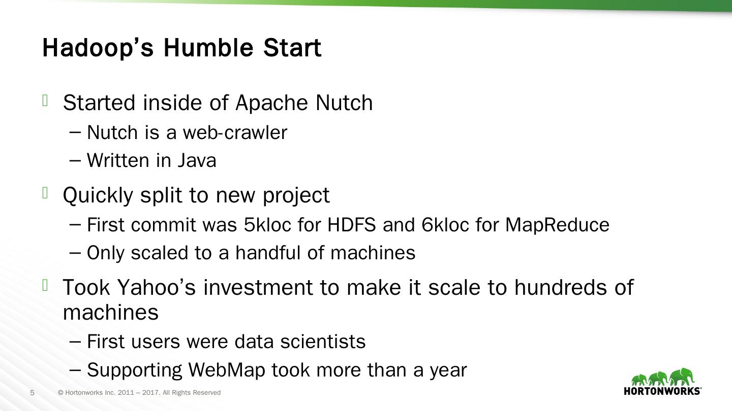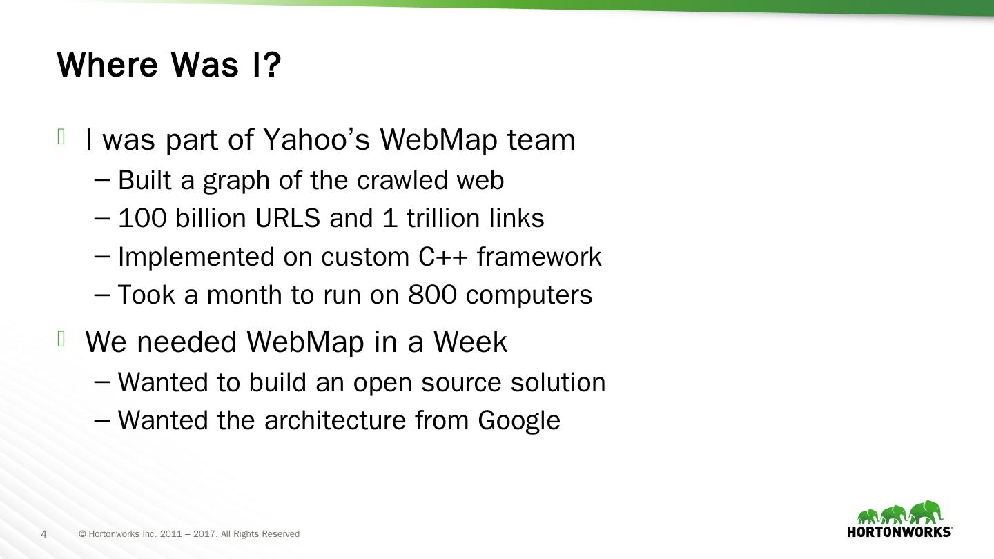 Apache YARN. Yahoo a lot of big-data use cases that weren't MapReduce. Machine learning; MPI; Graph Processing. Also needed to scale up MapReduce ...
