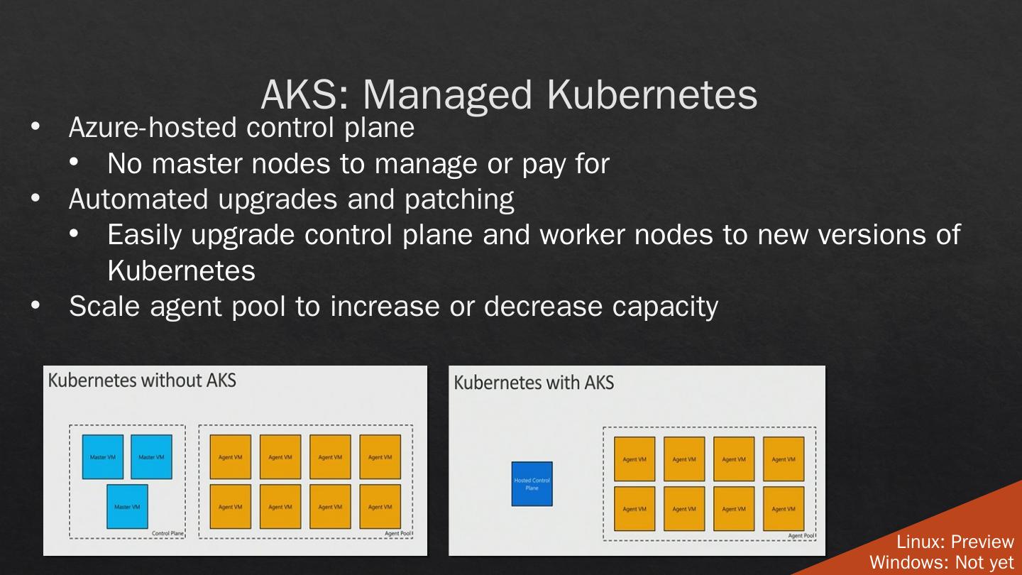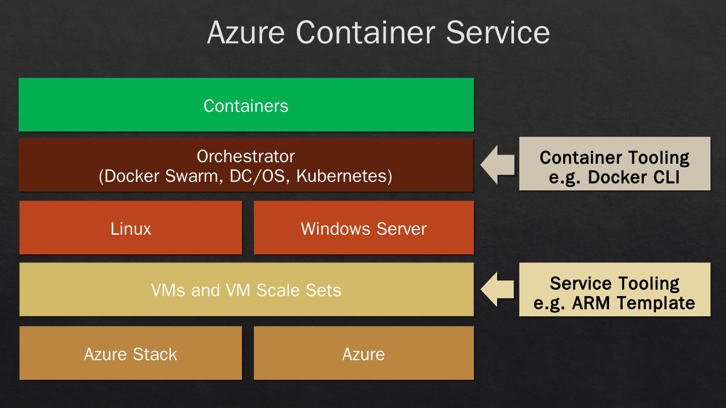 Orchestration & Microservices. Provisioning of DC/OS, Docker, and Kubernetes. Standard Docker tooling and API support. Linux and Windows Server containers.