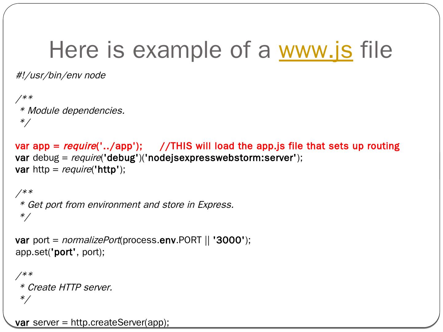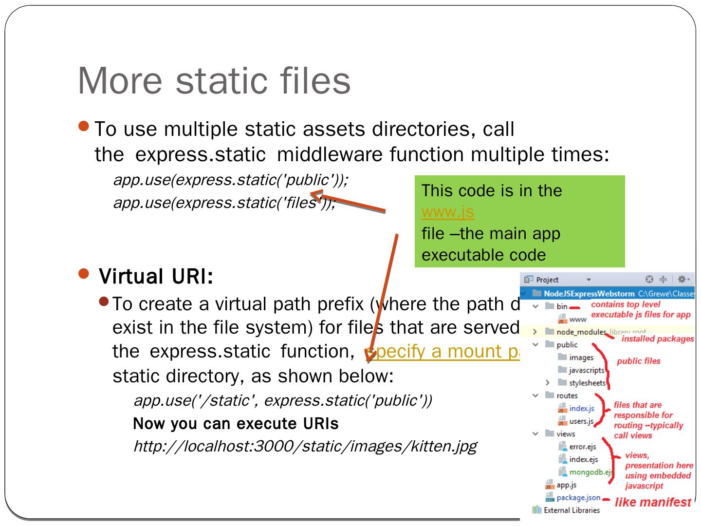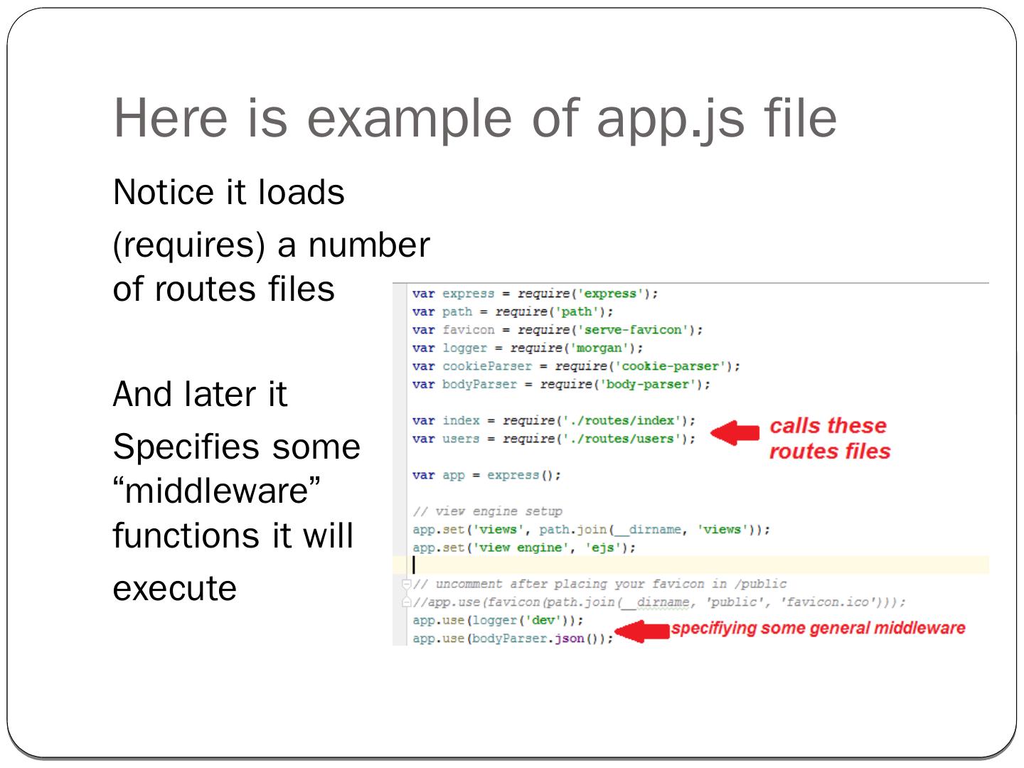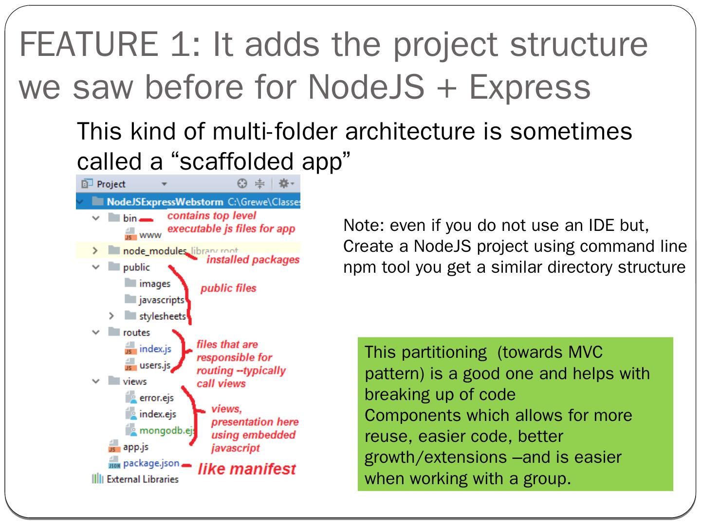 Components which allows for more reuse, easier code, better growth/extensions –and is easier when working with a group. Getting Express + NodeJS project.