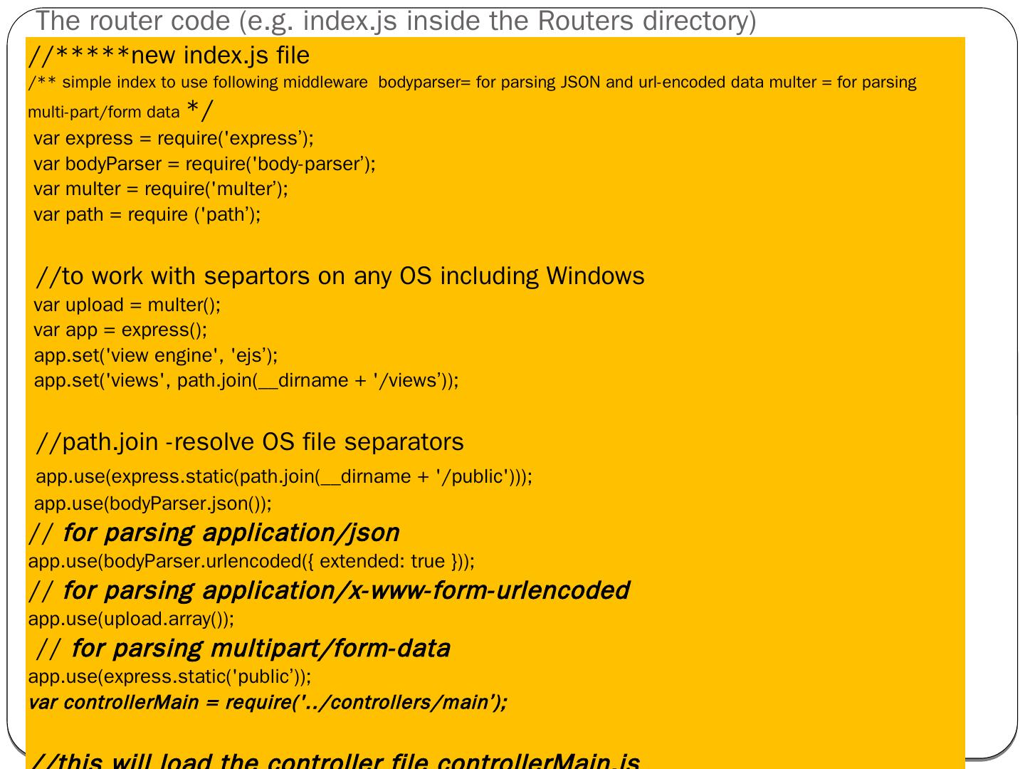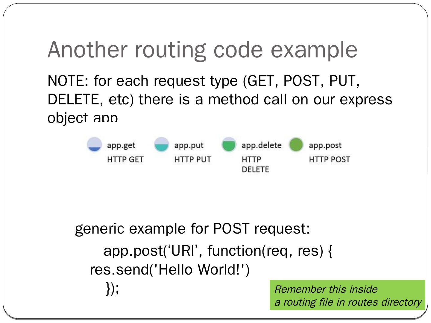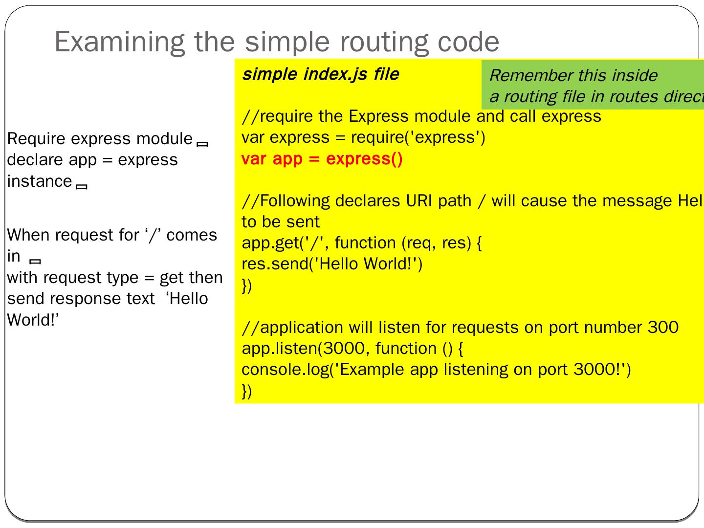 Components which allows for more reuse, easier code, better growth/extensions –and is easier when working with a group. Getting Express + NodeJS project.