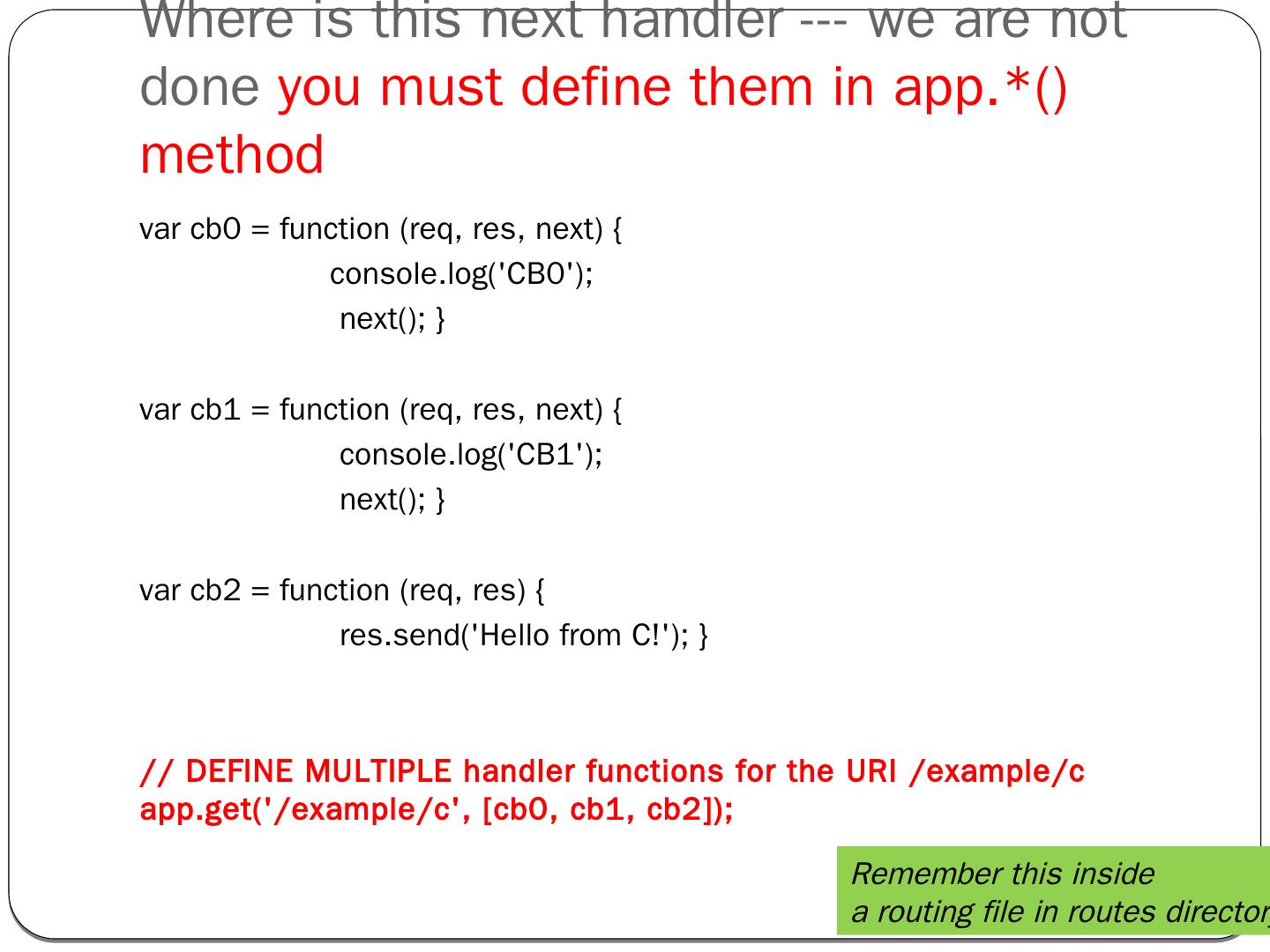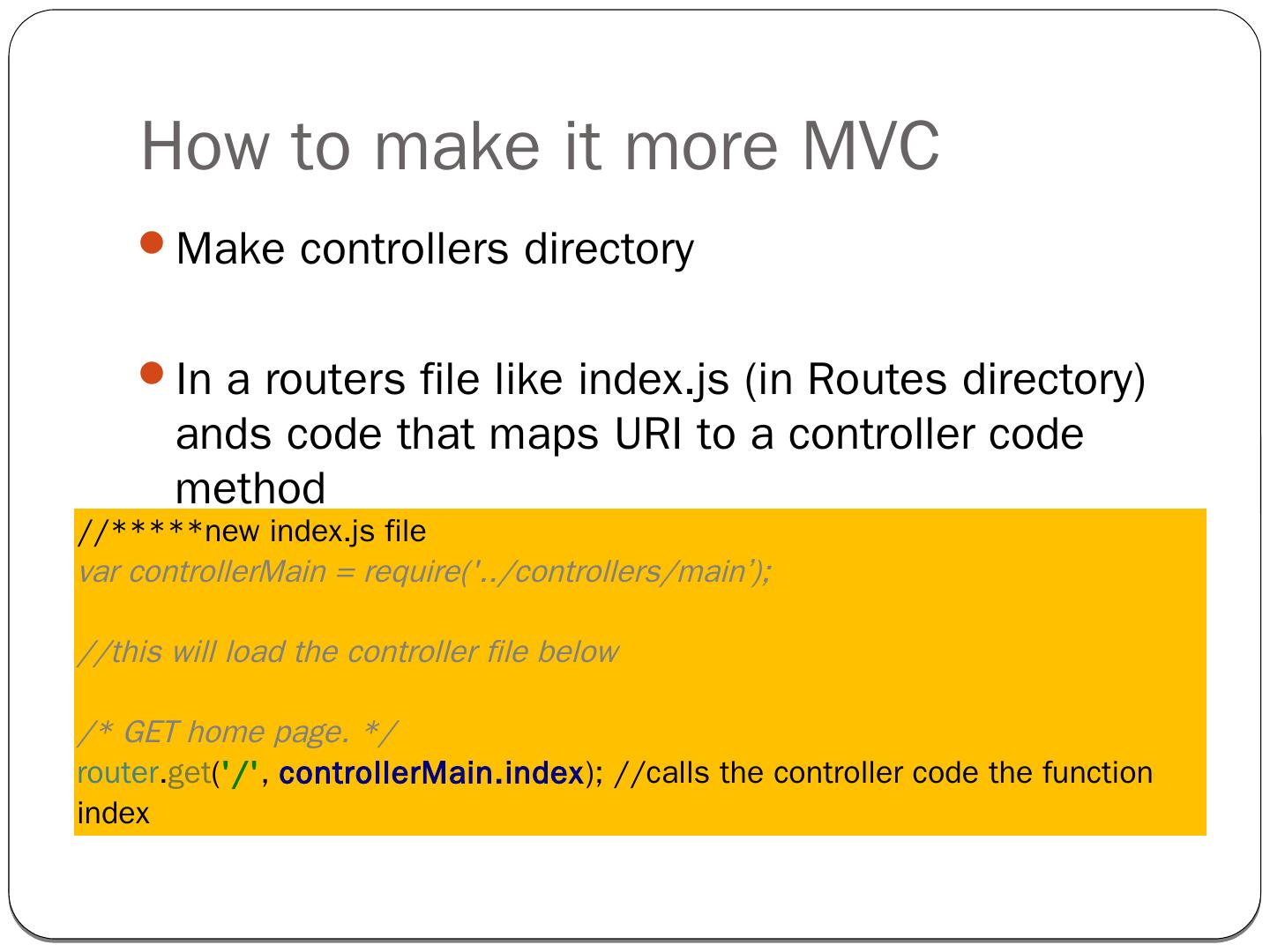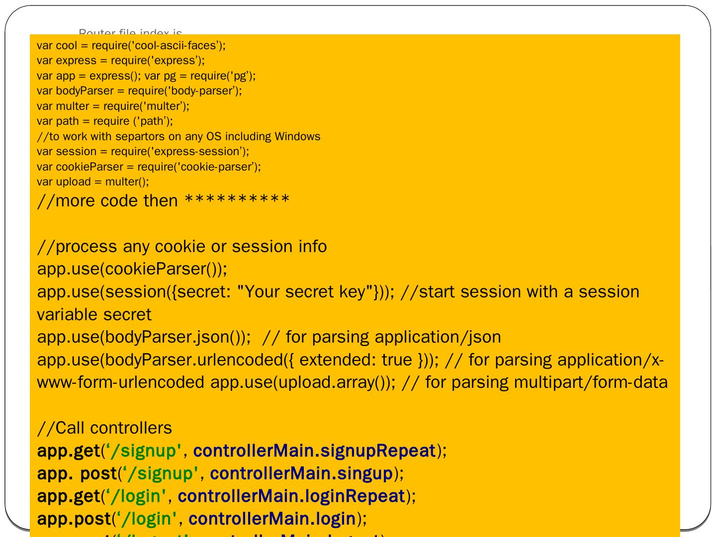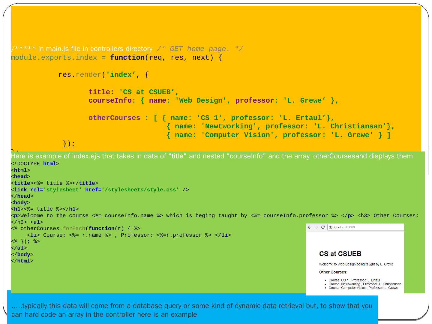 Components which allows for more reuse, easier code, better growth/extensions –and is easier when working with a group. Getting Express + NodeJS project.