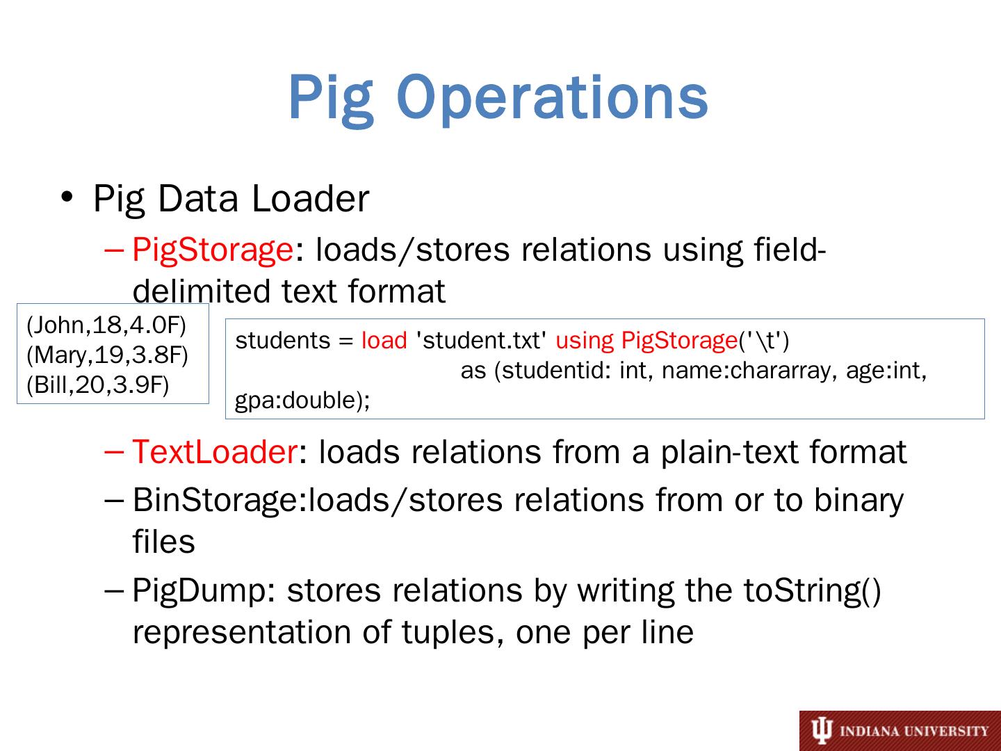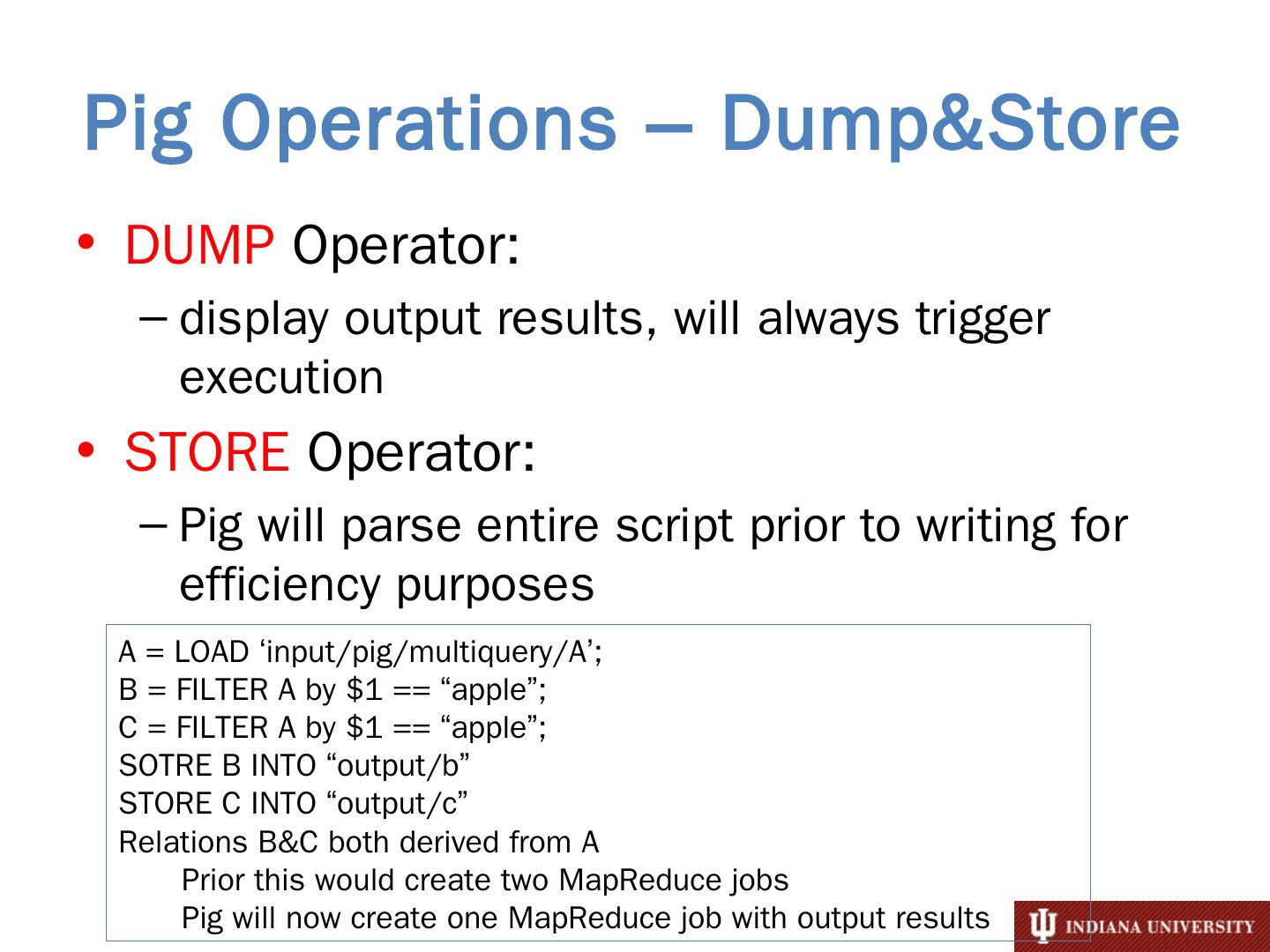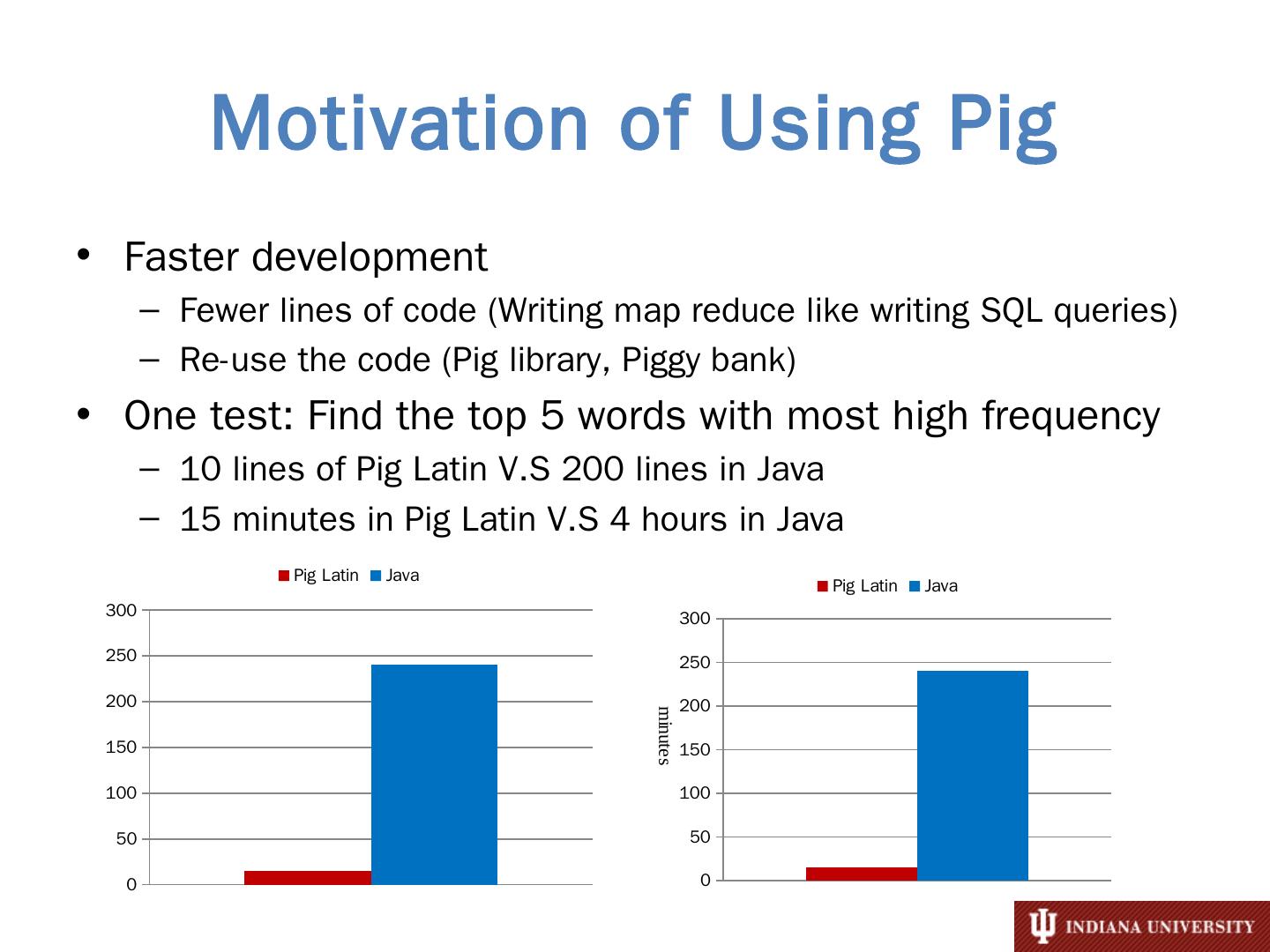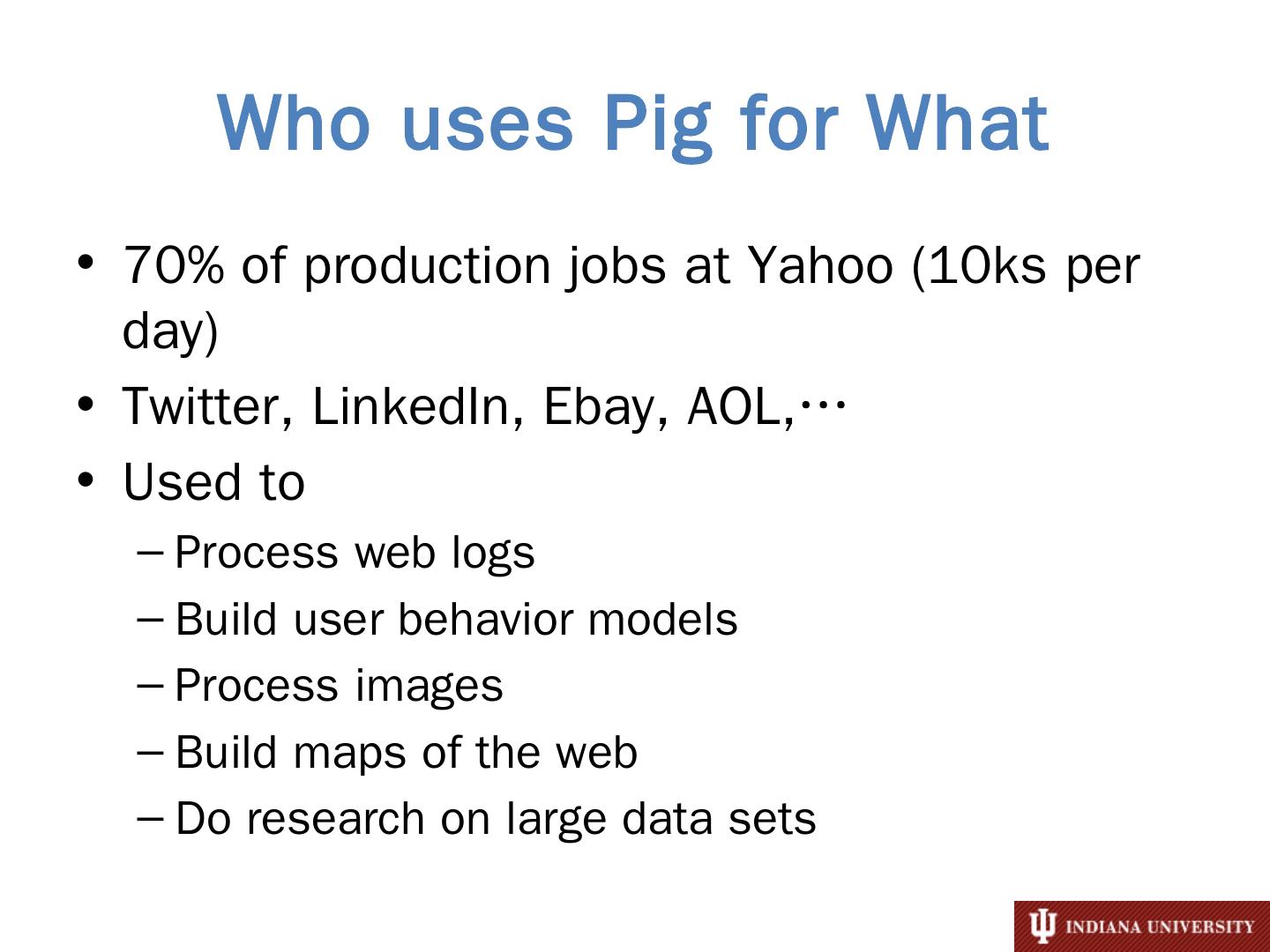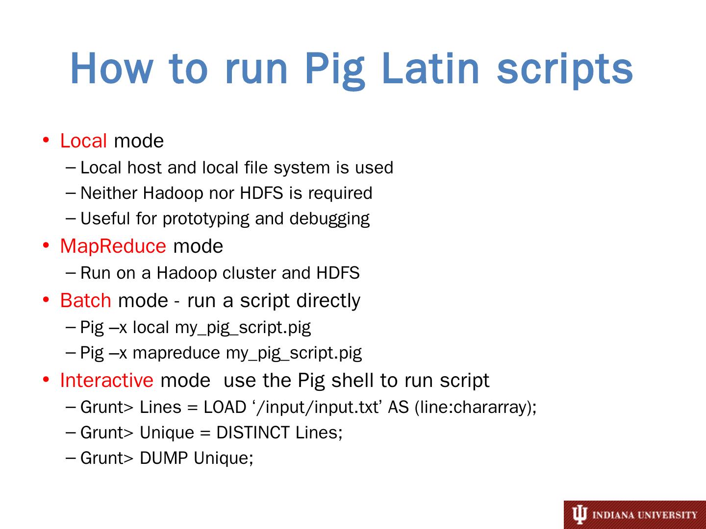 Pig Engine Parses, compiles Pig Latin scripts into MapReduce jobs run on top of Hadoop. Pig Latin is declarative, SQL-like language;
