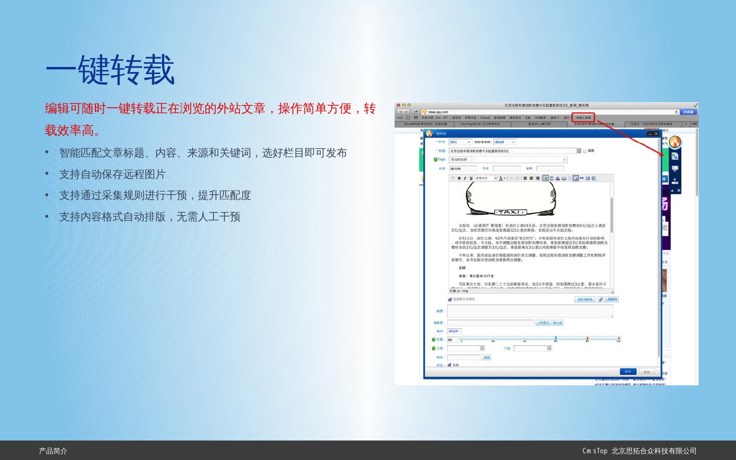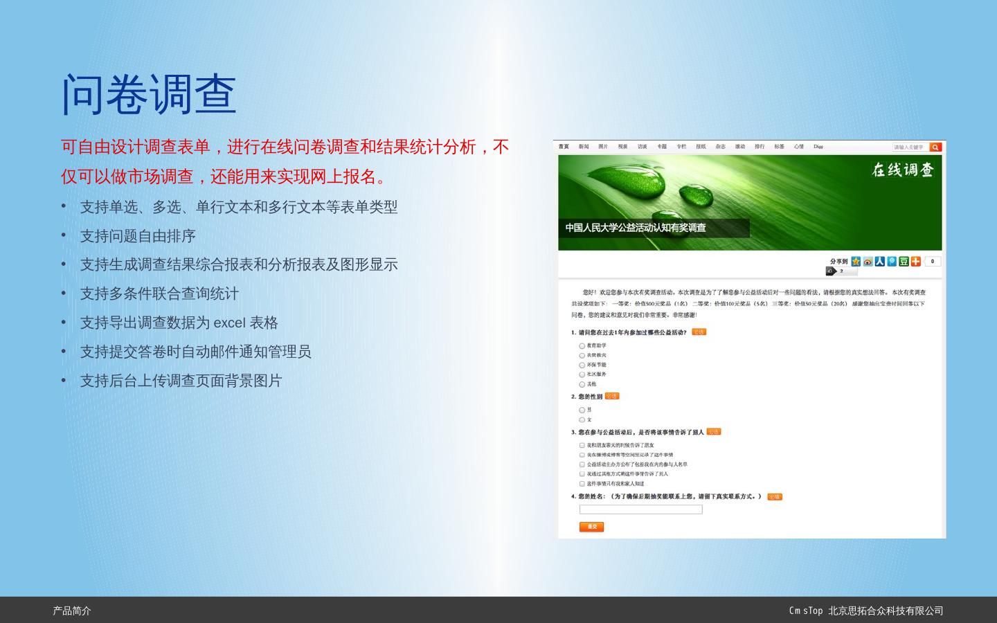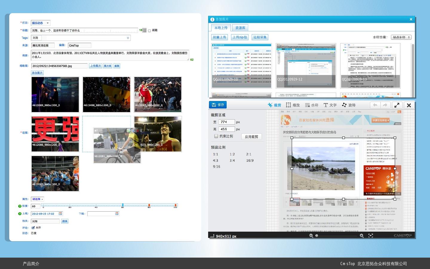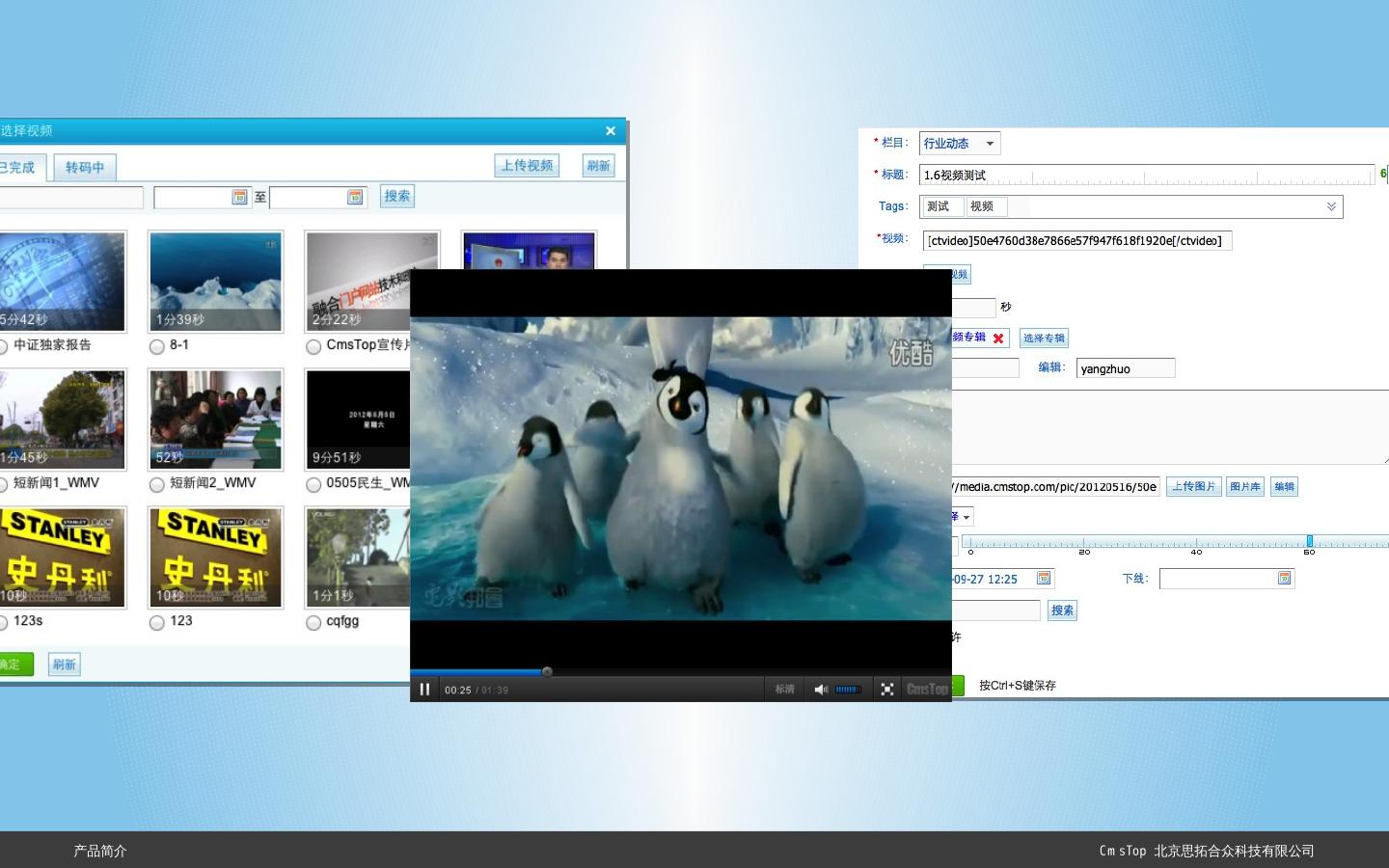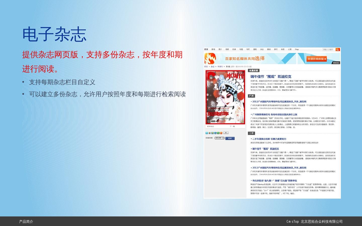 基于LAMP技术架构. 可承载千万级数据量. 服务网站超过100家 .... 服务器集群部署. 高可用性; 高并发; 可伸缩. CmsTop 北京思拓合众科技有限公司. 产品简介.