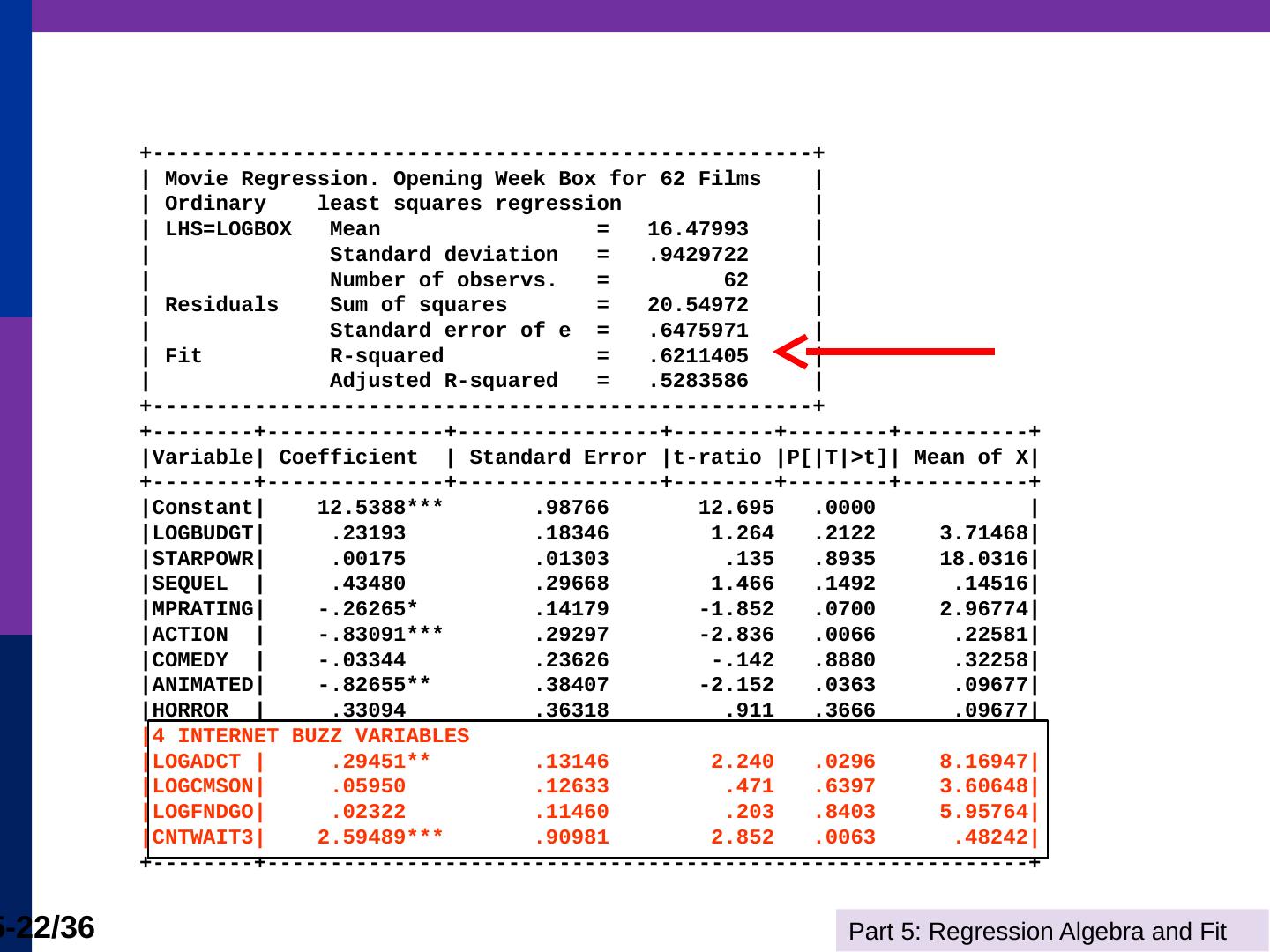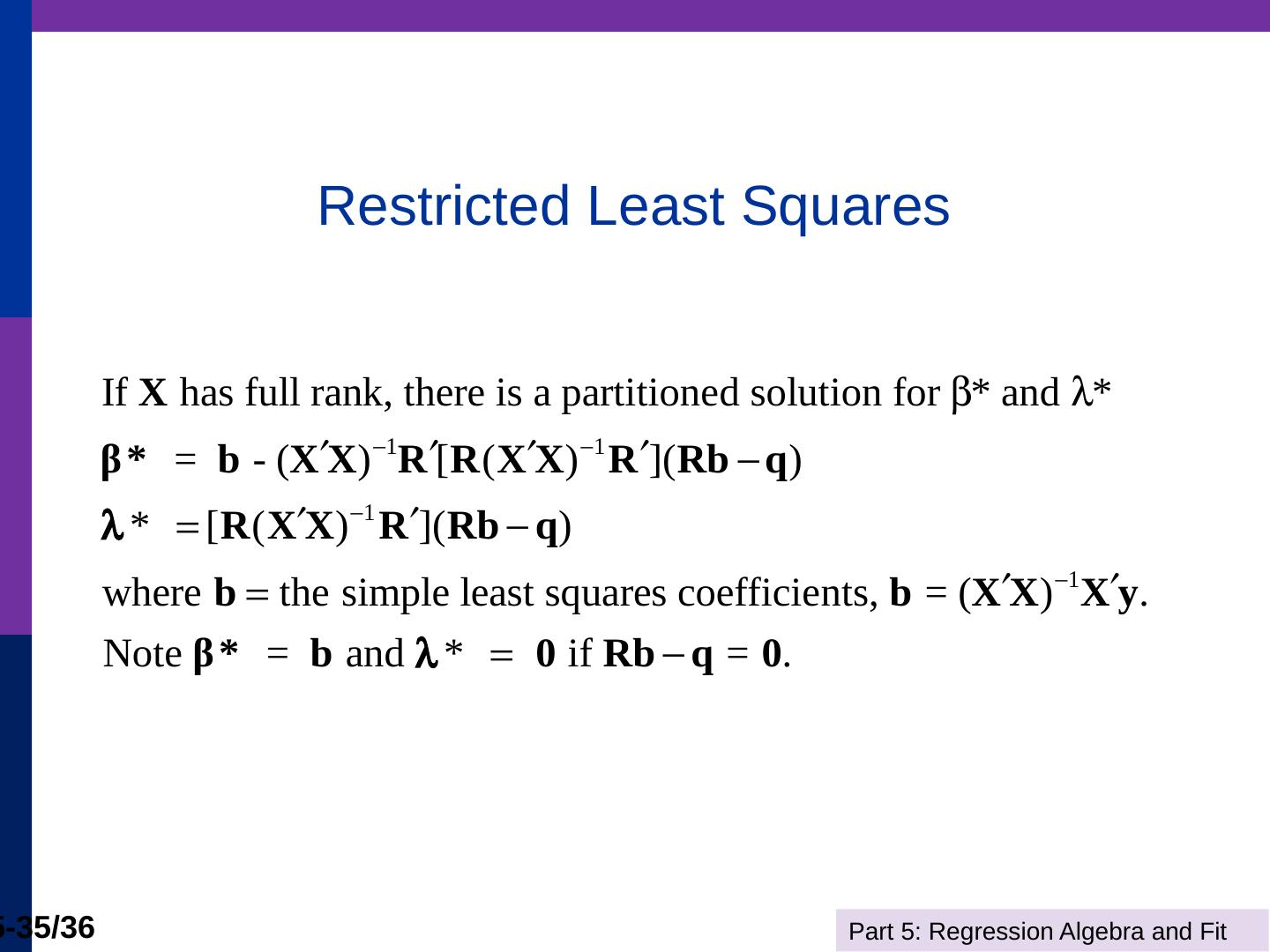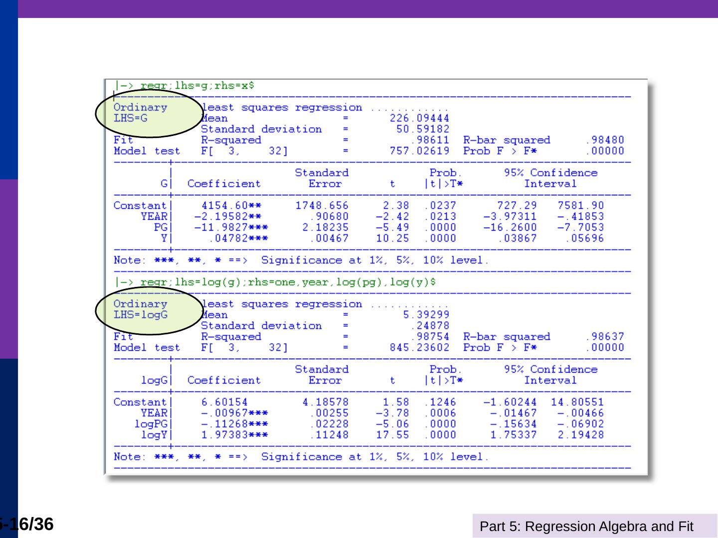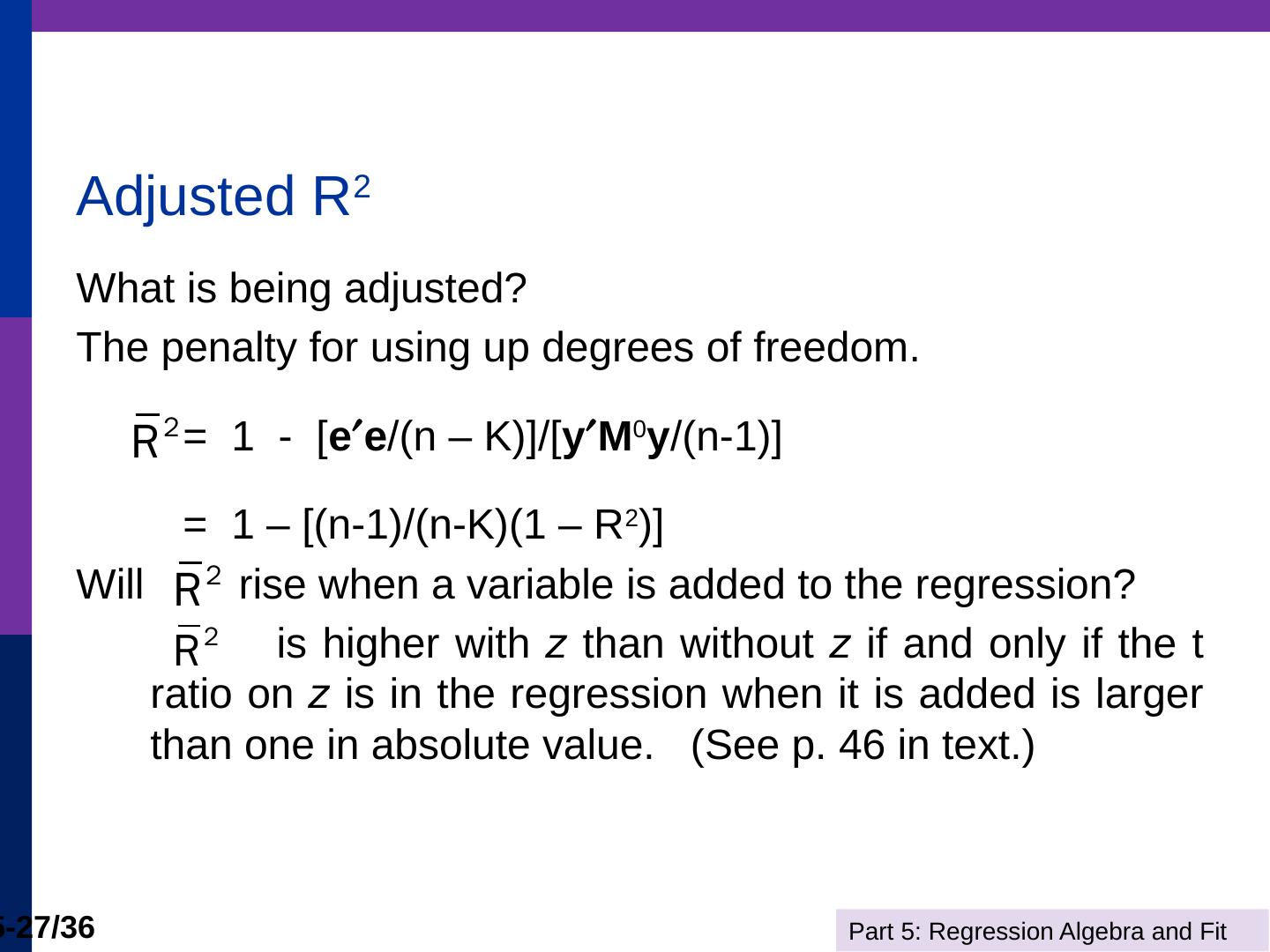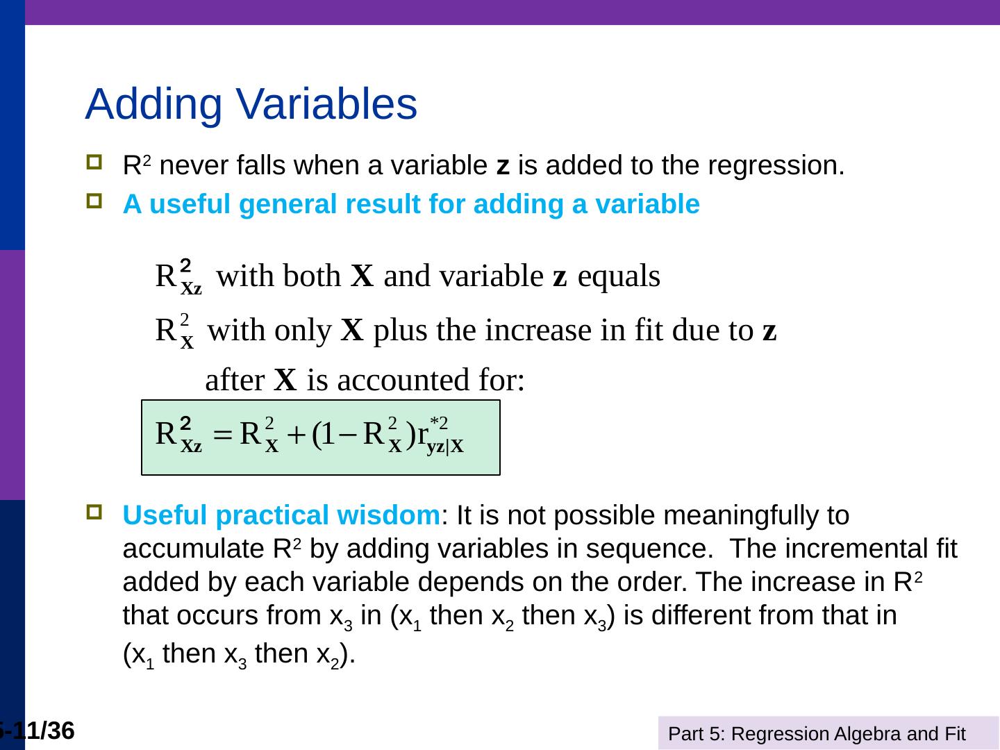 (b) The line is computed by linear least squares. Part 5: Regression Algebra and Fit. 5-11/36. Adding Variables. R2 never falls when a variable z is added to the ...
