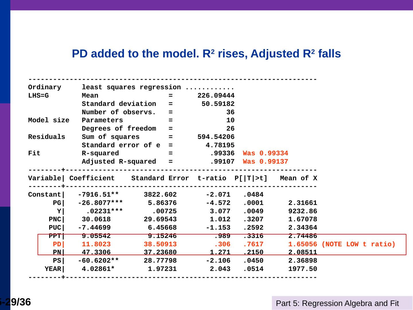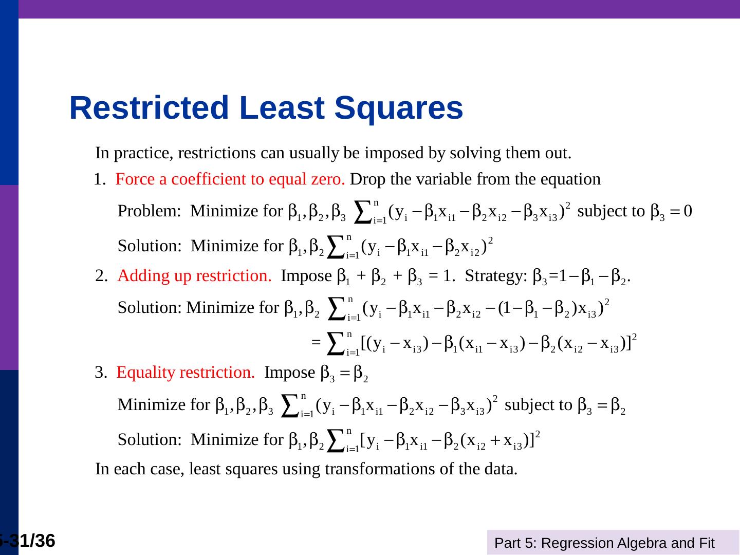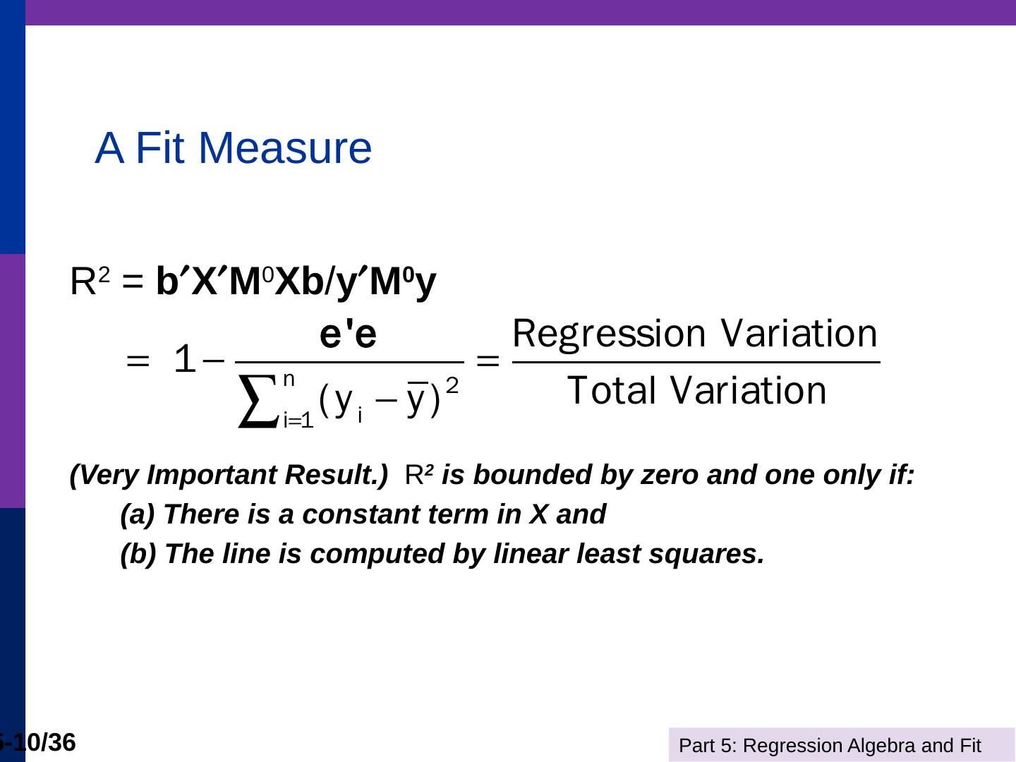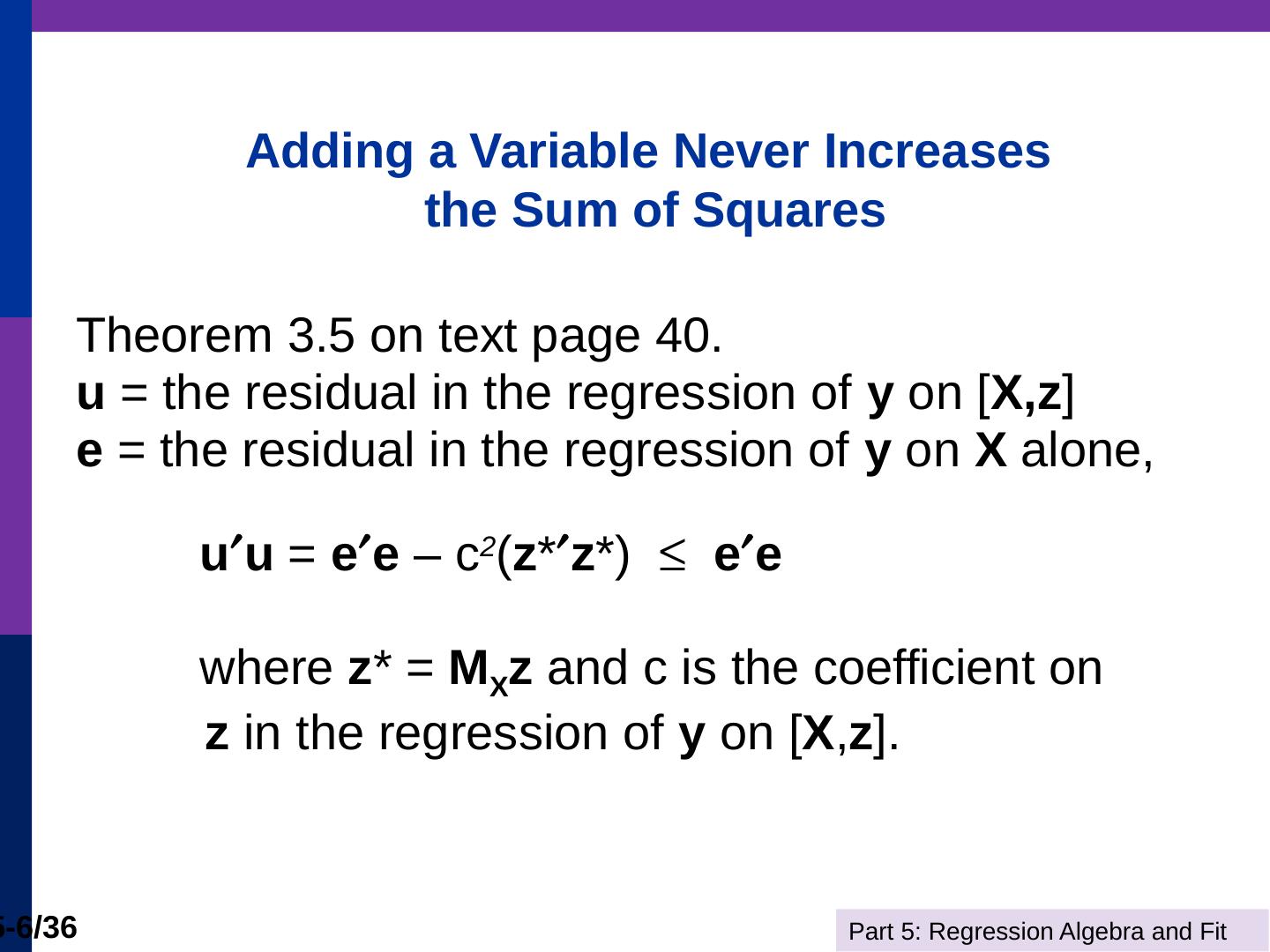 (b) The line is computed by linear least squares. Part 5: Regression Algebra and Fit. 5-11/36. Adding Variables. R2 never falls when a variable z is added to the ...