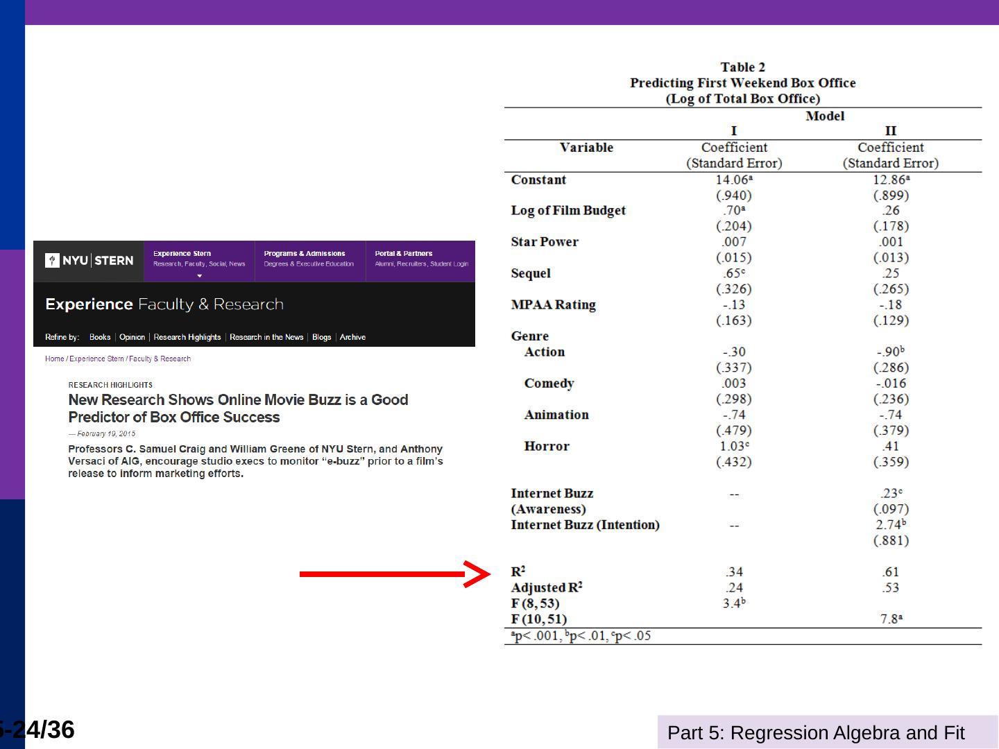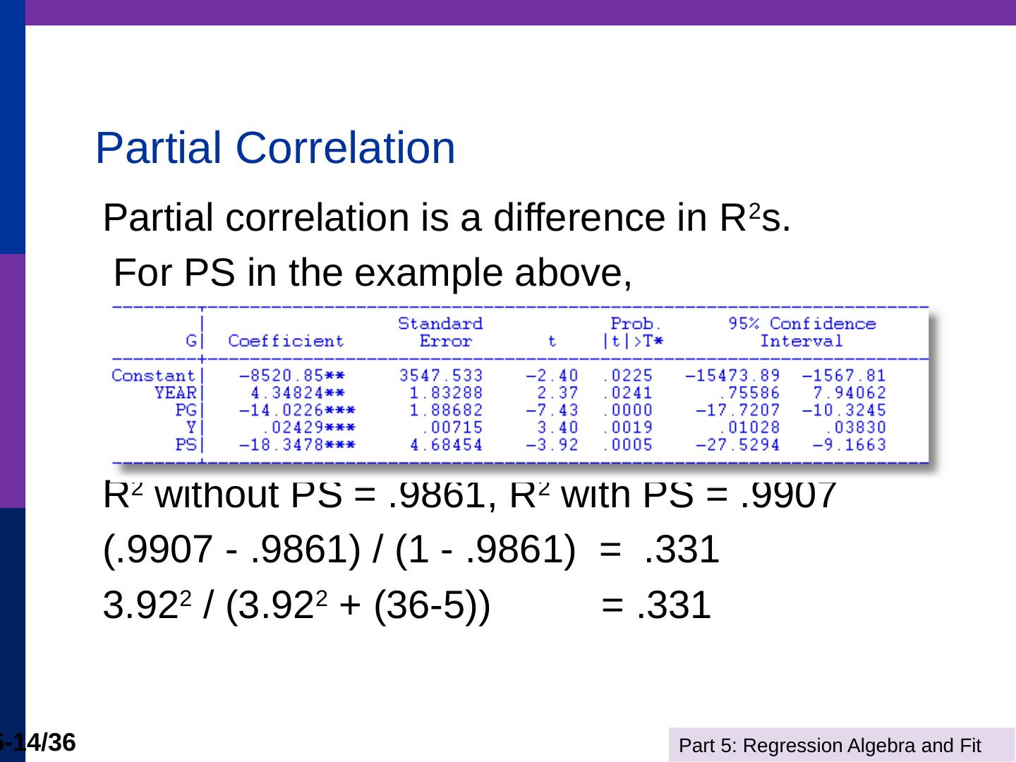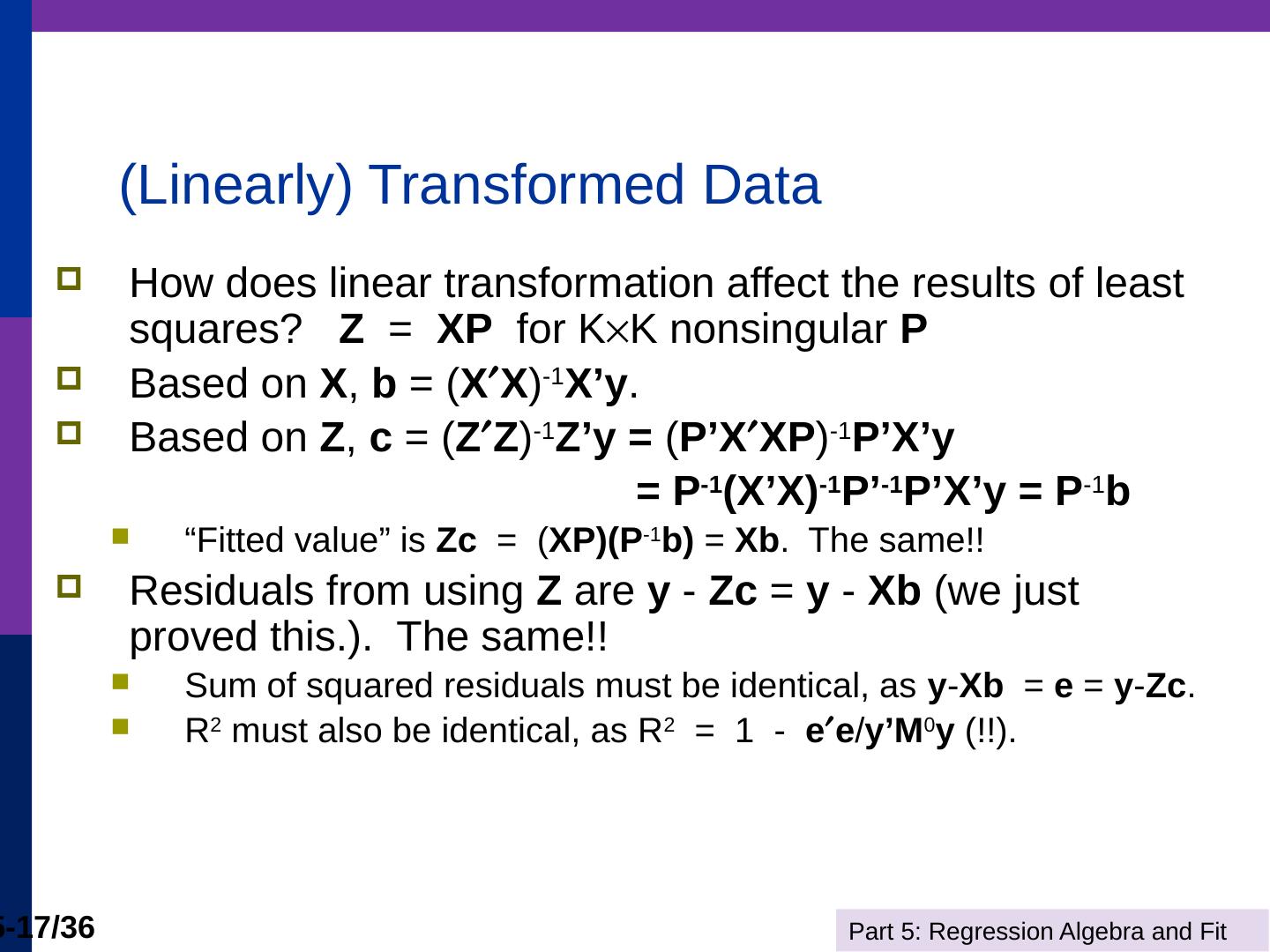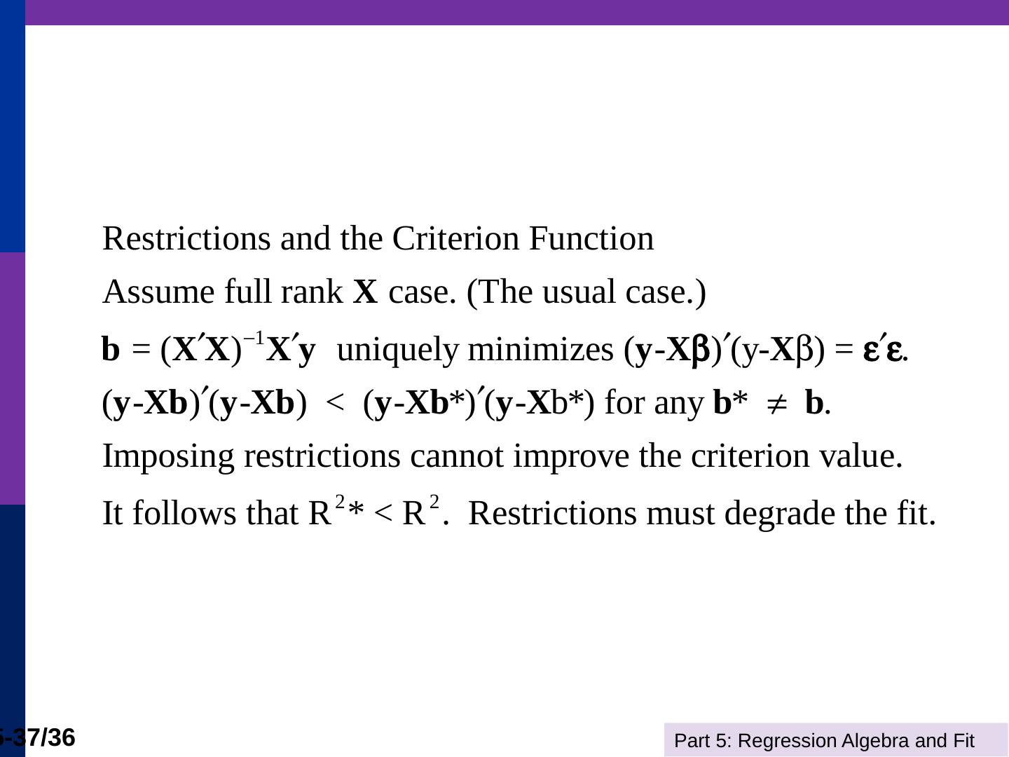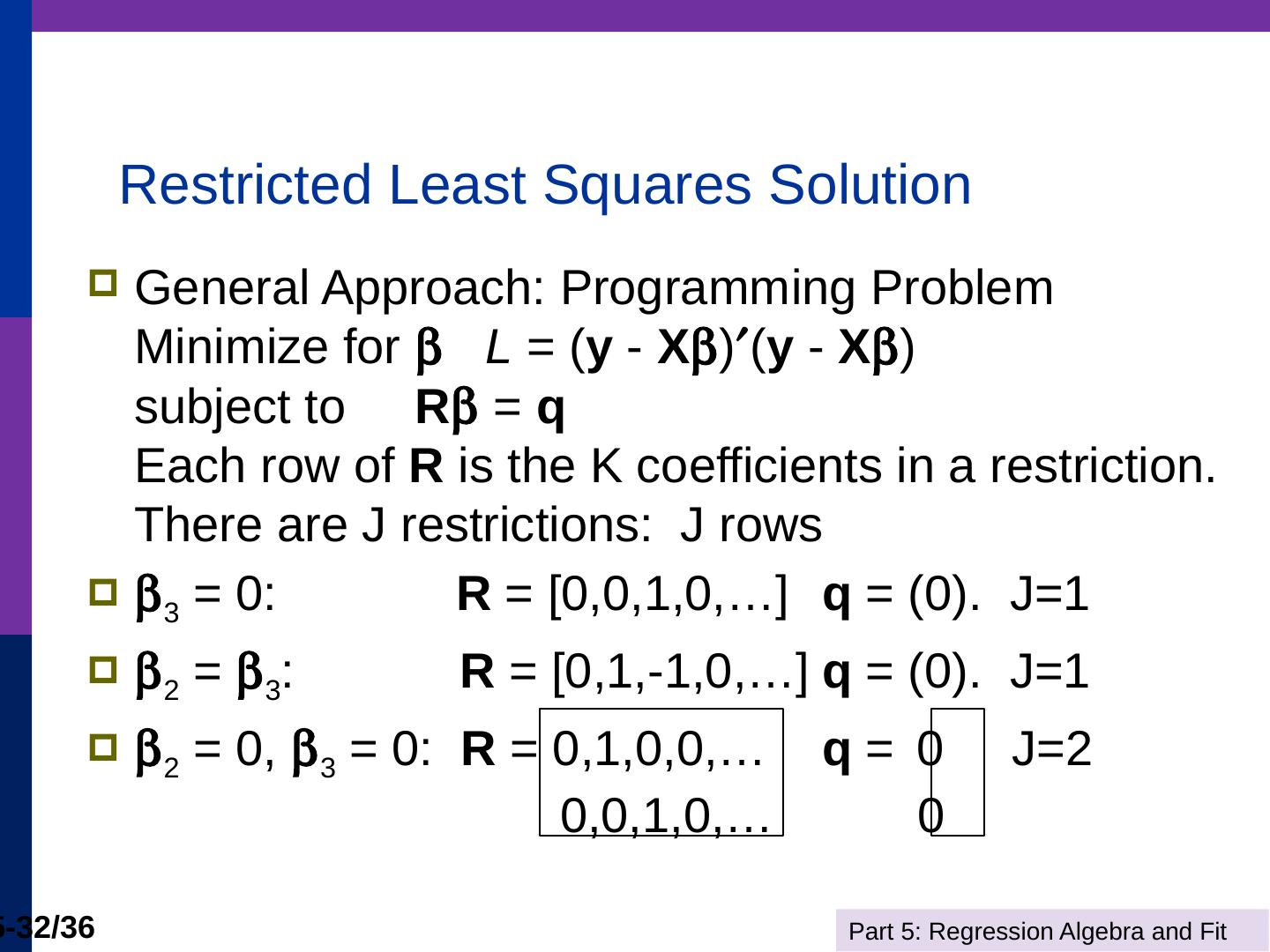 (b) The line is computed by linear least squares. Part 5: Regression Algebra and Fit. 5-11/36. Adding Variables. R2 never falls when a variable z is added to the ...