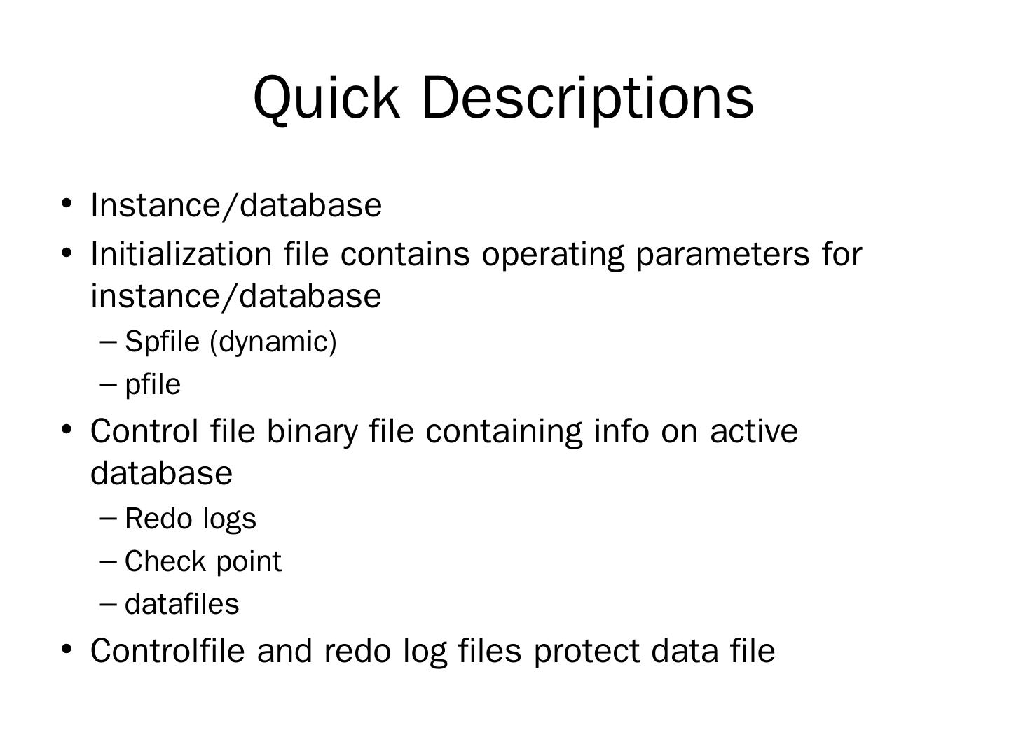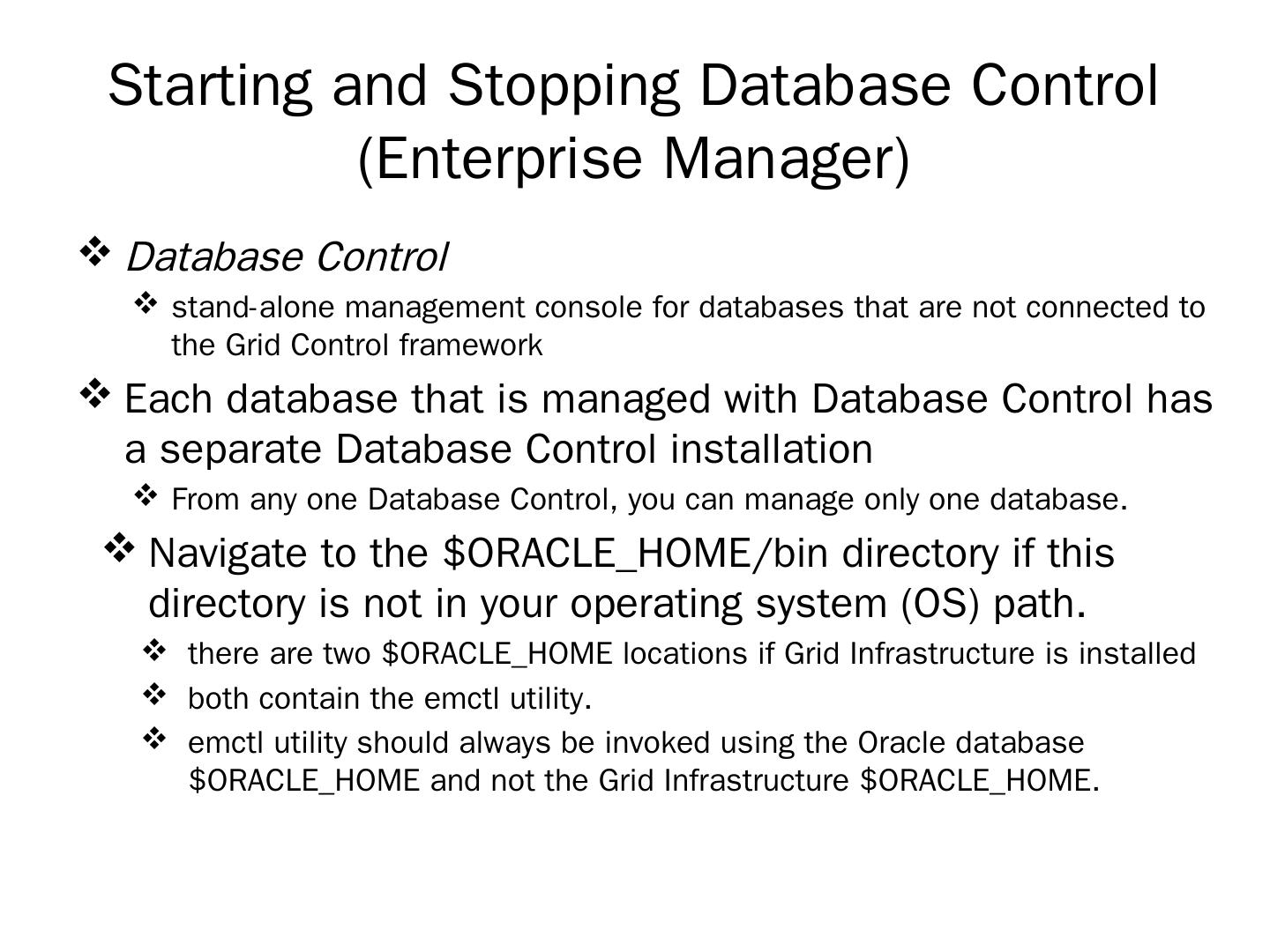 Oracle Database 11g Release 2 management framework has 3 components: Database instance; Listener; Management interface. Listener. Database Control.
