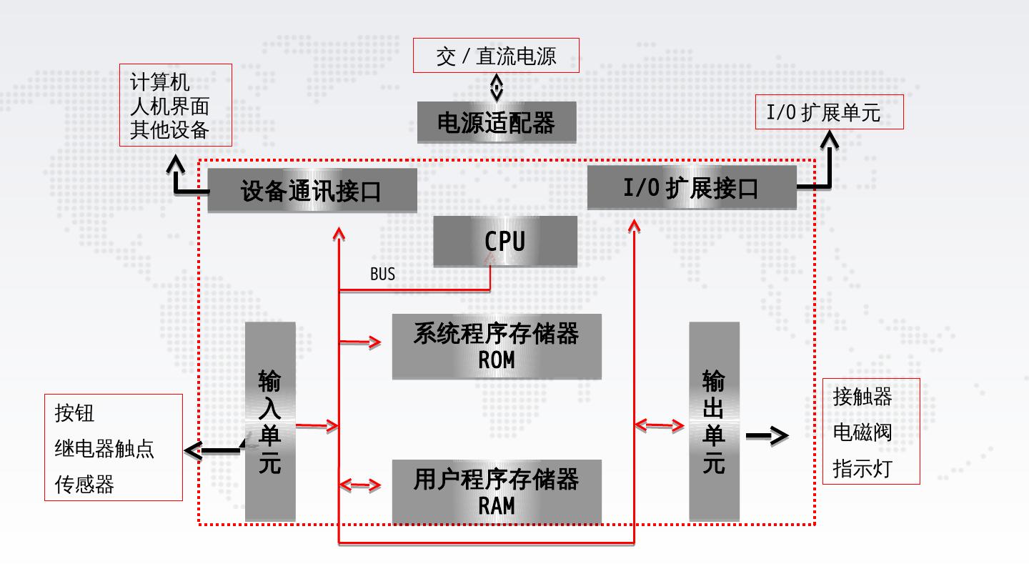 10 . 交 / 直流电源 计算机 人机界面 I/O 扩展单元 其他设备 电源适配器 设备通讯接口 I/O 扩展接口 CPU BUS 系统程序存储器 ROM 输 输 接触器 按钮 入 出 单 单 电磁阀 继电器触点 元 元 指示灯 传感器 用户程序存储器 RAM