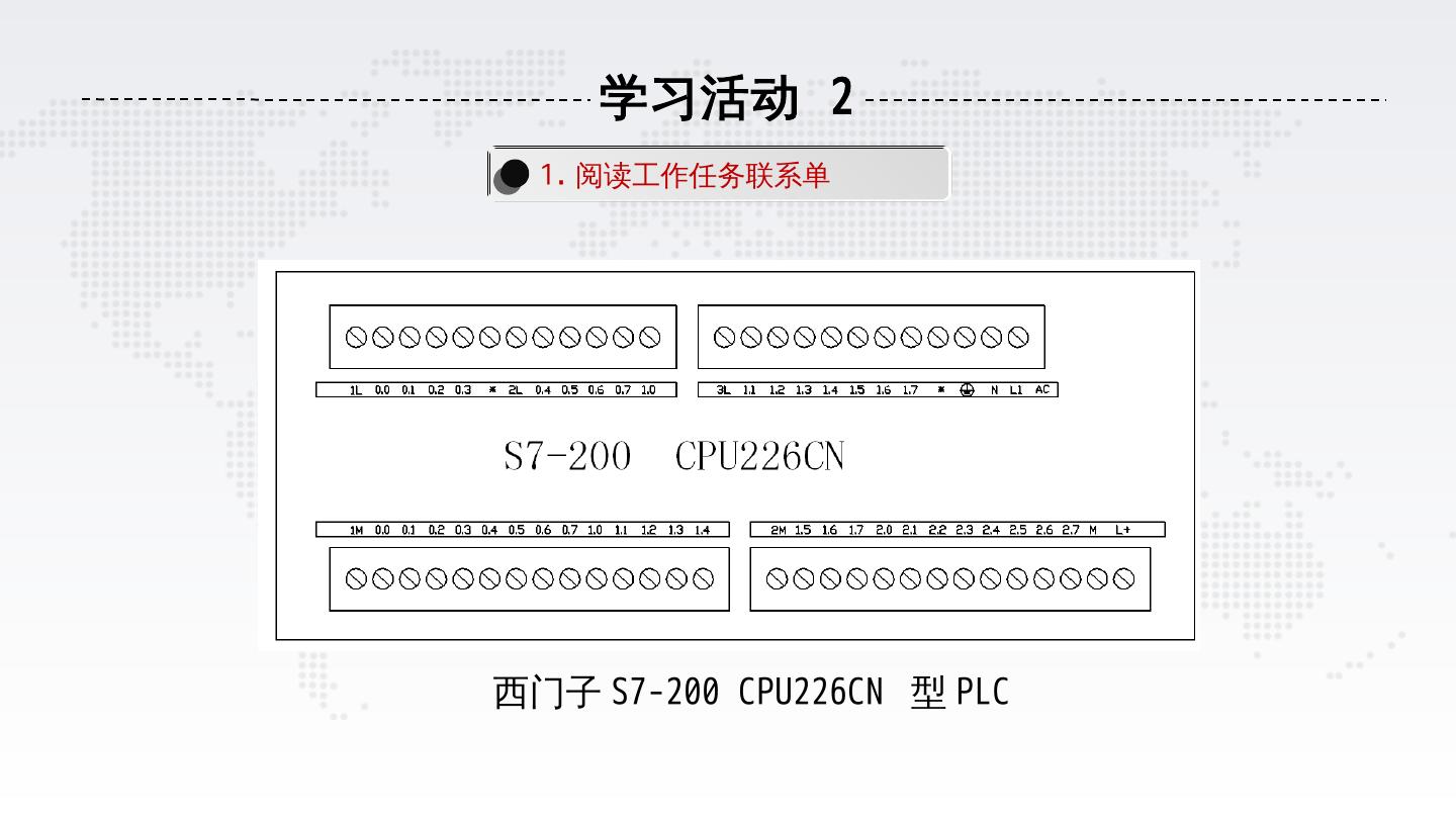 13 . 学习活动 2 1. 阅读工作任务联系单 西门子 S7-200 CPU226CN 型 PLC