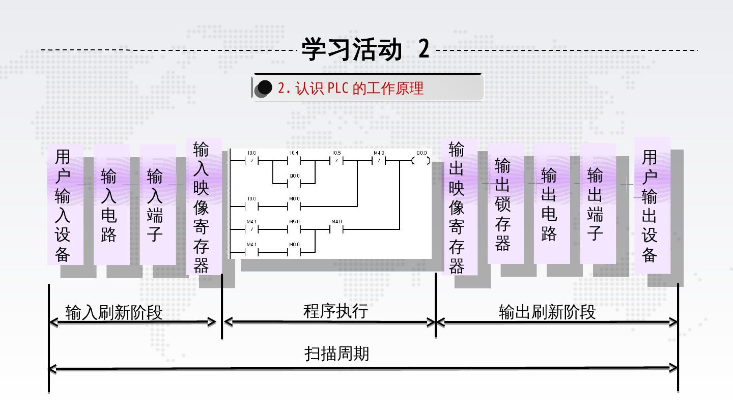 15 . 学习活动 2 2. 认识 PLC 的工作原理 用 输 输 用 户用 入输 出输 输 输 输 出输 输 输 户用 输户 入输 入输 映入 映出 出输 出输 锁出 输户 入输 电入 端入 像映 像映 电出 端出 存锁 出输 设入 路电 子端 寄像 寄像 路电 子端 器存 设出 备设 路 子 存寄 存寄 路 子 器 备设 备 器存 器存 备 器 器 输入刷新阶段 程序执行 输出刷新阶段 扫描周期