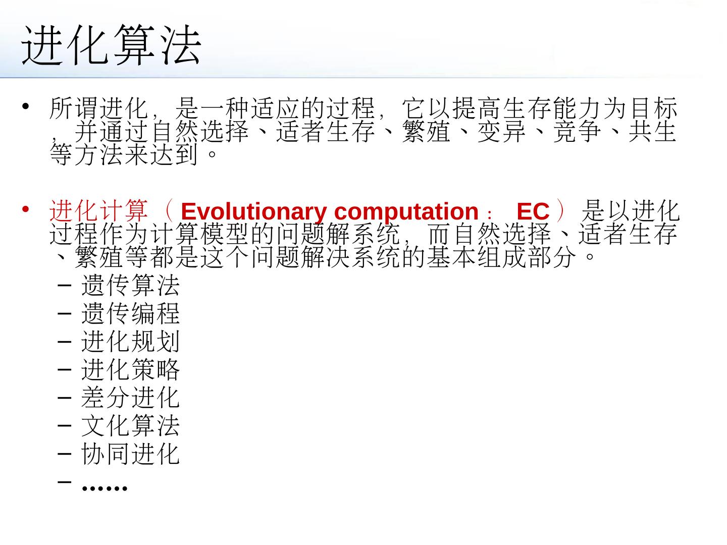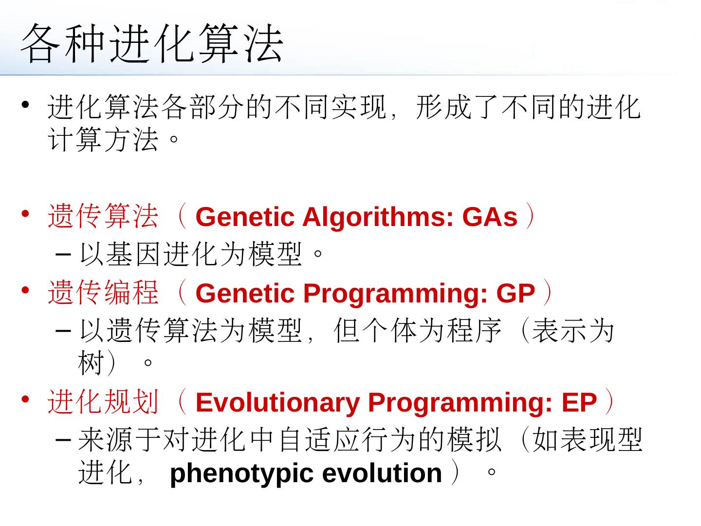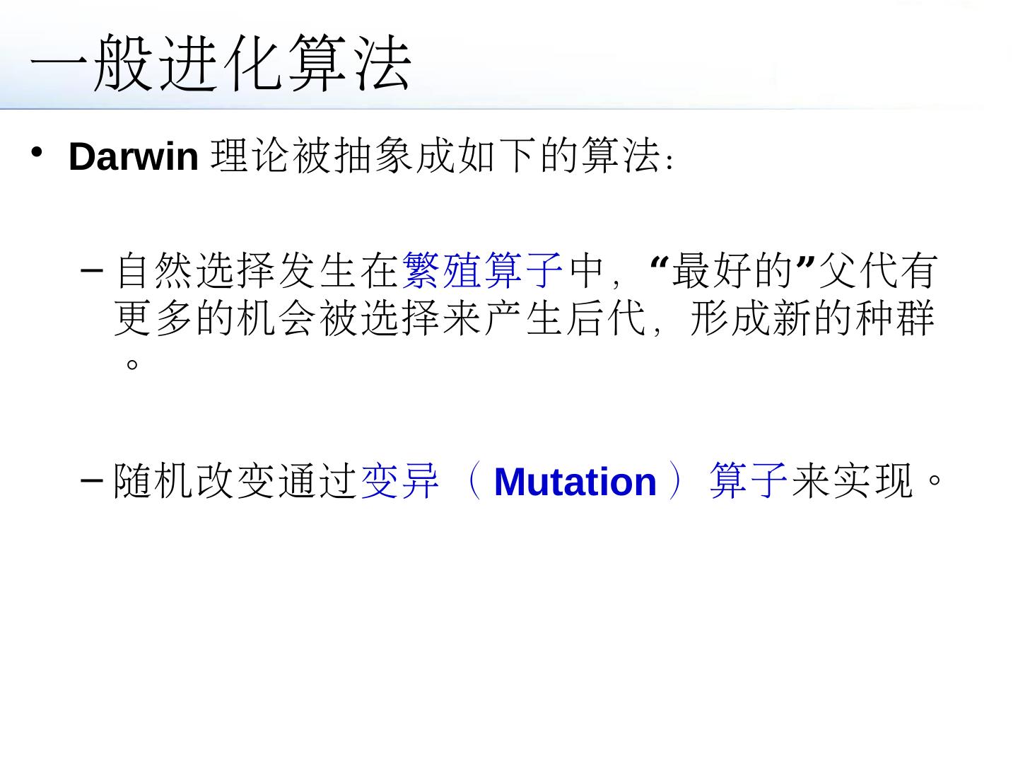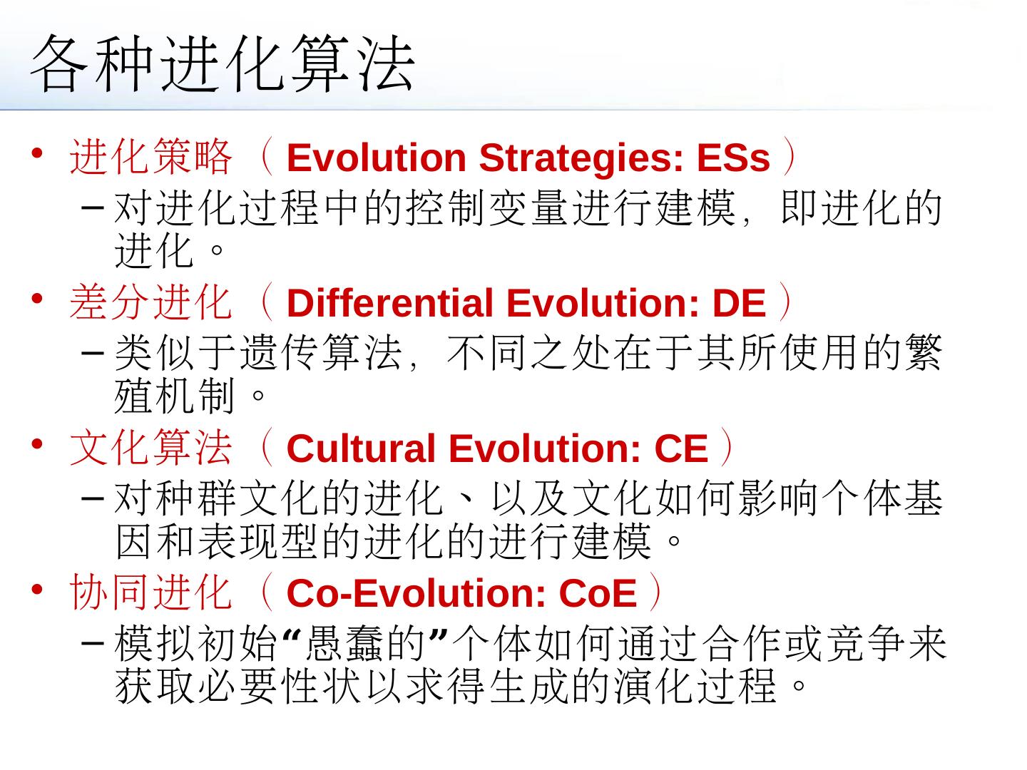 进化是一个优化过程,目的是在不断变化的竞争环境中提高某生物(或系统)的生存能力。 Darwin(1809~1882)是进化理论和共同起源法则的奠基人,而Lamarck可能 ...