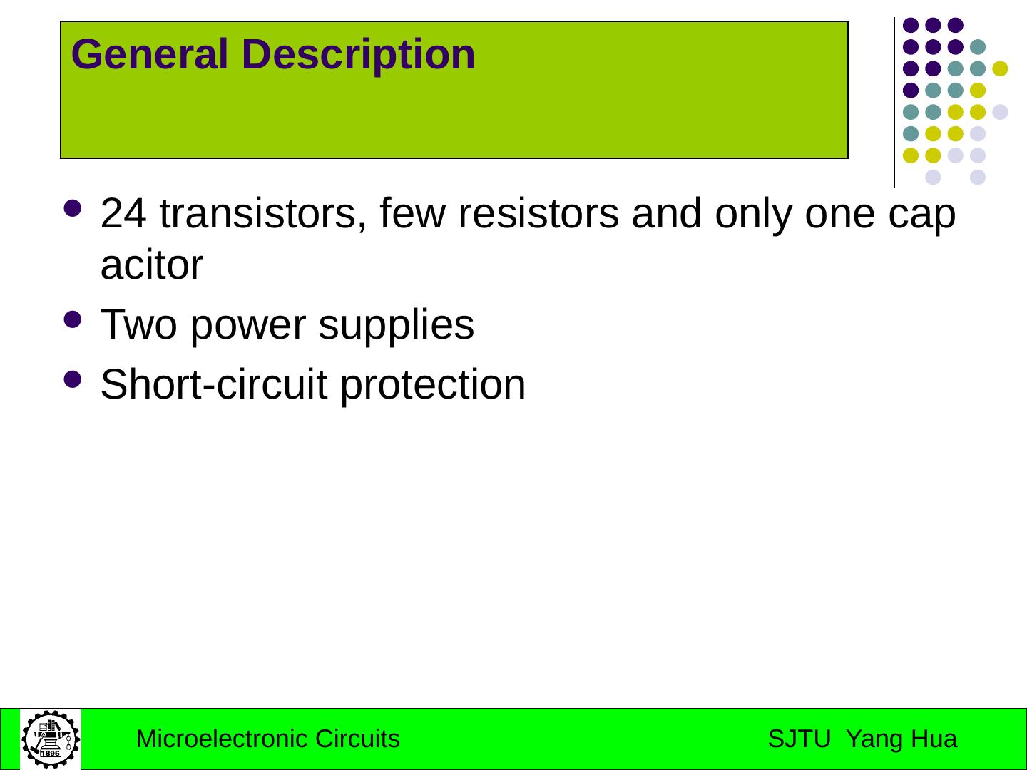 7 .General Description 24 transistors, few resistors and only one capacitor Two power supplies Short-circuit protection