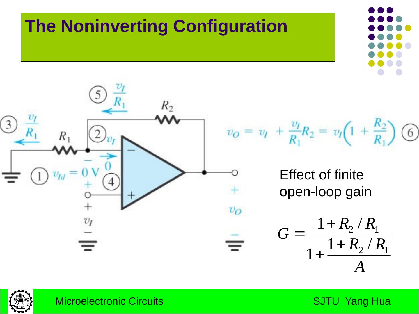 29 .The Inverting Configuration Shunt-shunt negative feedback Closed-loop gain depends entirely on passive components and is independent of the op amplifier. Engineer can make the closed-loop gain as accurate as he wants as long as the passive components are accurate. Exercises: example 2.2