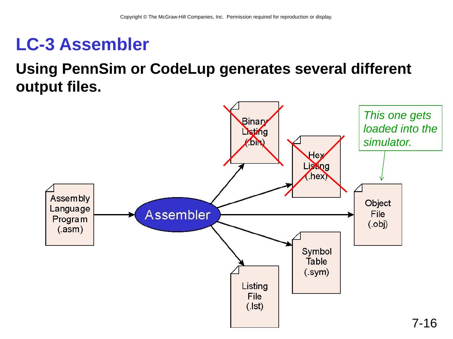 16 .7- 16 LC-3 Assembler Using PennSim or CodeLup generates several different output files. This one gets loaded into the simulator.