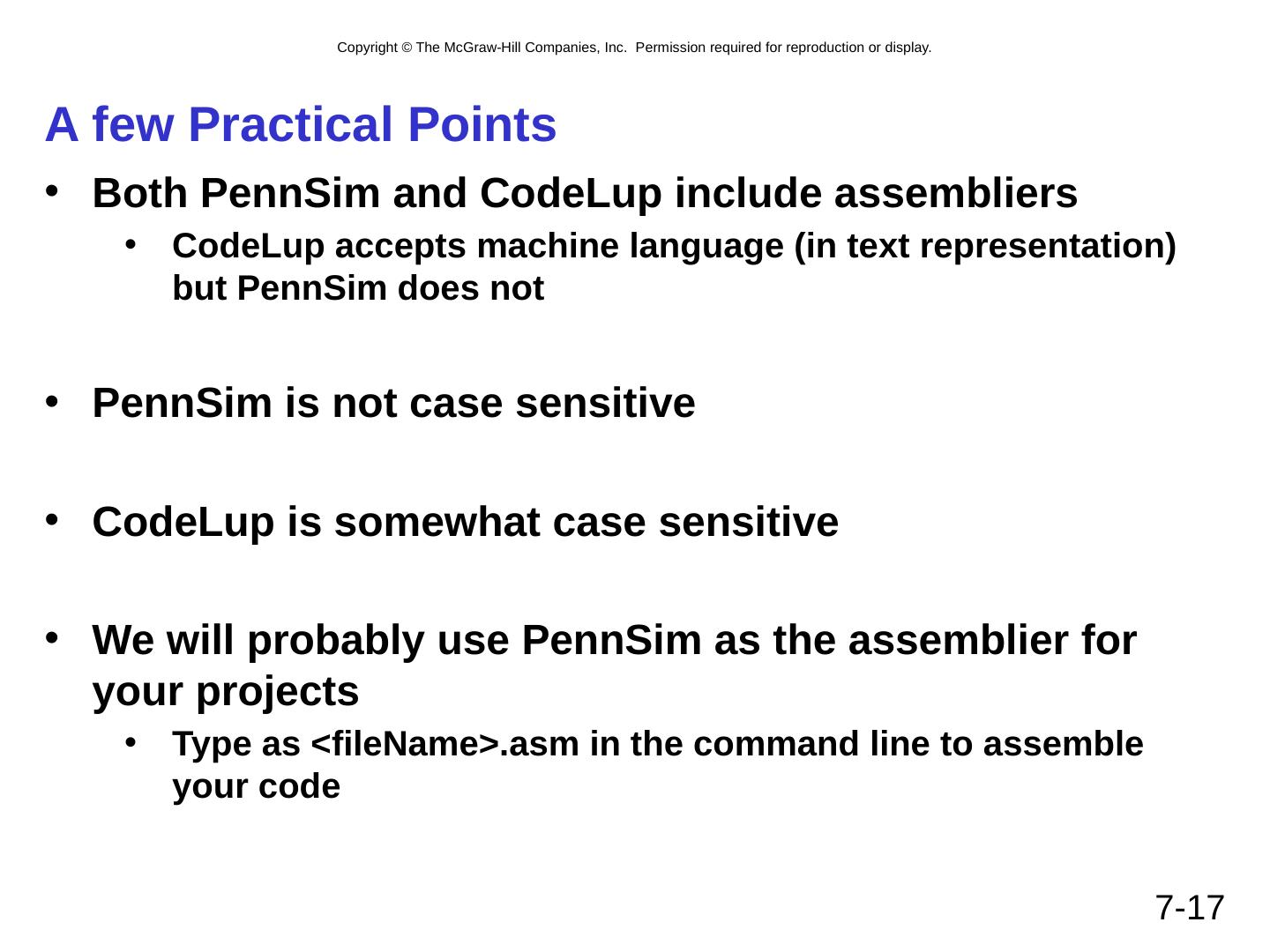17 .A few Practical Points Both PennSim and CodeLup include assembliers CodeLup accepts machine language (in text representation) but PennSim does not PennSim is not case sensitive CodeLup is somewhat case sensitive We will probably use PennSim as the assemblier for your projects Type as < fileName >. asm in the command line to assemble your code 7- 17