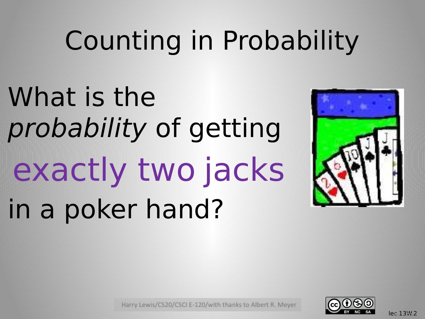 2 .Counting in Probability What is the probability of getting exactly two jacks in a poker hand? lec 13W. 2 lec 13W. 2