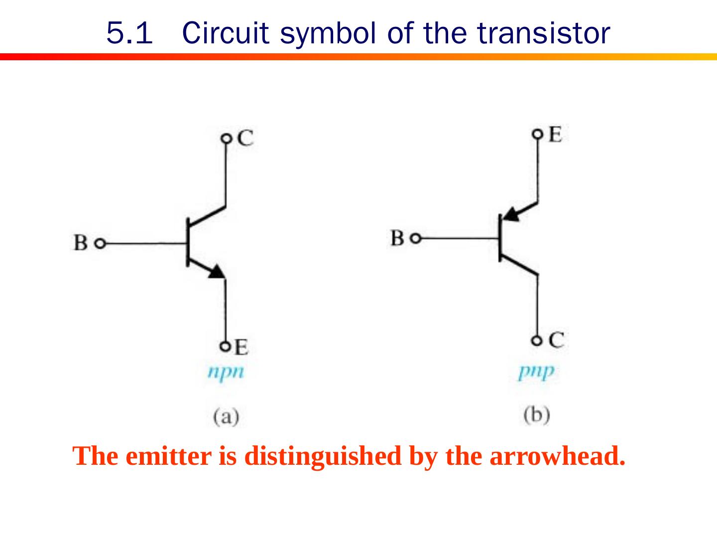 5 .5.1 Circuit symbol of the transistor The emitter is distinguished by the arrowhead.