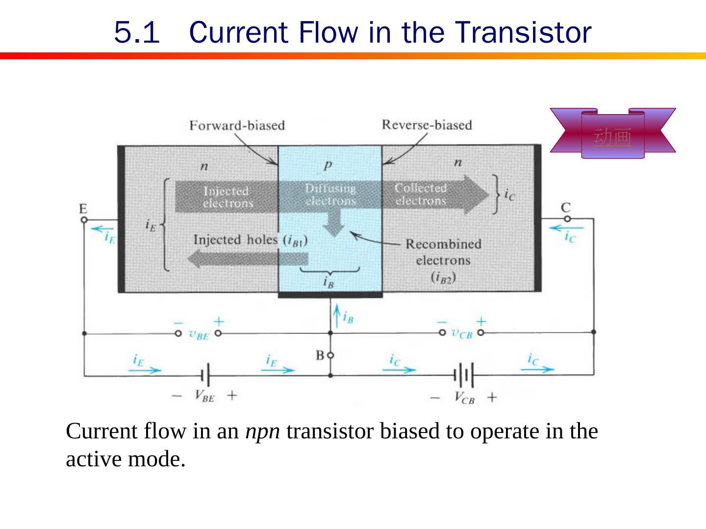 12 .Current flow in an npn transistor biased to operate in the active mode. 5.1 Current Flow in the Transistor 动画
