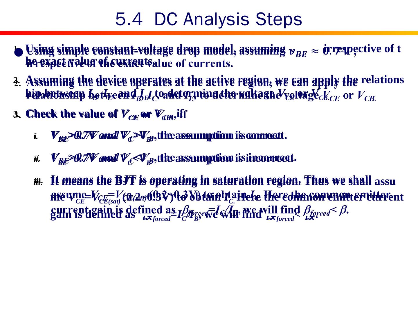 27 .Large-signal Equivalent Circuit Models Analysis Steps Examples 5.4 Analysis of Transistor Circuit at DC