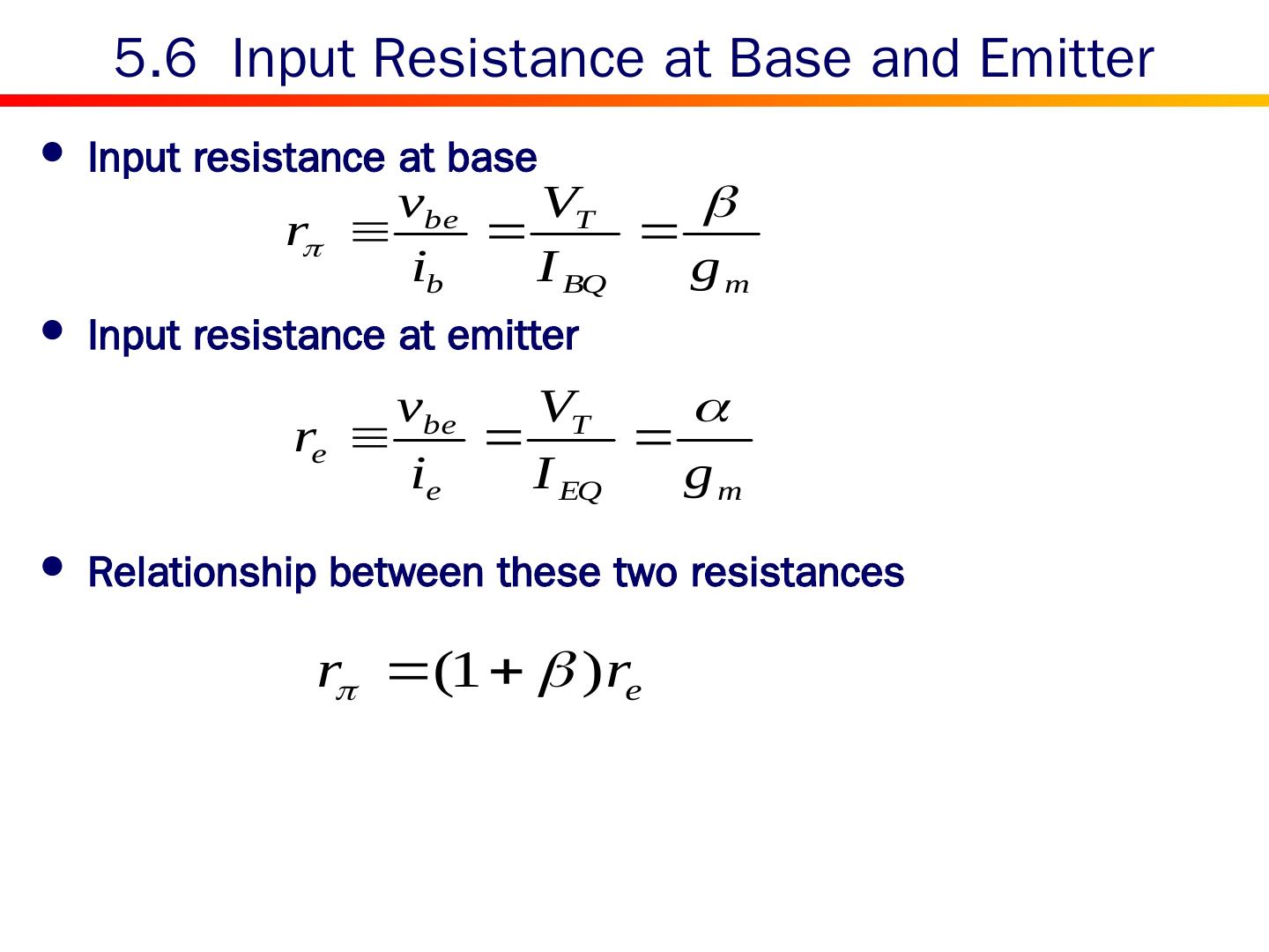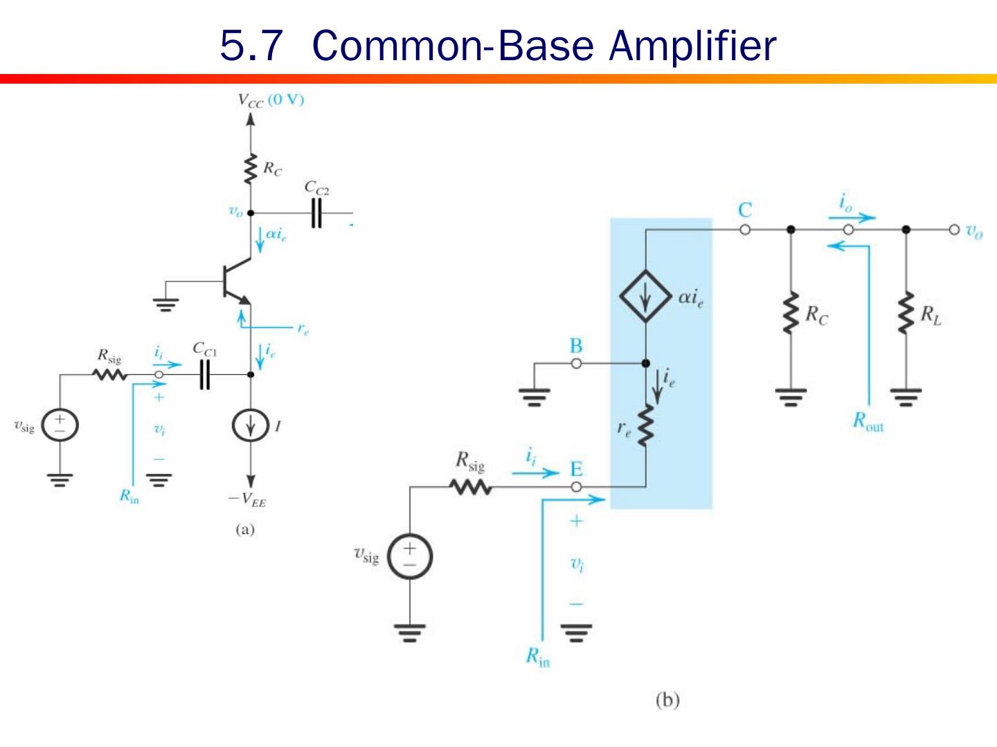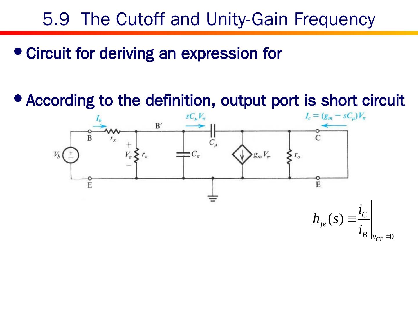 22 .Expression for common-base current gain: Its value is less than but very close to unity. Small changes in α correspond to very large changes in β. 5.3 Common-Base Current Gain c b e i E i C i B