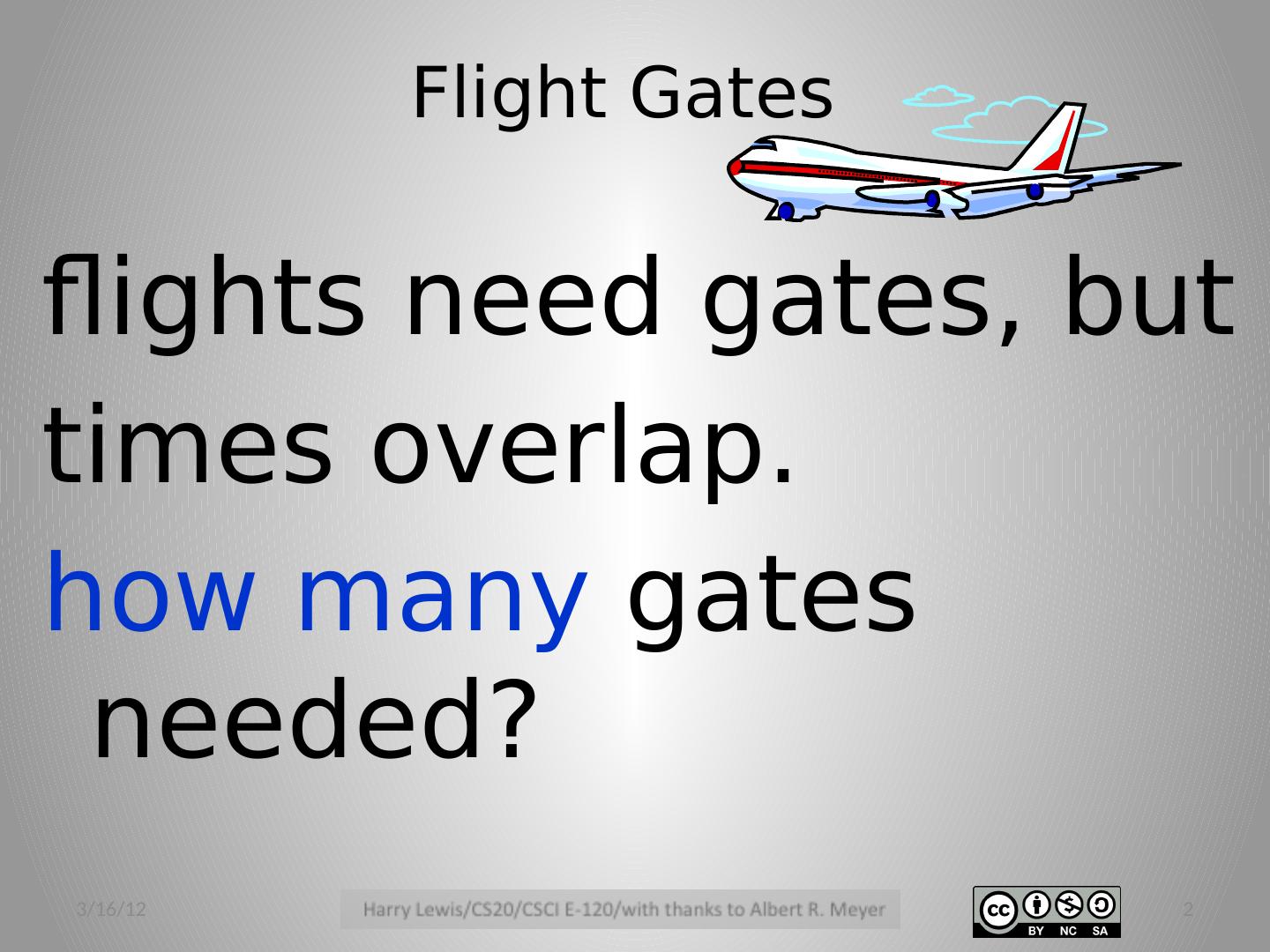 2 .Flight Gates flights need gates, but times overlap. how many gates needed? 3/16/12 2