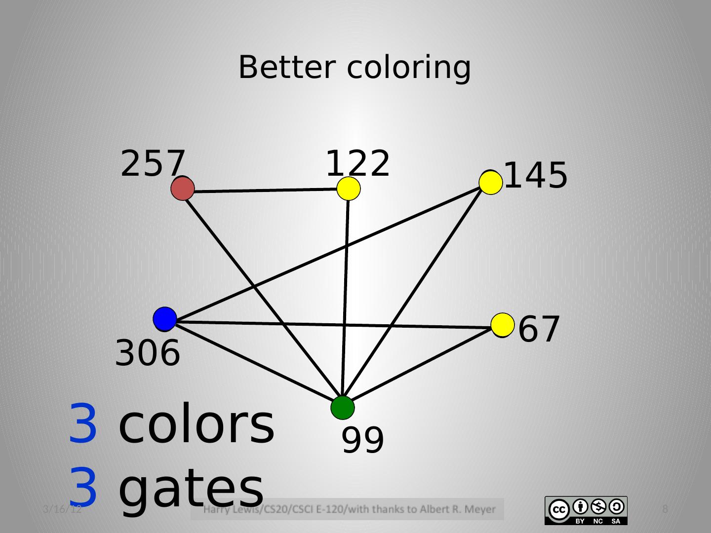 8 .Better coloring 3 colors 3 gates 257 67 99 145 306 122 3/16/12 8
