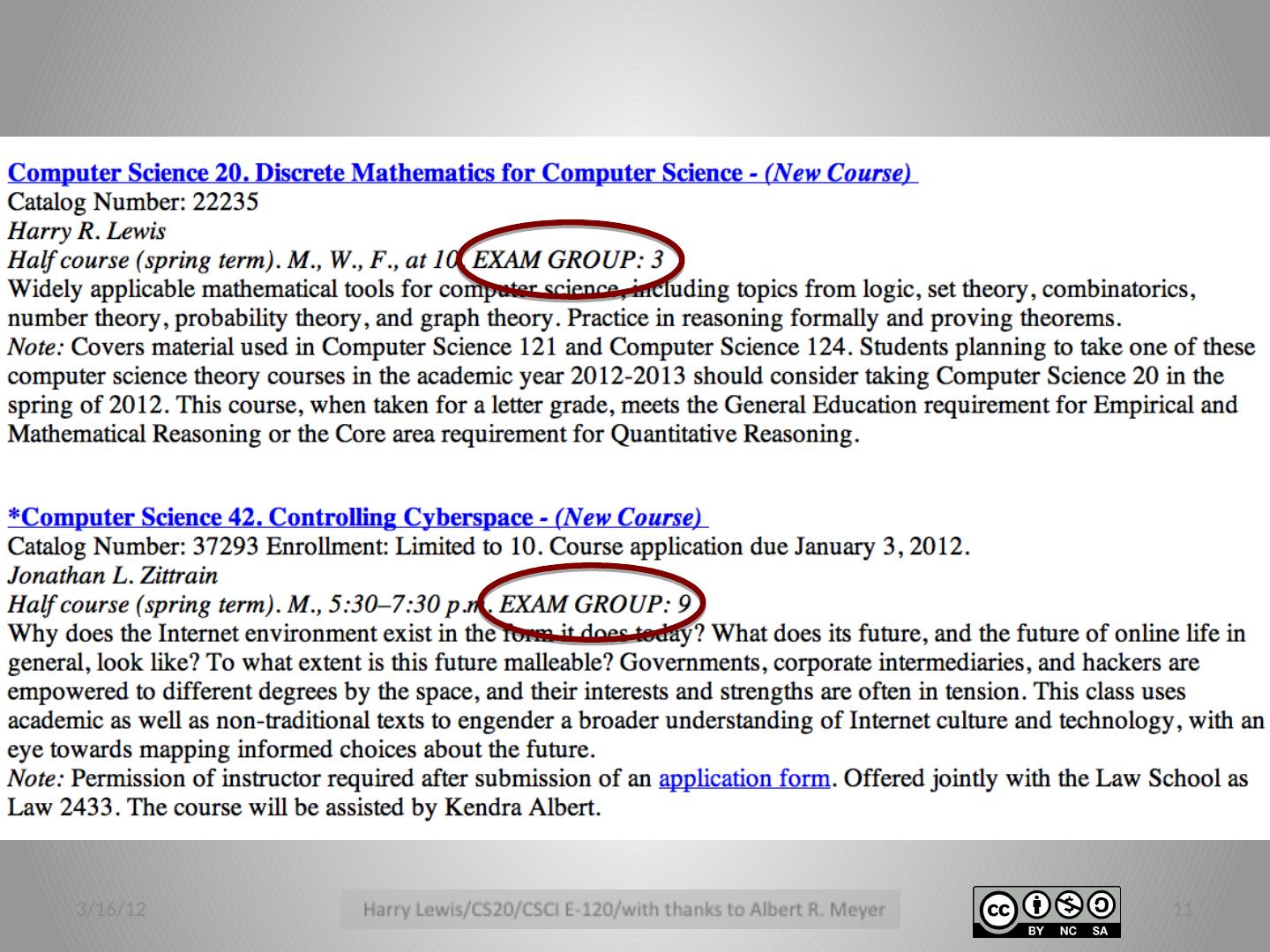 10 .Harvard’s Solution Different “exam group” for every teaching hour. Exams for different groups at different times. 3/16/12 10