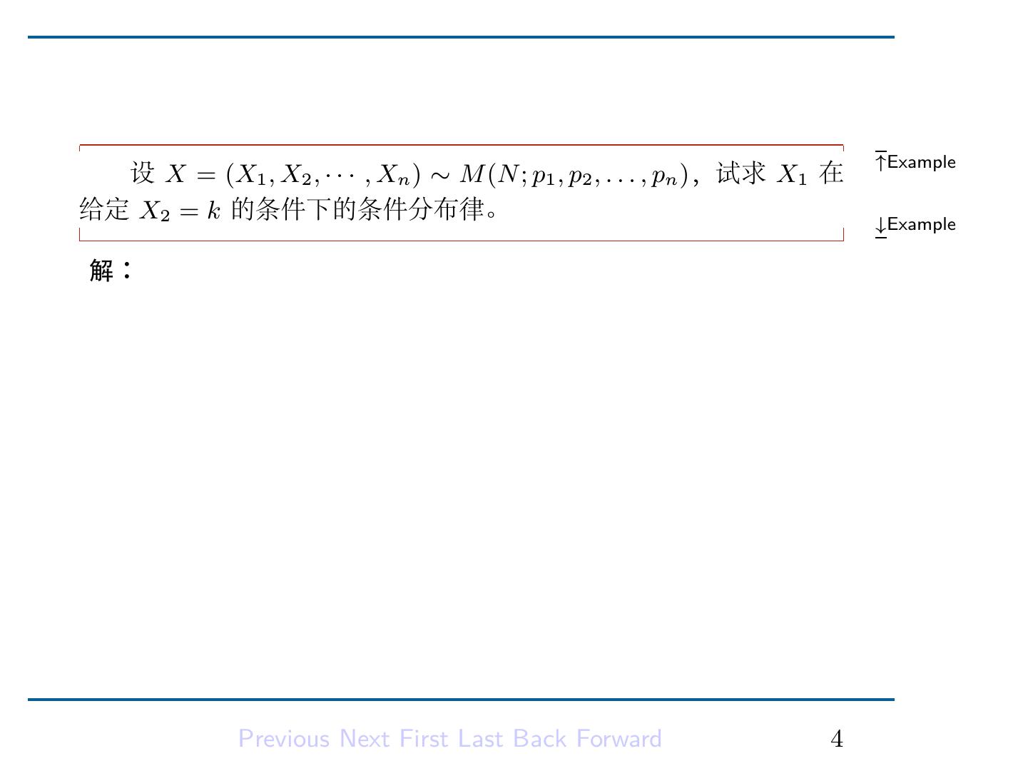 7 .即 X1 在给定 X2 = k 的条件下服从二项分布 B(N − k, p1 /(1 − p2 )). Previous Next First Last Back Forward 5