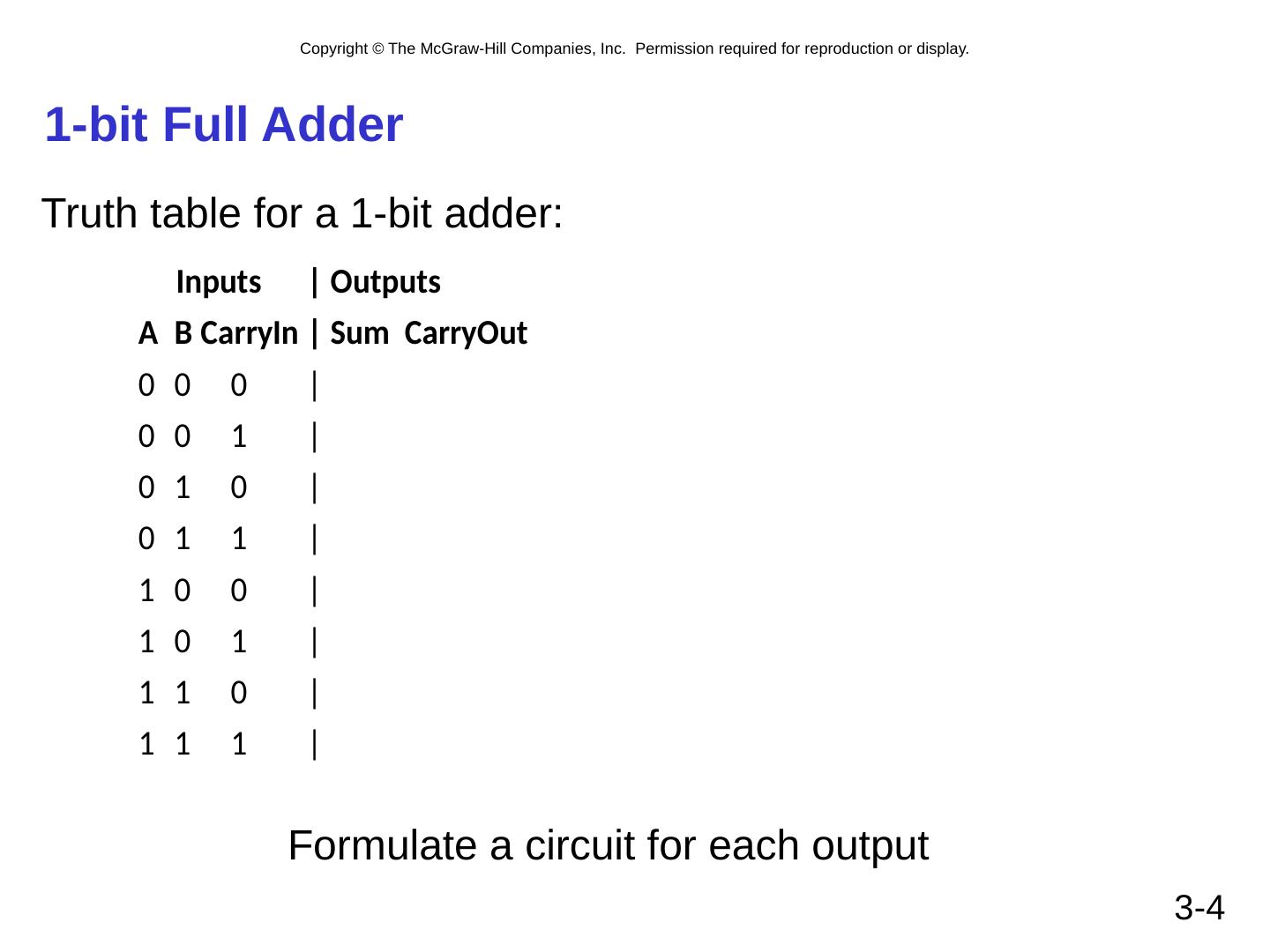 4 .1-bit Full Adder 3- 4 Truth table for a 1-bit adder: Formulate a circuit for each output