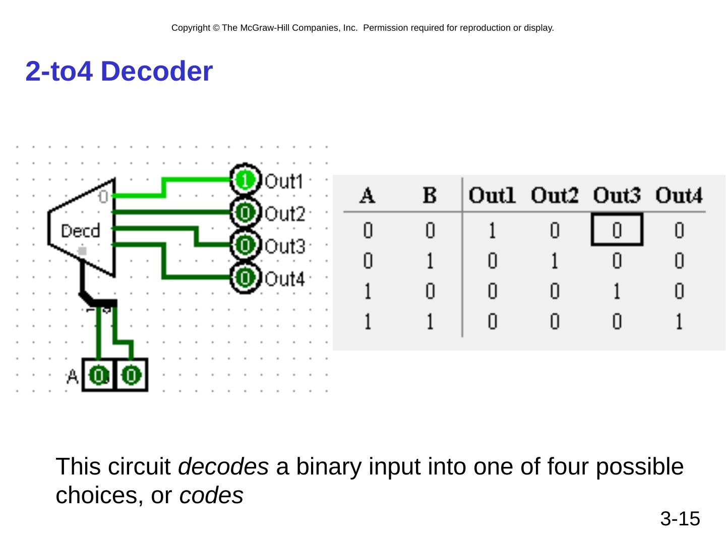 15 .2-to4 Decoder 3- 15 This circuit decodes a binary input into one of four possible choices, or codes