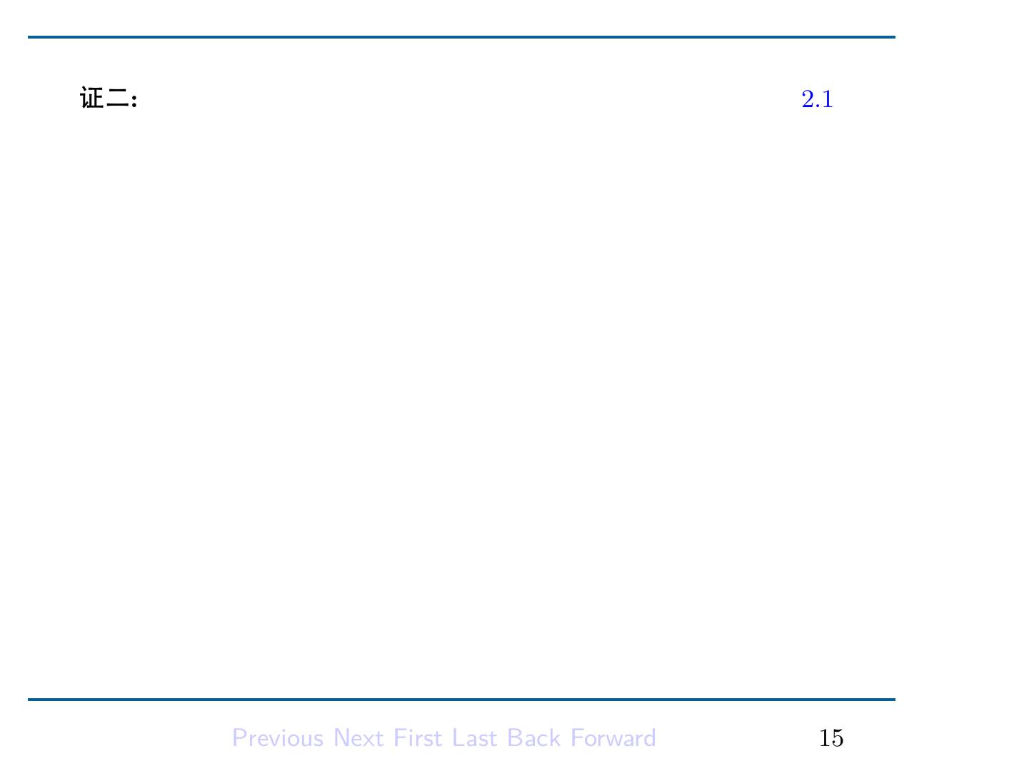 21 .为 1 fn−1 (z) = z (n−1)/2−1 e−z/2 I(z > 0) 2(n−1)/2 Γ( n−1 2 ) 则 Yn = Yn−1 + Xn2 的概率密度函数可由卷积公式得 ∫ fn (z) = fn−1 (y)f1 (z − y)dy R ∫ 1 1 = z n/2−1 e−z/2 I(z > 0) t(n−1)/2−1 (1 − t)1/2−1 dt 2n/2 Γ( n−1 2 )Γ( 12 ) 0 1 = z n/2−1 e−z/2 I(z > 0) 2n/2 Γ( n2 ) Previous Next First Last Back Forward 19