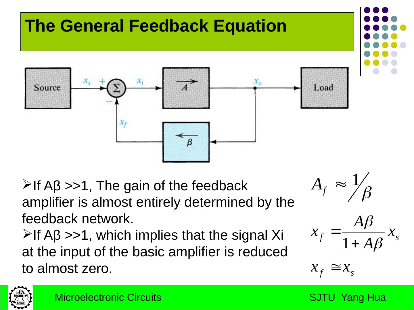 15 .The General Feedback Equation If Aβ >>1, The gain of the feedback amplifier is almost entirely determined by the feedback network. If Aβ >>1, which implies that the signal Xi at the input of the basic amplifier is reduced to almost zero.