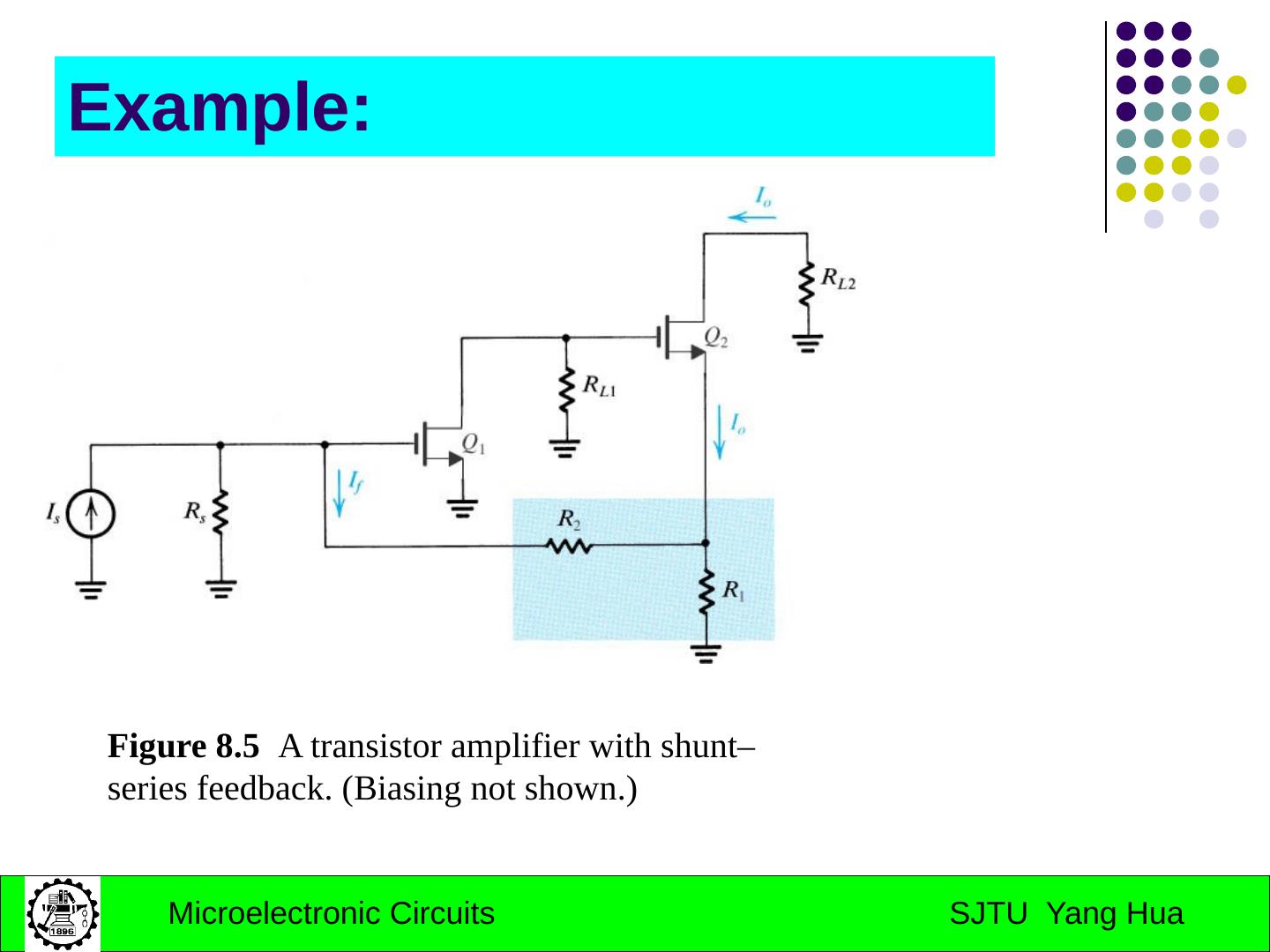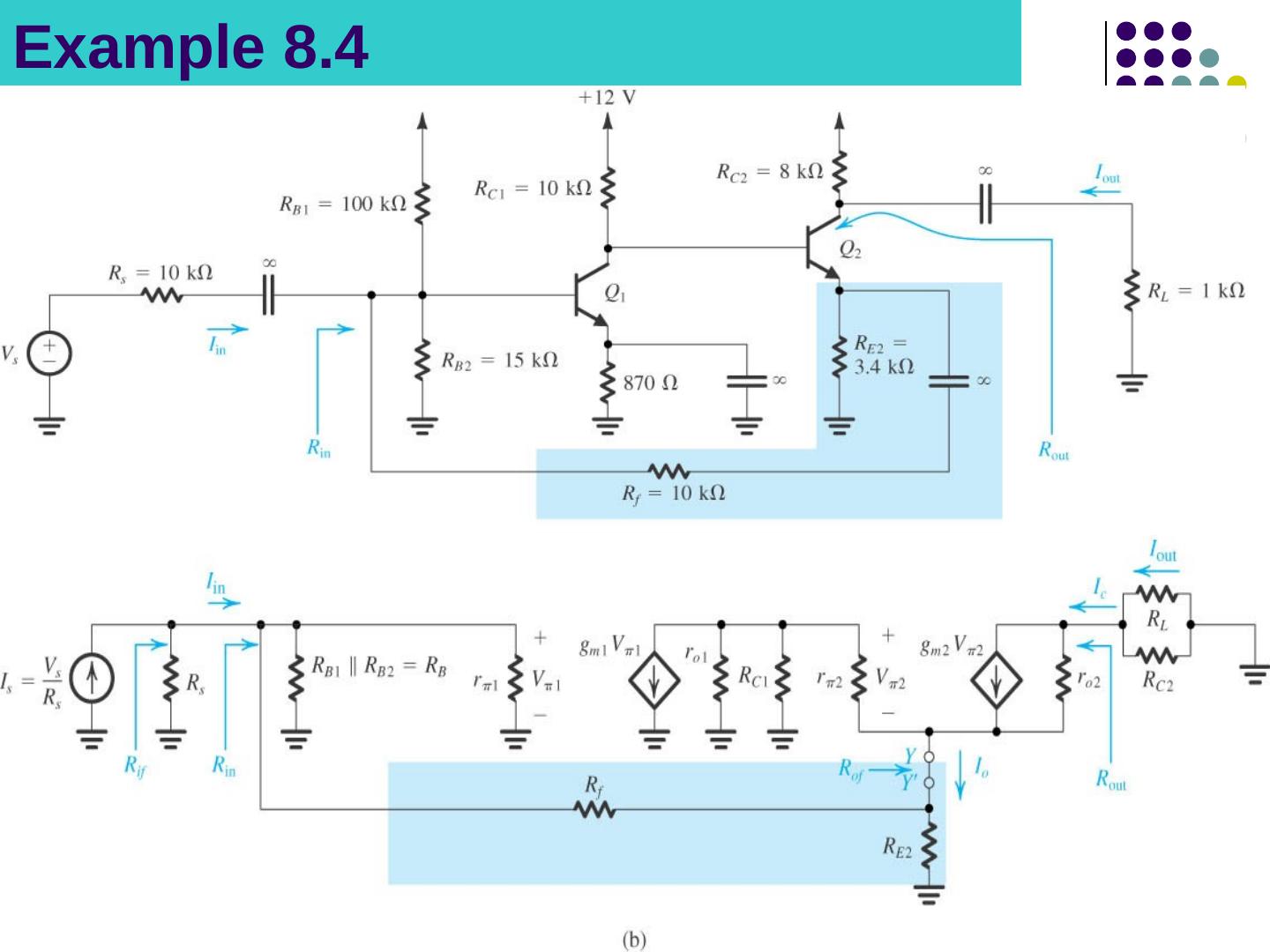 25 .Example: Figure 8.5 A transistor amplifier with shunt–series feedback. (Biasing not shown.)