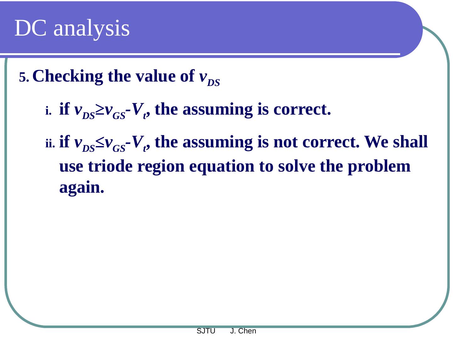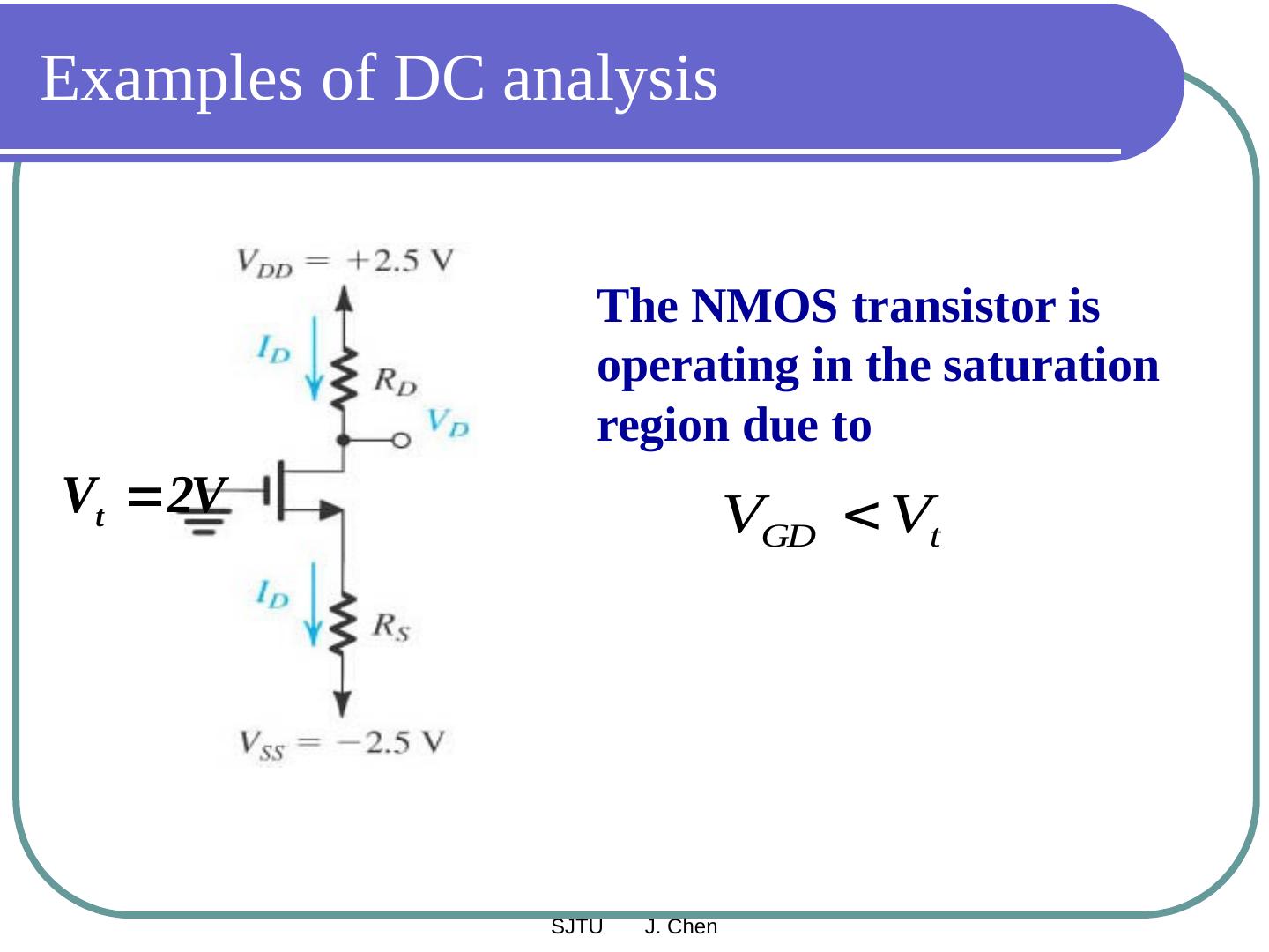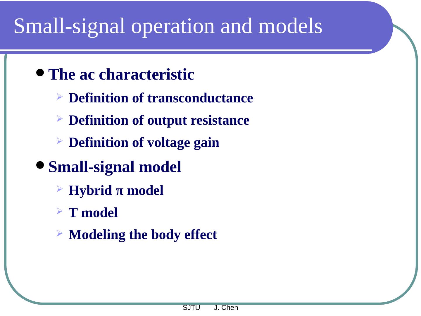 2 .SJTU J. Chen Content Physical operation and current-voltage characteristics DC analysis Biasing in MOS amplifier circuit and basic configuration