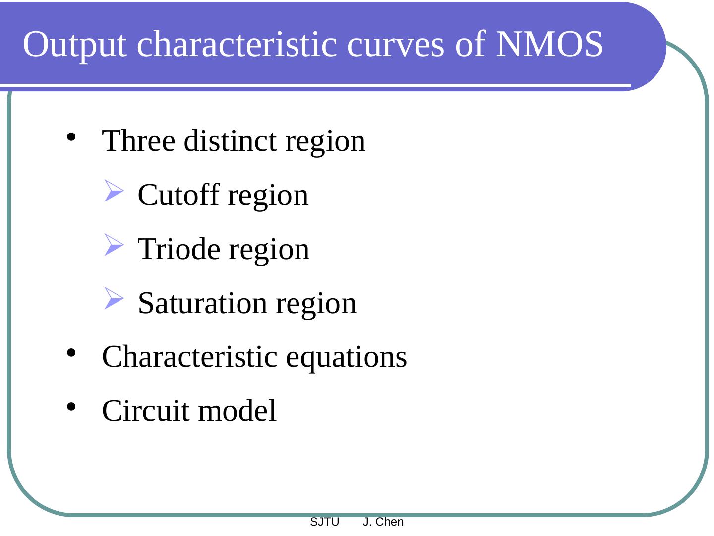 22 .SJTU J. Chen Three distinct region Cutoff region Triode region Saturation region Characteristic equations Circuit model Output characteristic curves of NMOS