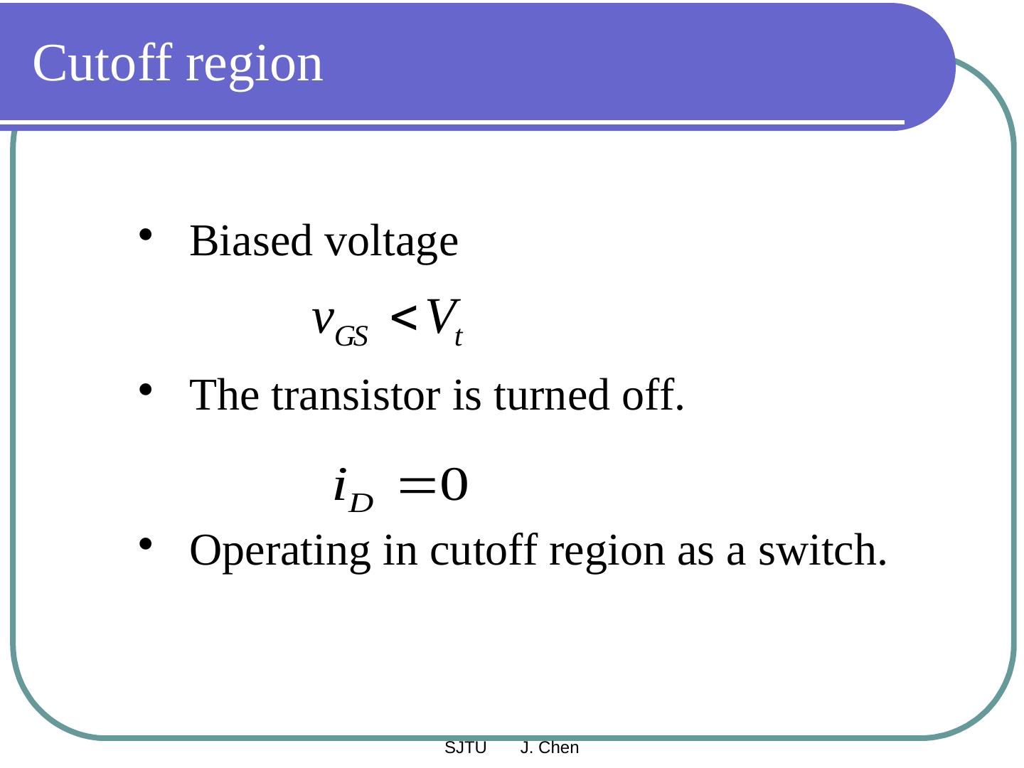 23 .SJTU J. Chen Biased voltage The transistor is turned off. Operating in cutoff region as a switch. Cutoff r egion
