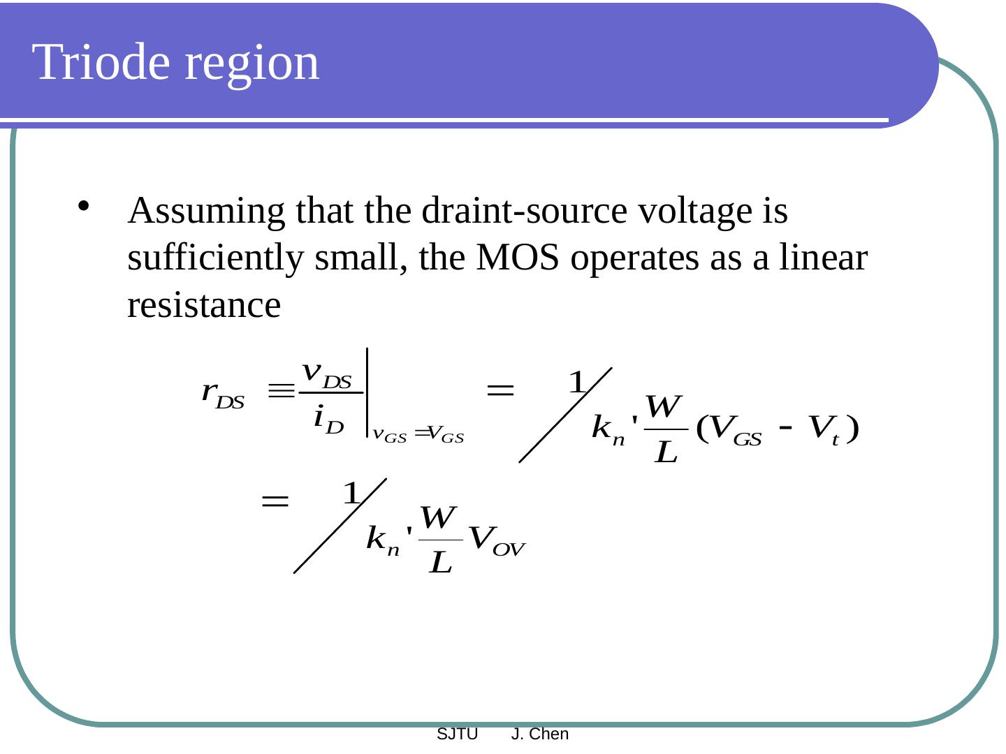 25 .SJTU J. Chen Assuming that the draint-source voltage is sufficiently small , t he MOS operates as a linear resistance Triode r egion