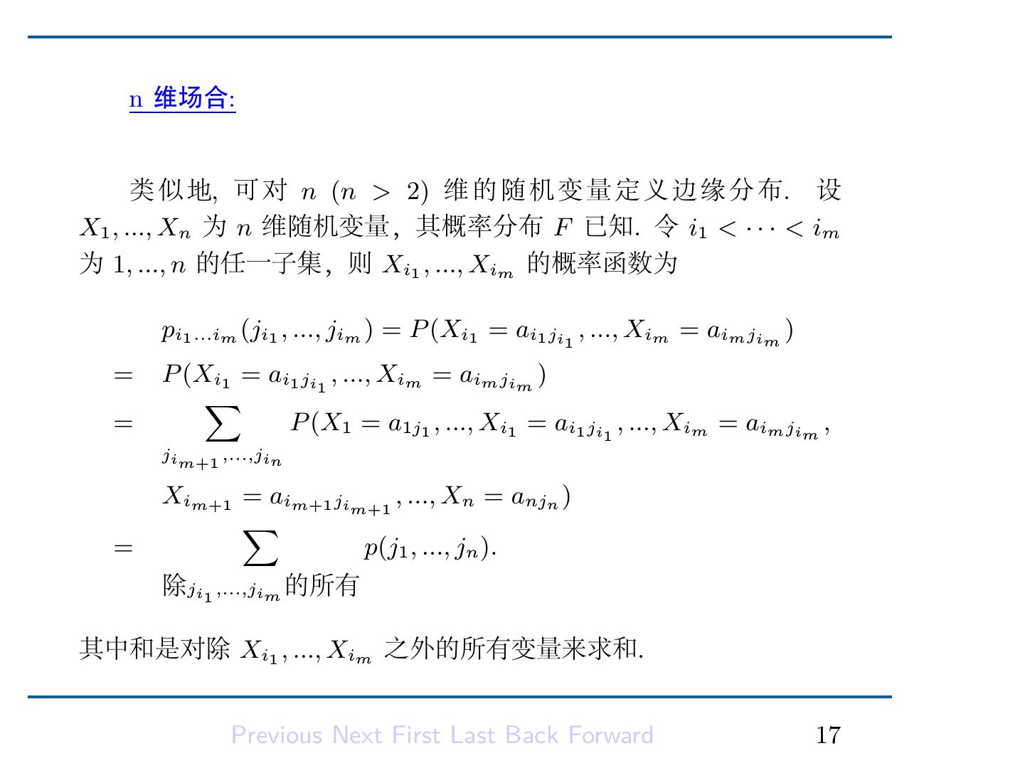 2 .第二章随机变量及其分布 2.3 多维分布与边际分布 . . . . . . . . . . . . . . 1 2.3.1 多维分布 . . . . . . . . . . . . . . . . 1 2.3.2 边缘分布 . . . . . . . . . . . . . . . . 14 Previous Next First Last Back Forward 1