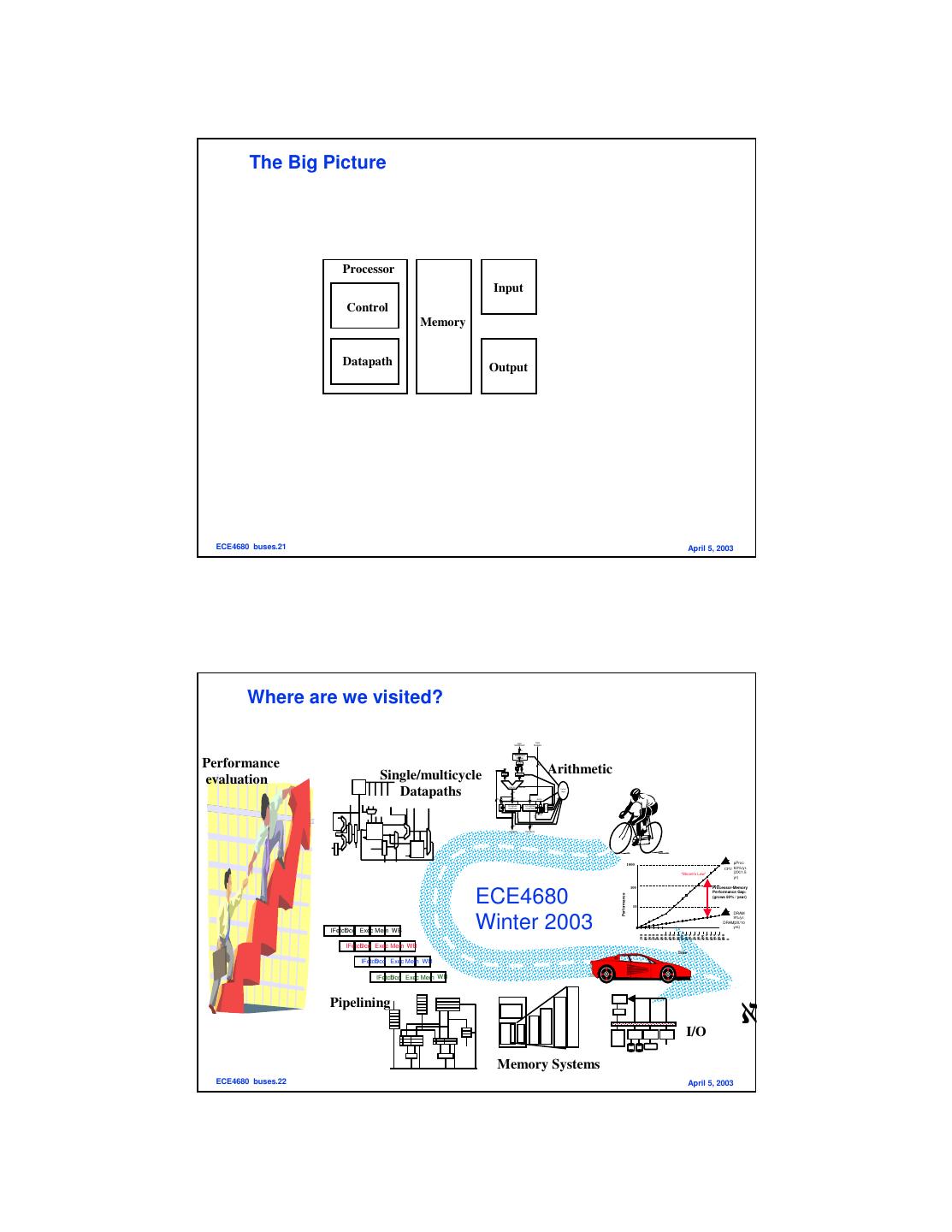 12 . Beyond ECE4680 Application Operating Compiler System Instruction Set Architecture Instr. Set Proc. I/O system Digital Design Circuit Design ECE4680 buses.23 April 5, 2003