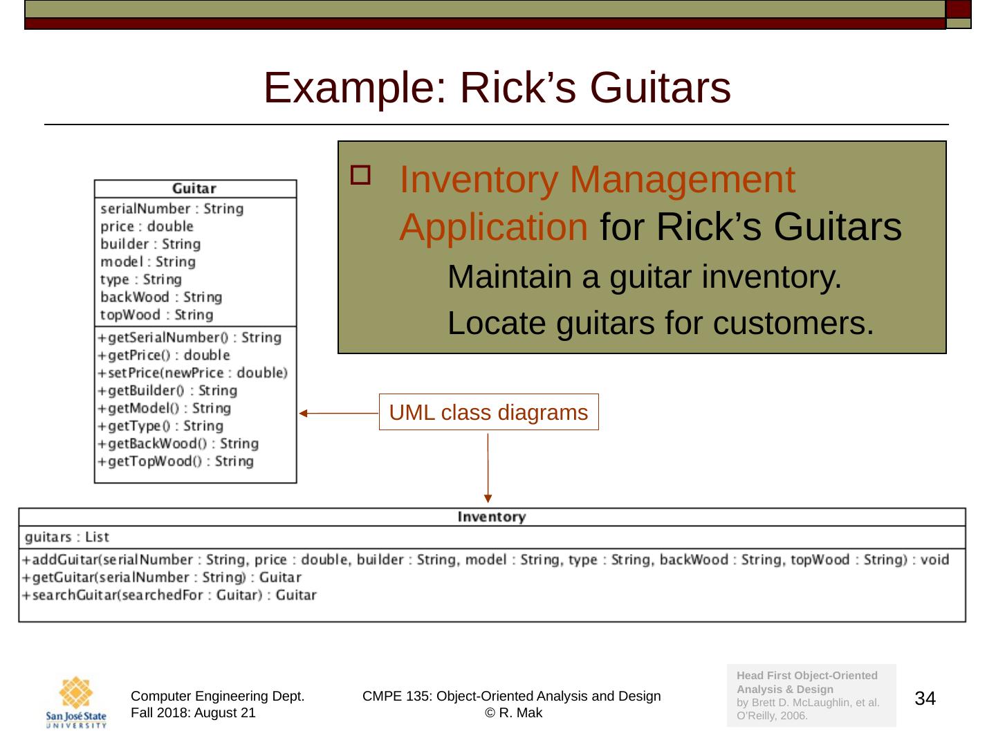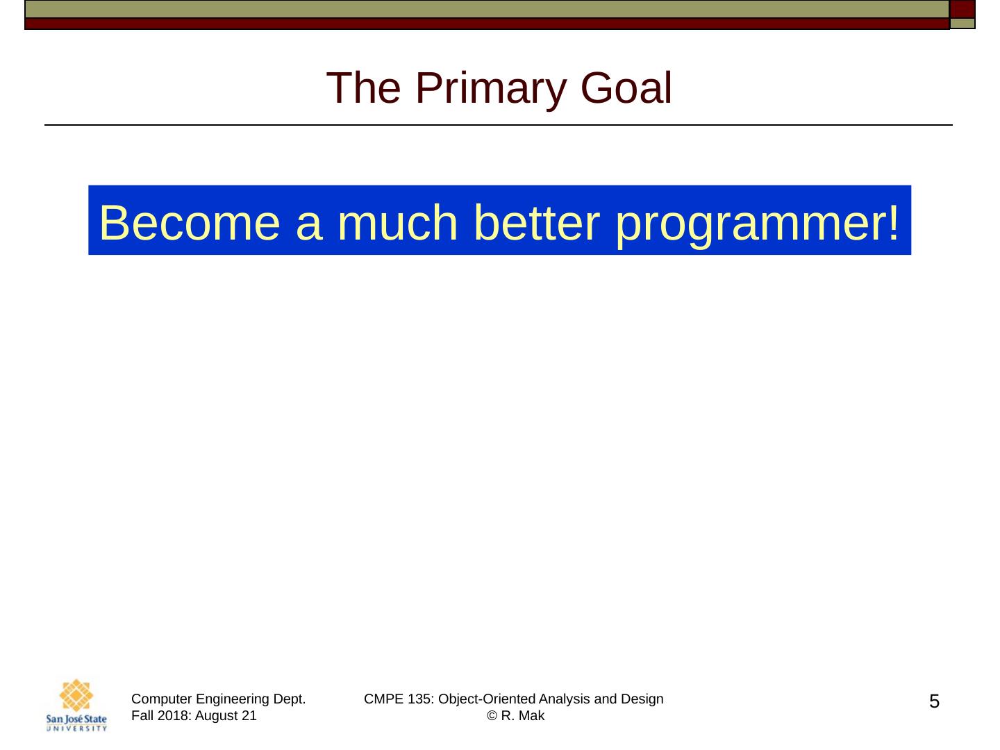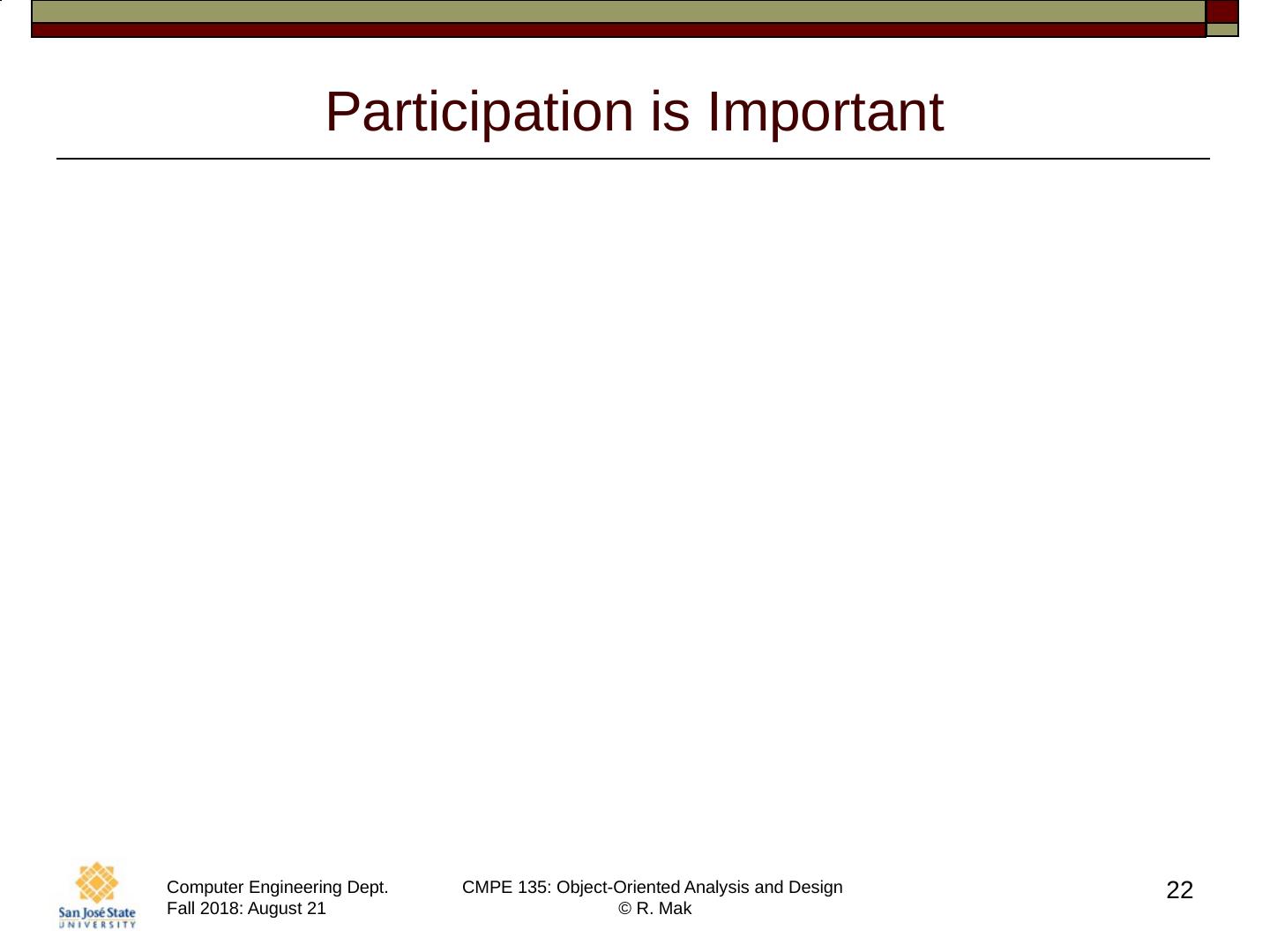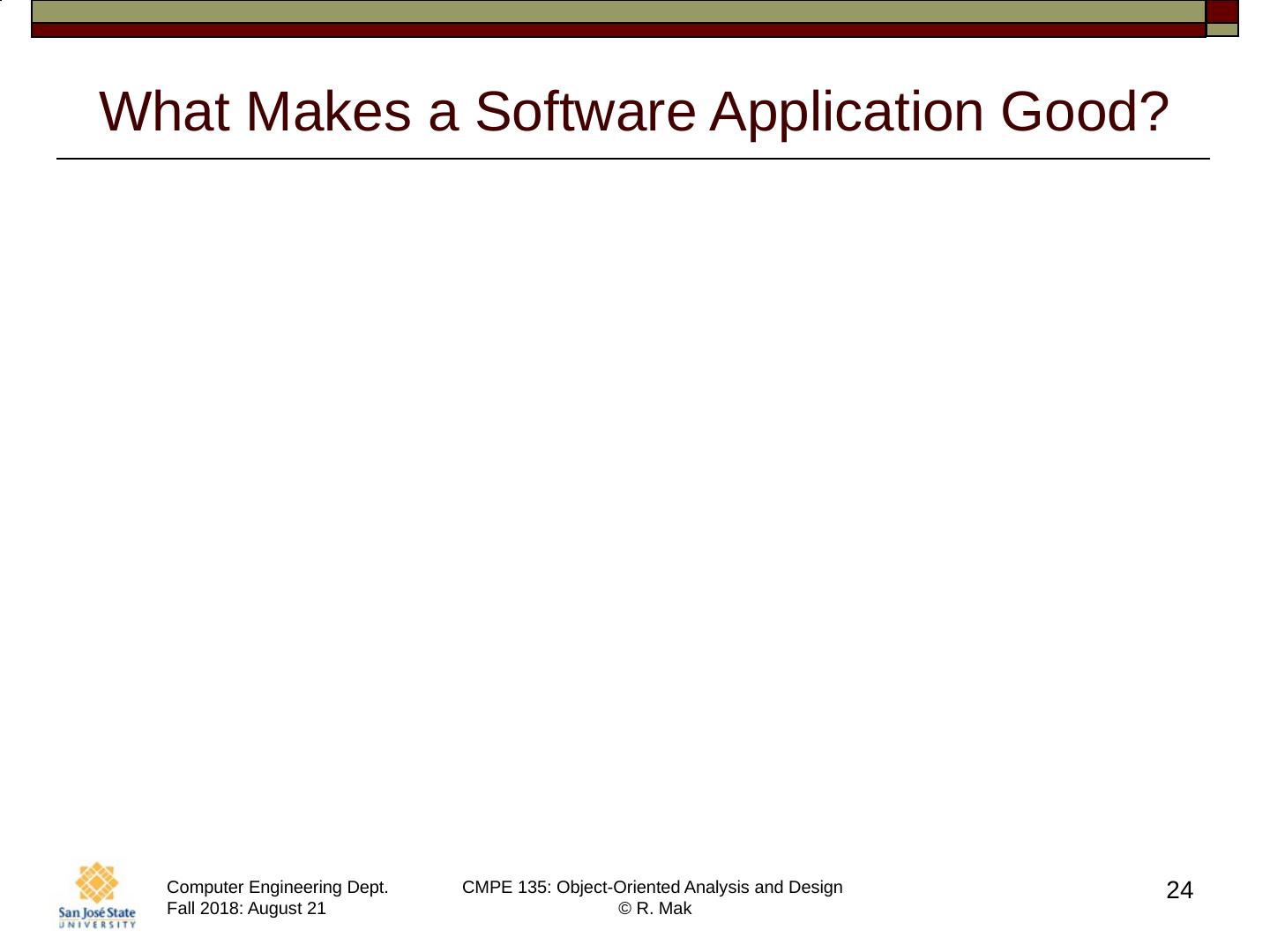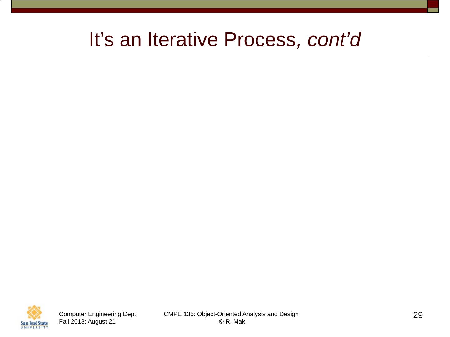 1 .CMPE 135 Object-Oriented Analysis and Design August 21 Class Meeting Department of Computer Engineering San Jose State University Fall 2018 Instructor: Ron Mak www.cs.sjsu.edu/~mak 1