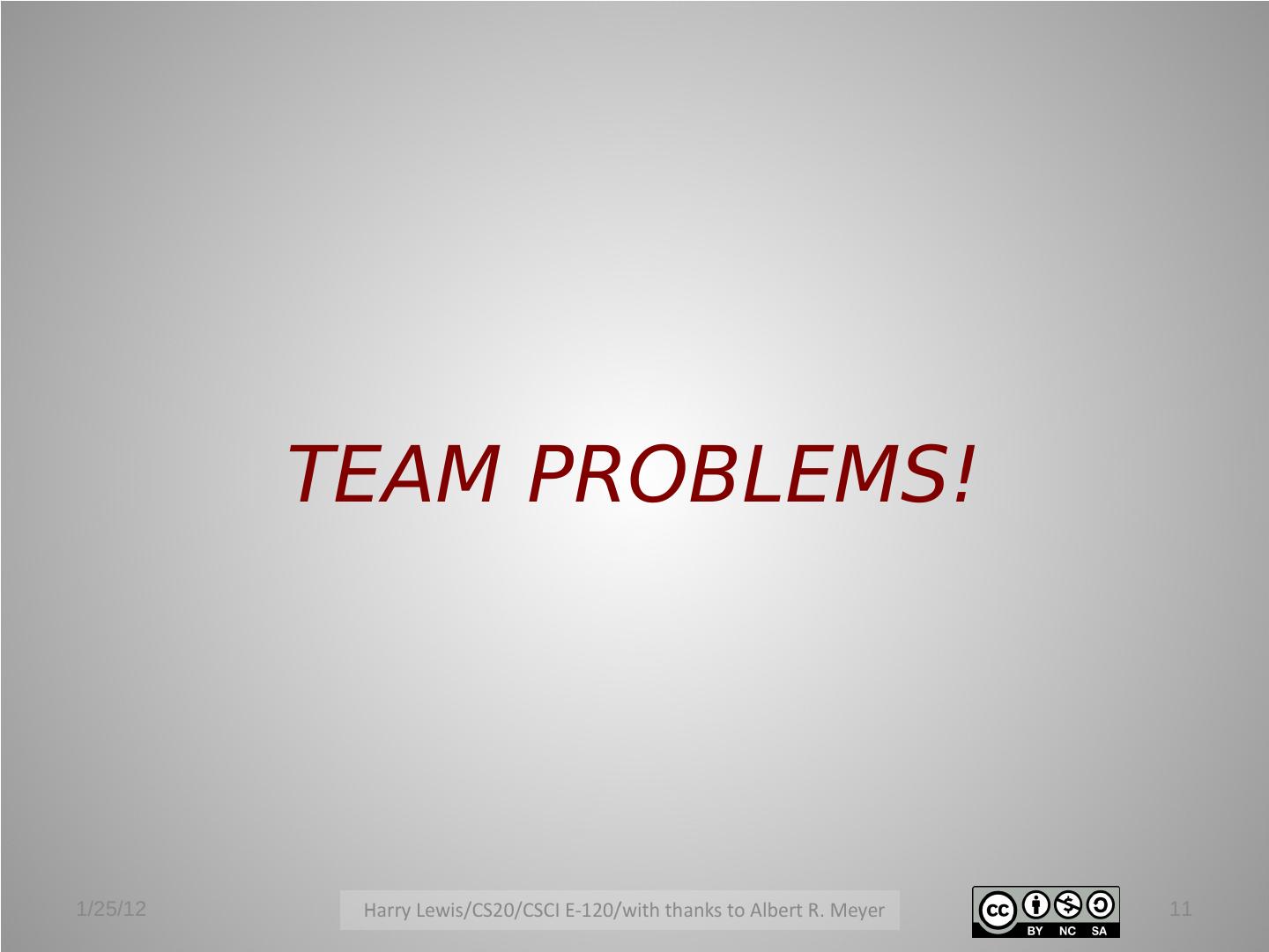 11 . TEAM PROBLEMS! 1/25/12 11
