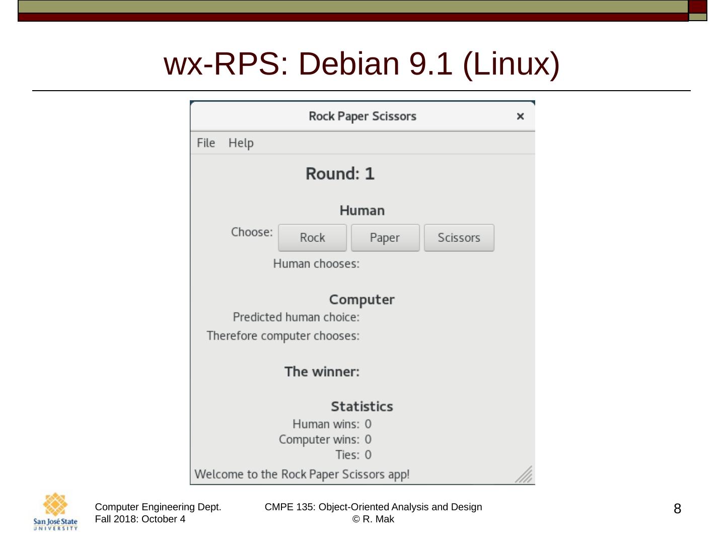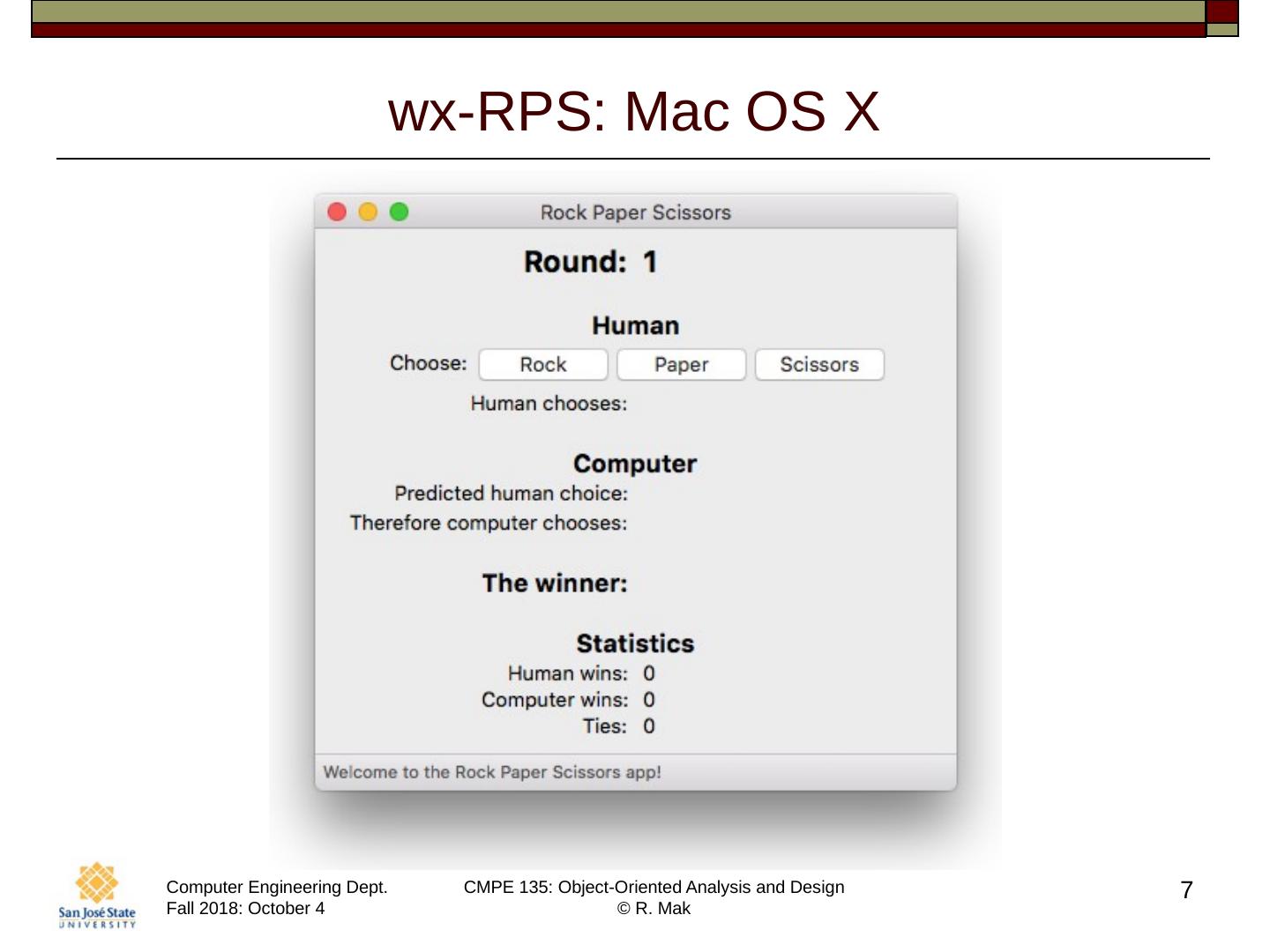 1 .CMPE 135: Object-Oriented Analysis and Design October 4 Class Meeting Department of Computer Engineering San Jose State University Fall 2018 Instructor: Ron Mak www.cs.sjsu.edu/~mak 1
